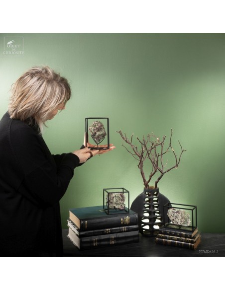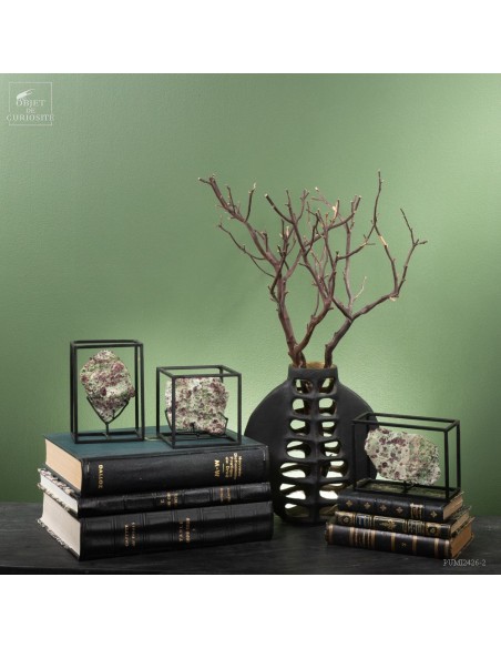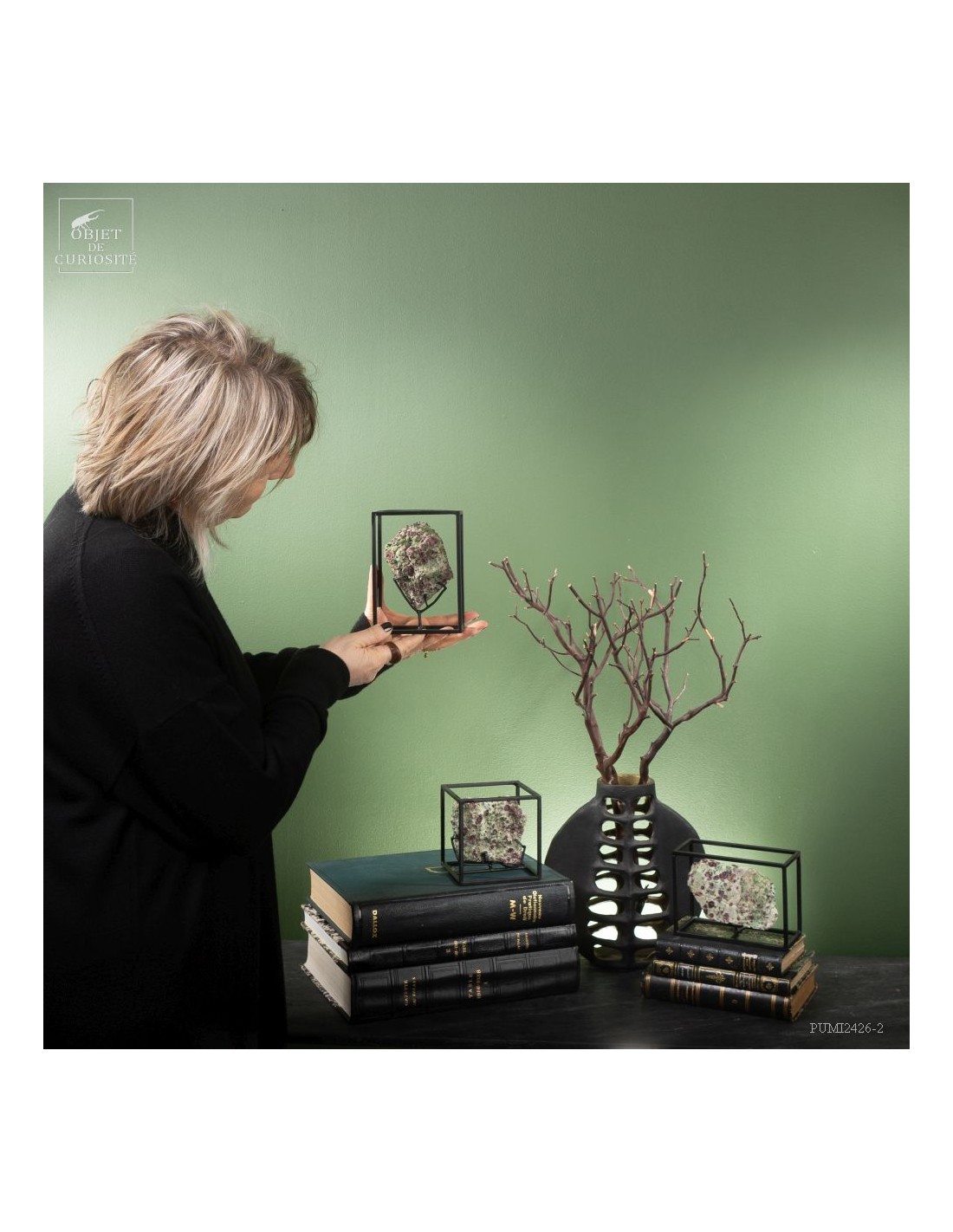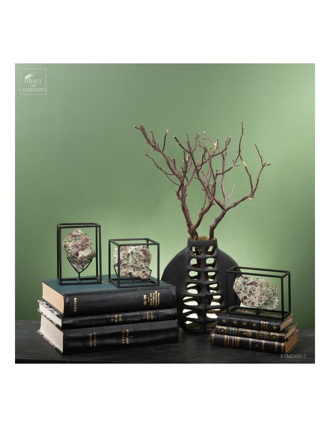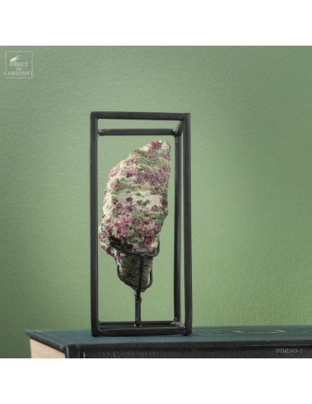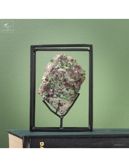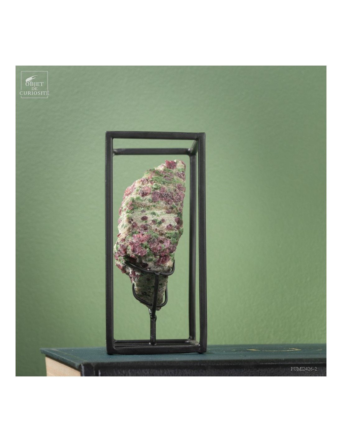 Lorsque ces deux minéraux se rencontrent, le grenat pyrope, rouge profond, contraste avec le diopside de chrome, vert intense. Cette combinaison crée une association de couleurs étonnant, faisant ainsi une pièce remarquable. Ce minéral s'est formée à 40Km de profondeur près du coeur de notre planète, et il est remonté à la surface pendant les poussées géologiques (orogénèse) du Dévonien, il y a 400 million d'années.