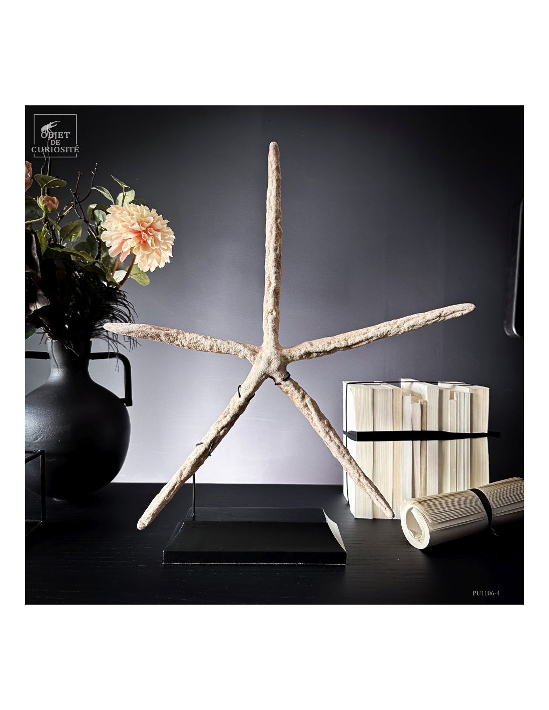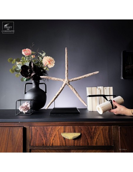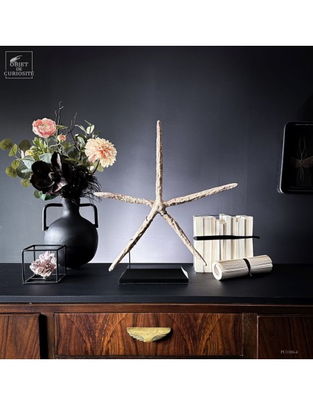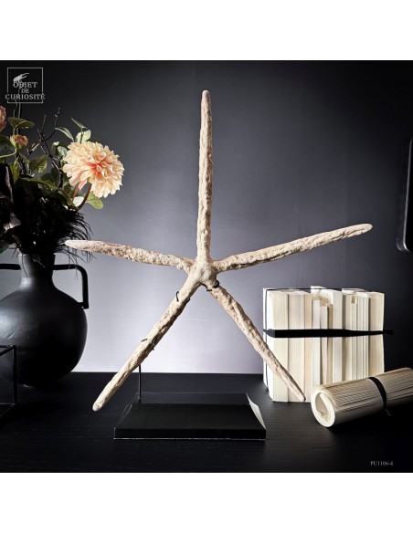 Cette étoile de mer à cinq bras appartient à l’espèce LINCKIA LAEVIGATA, une espèce tropicale que l’on croise dans les récifs coralliens de l’Indo-Pacifique. Sa teinte beige rosé, plus douce que le bleu intense que prend parfois l’espèce, souligne la texture granuleuse de ses bras presque cylindriques.