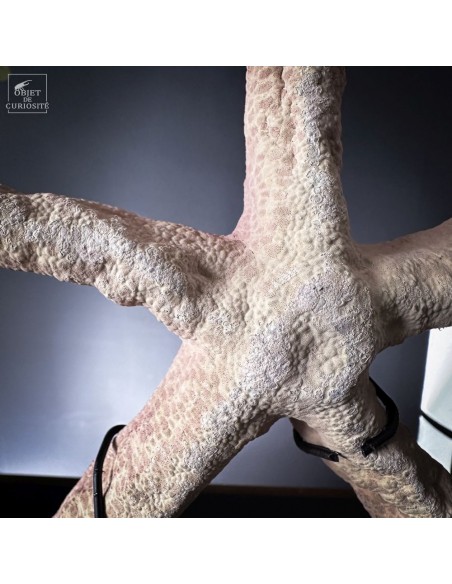 D’un diamètre de plus de 45 cm, ce spécimen impressionne par sa taille. Sur sa face dorsale, un petit disque légèrement décentré attire l’attention : il s’agit de la plaque madréporique, organe qui permet à l’étoile de filtrer l’eau de mer pour respirer et gérer sa pression interne.