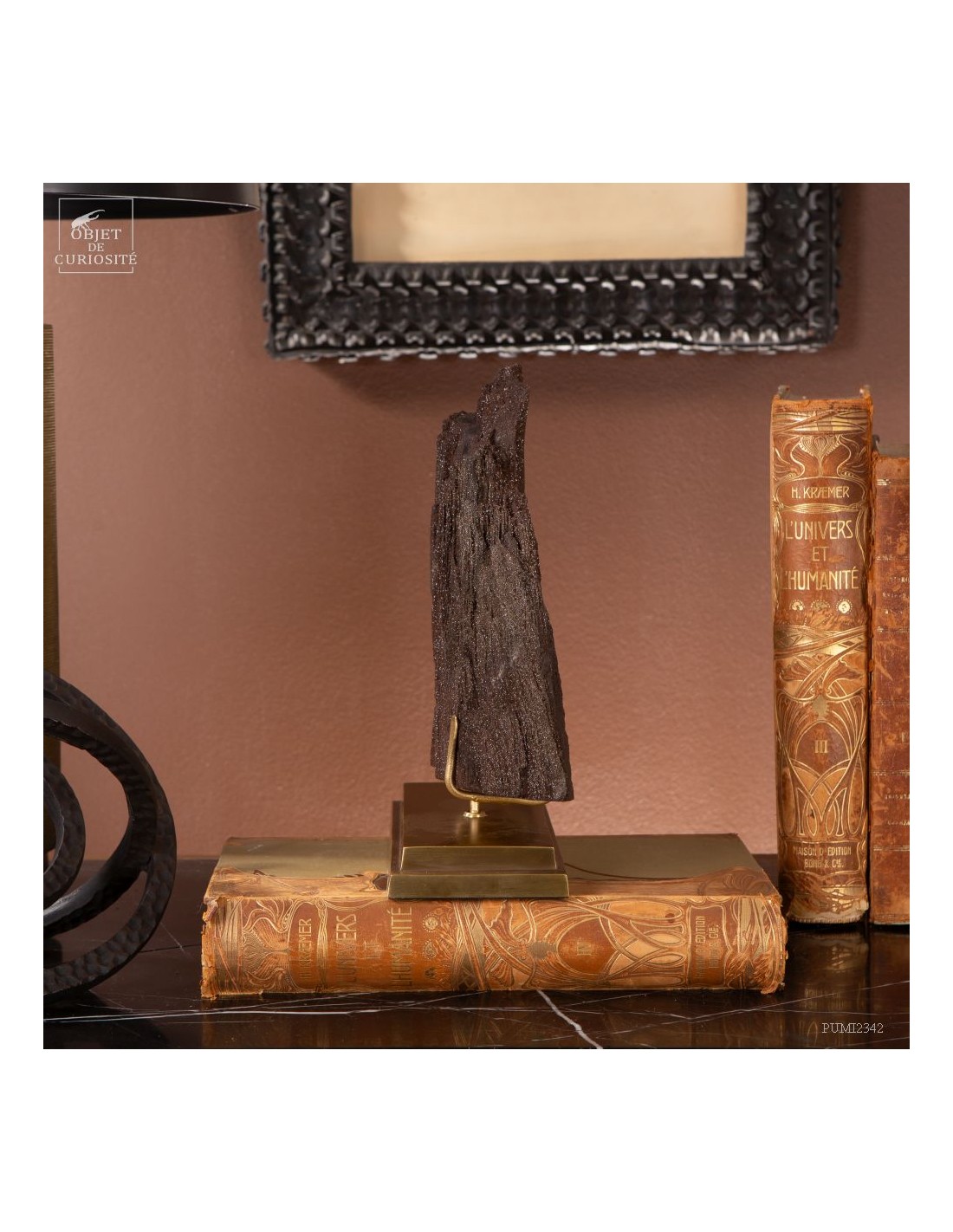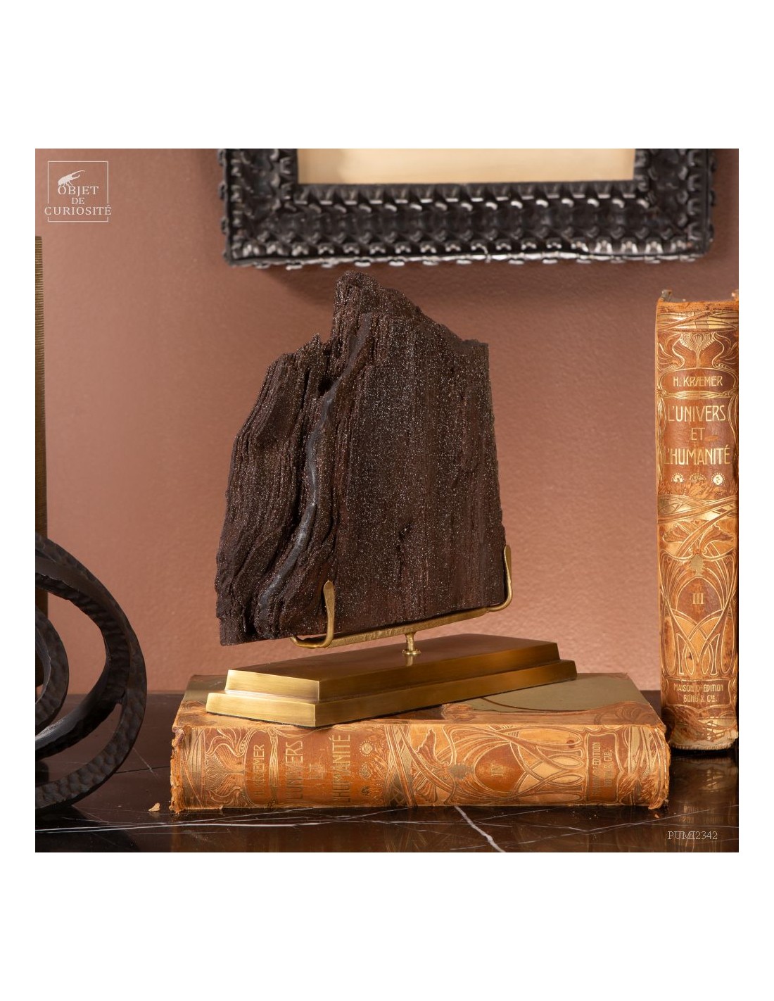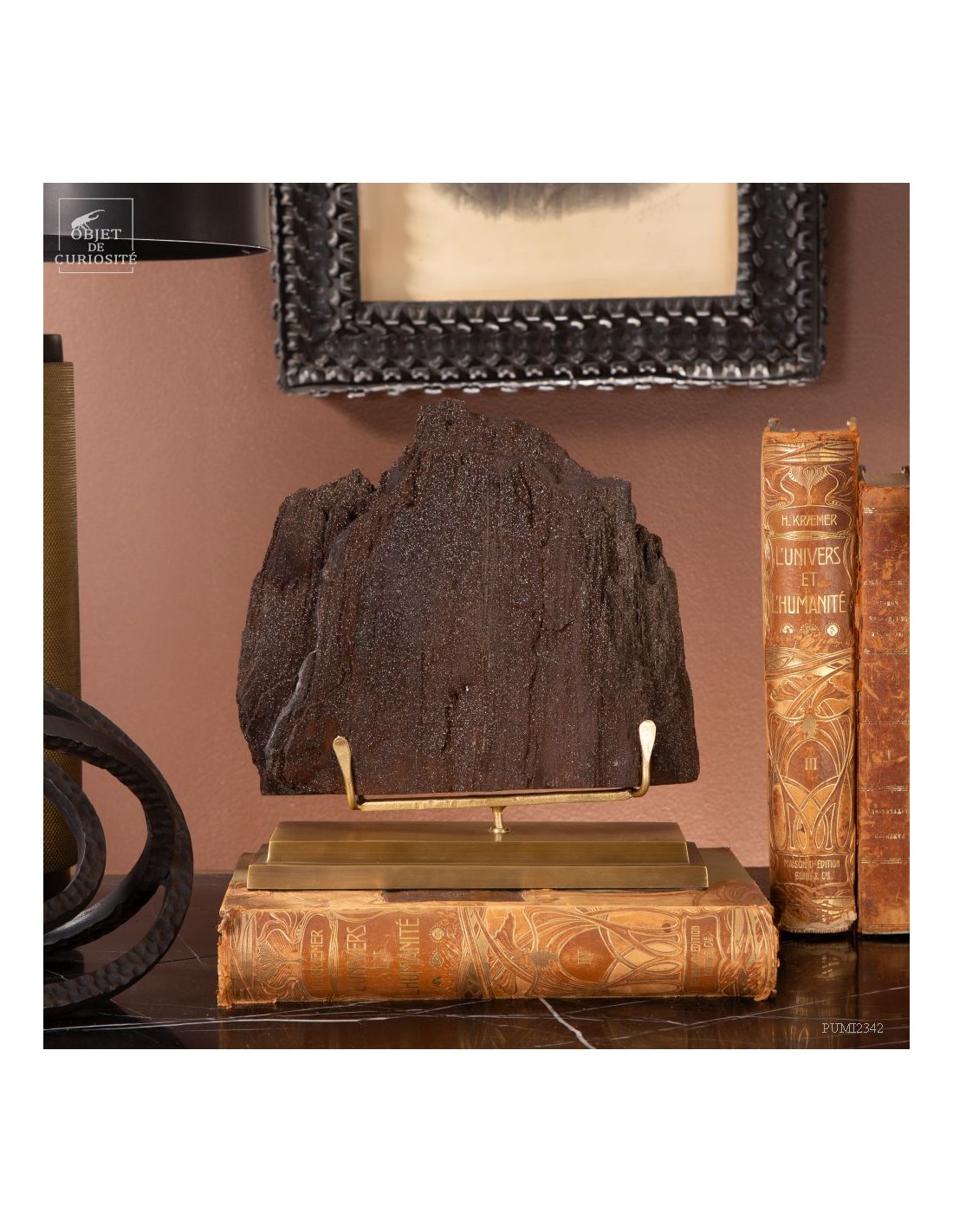 Tronc fossile cristallisé (3kg) sur laiton