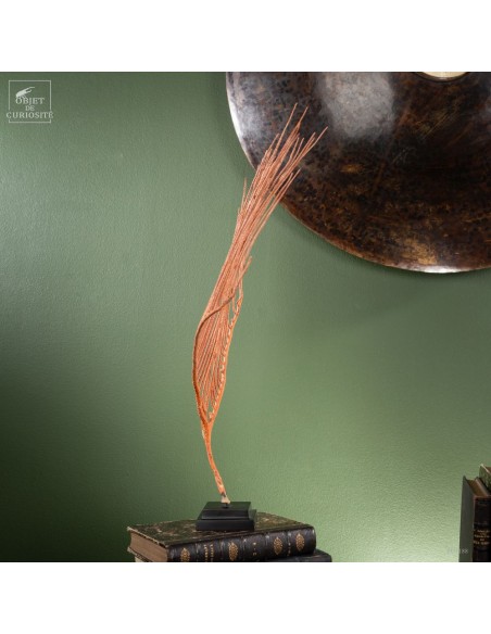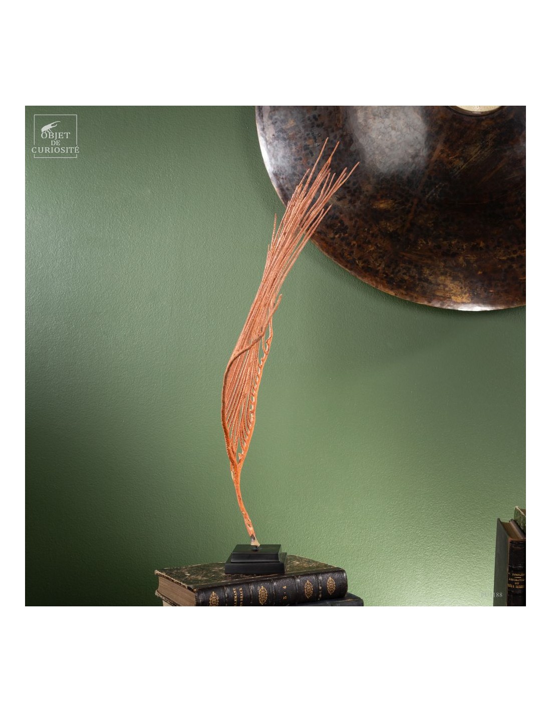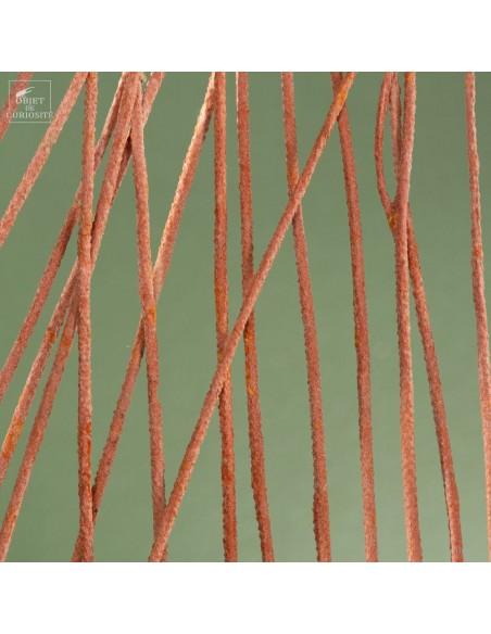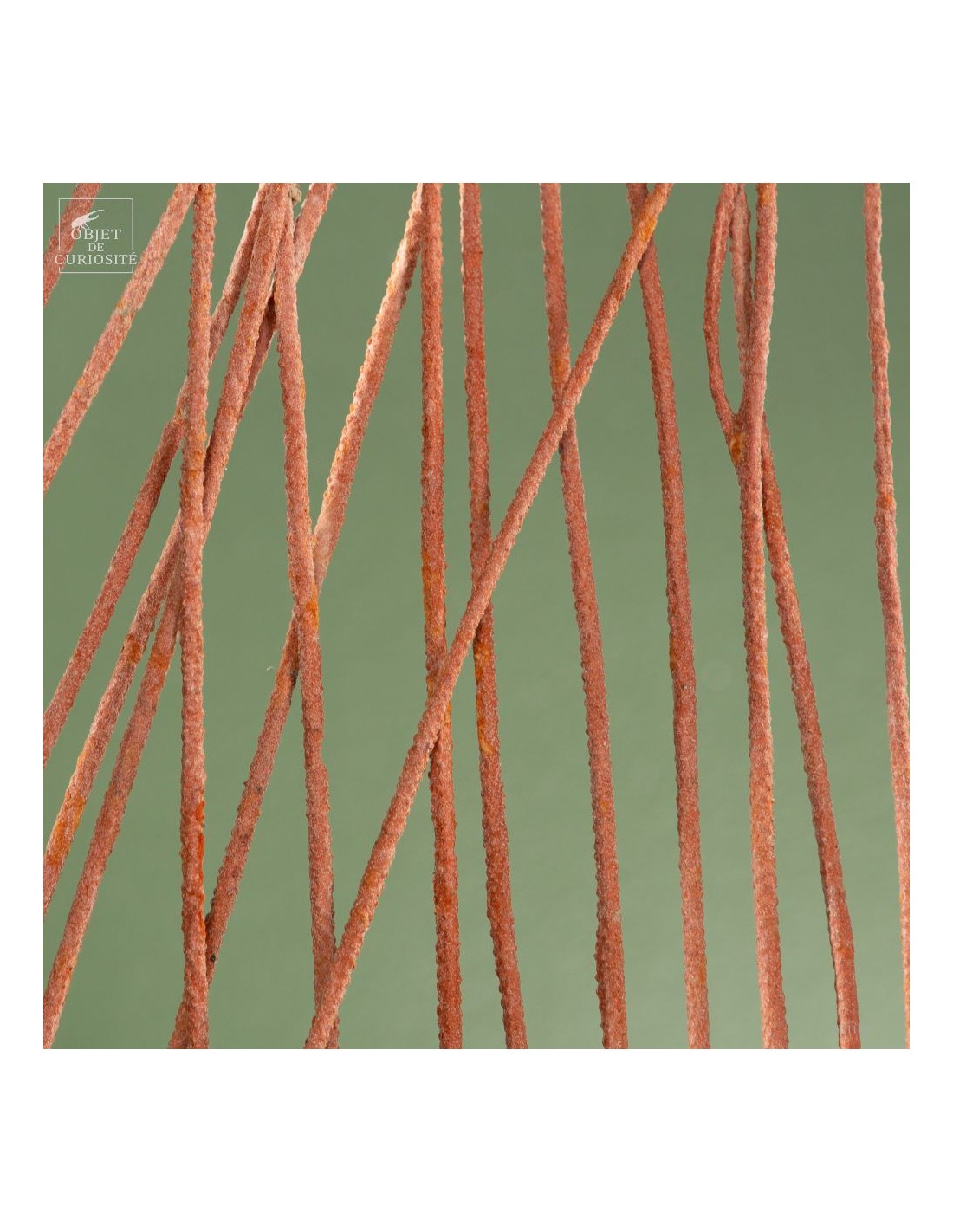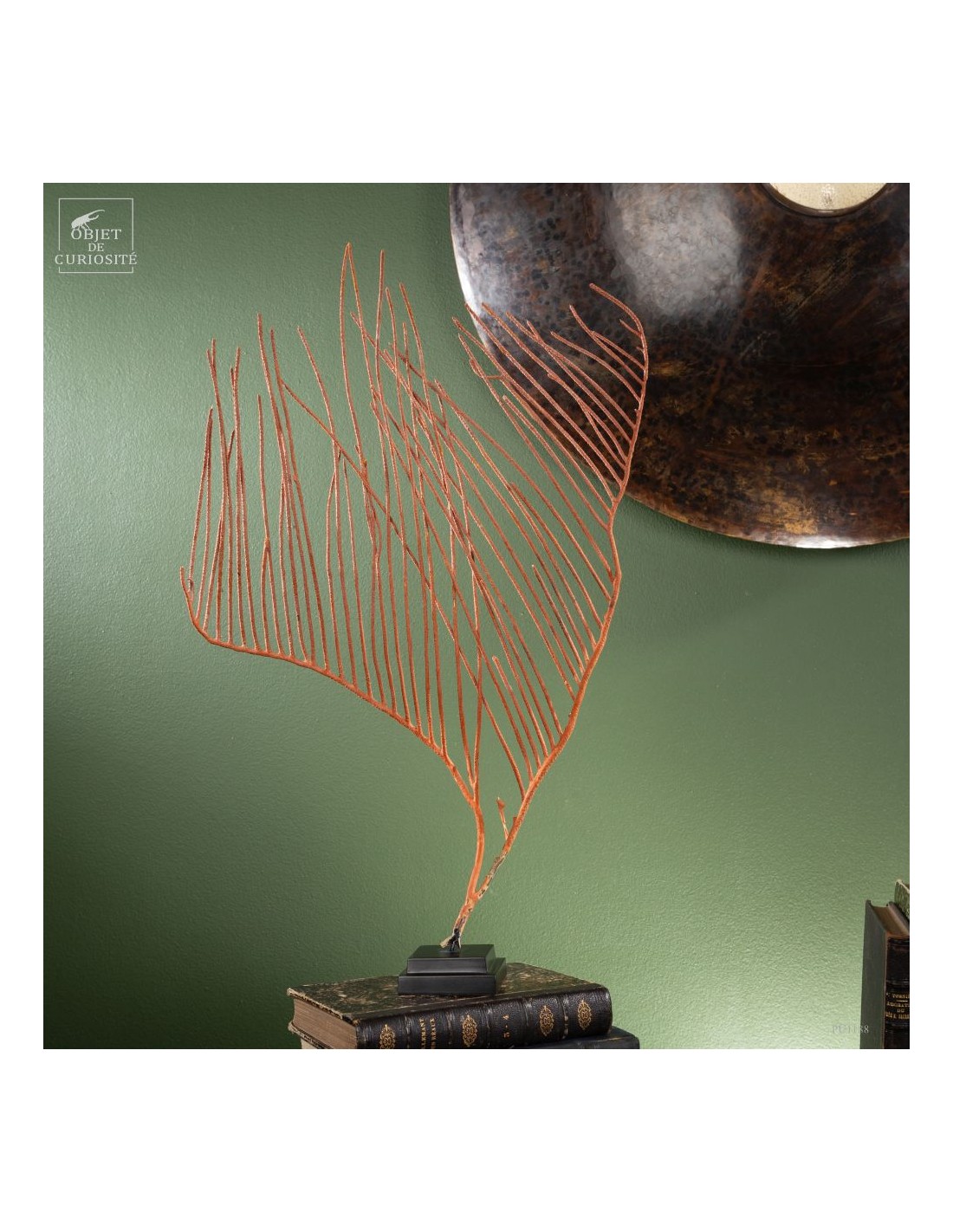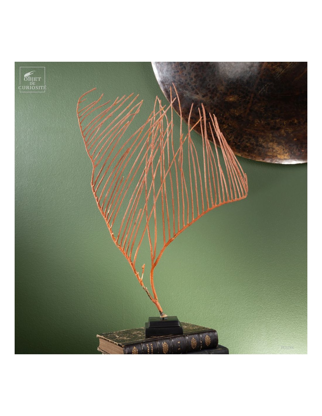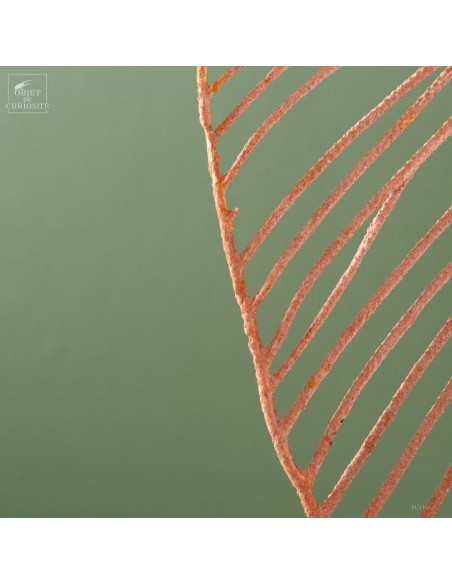Cette gorgone lyre orange (Ctenocella pectinata), originaire de l’Océan Indien, doit son nom à sa forme distinctive qui évoque une lyre. Les gorgones, comme les coraux, sont des colonies de polypes sessiles se nourrissant de plancton. Cette espèce se développe perpendiculairement aux courants marins pour maximiser la capture des nutriments. Son squelette de gorgonine, à la fois flexible et solide, lui permet de résister aux forts courants des profondeurs.