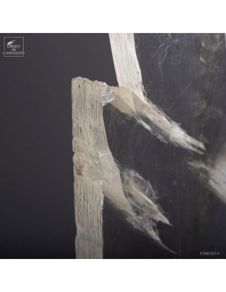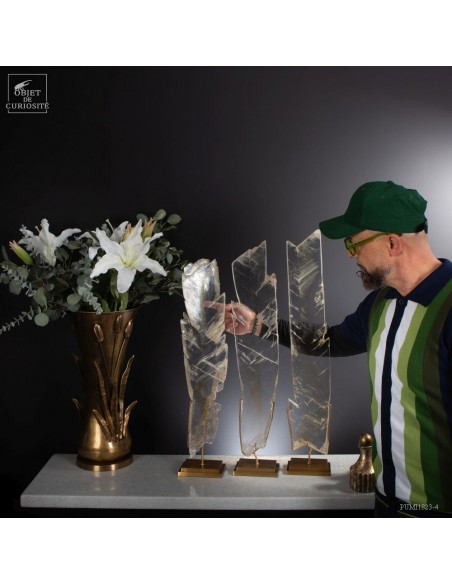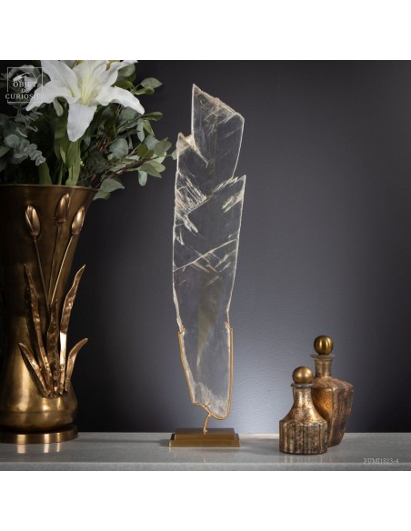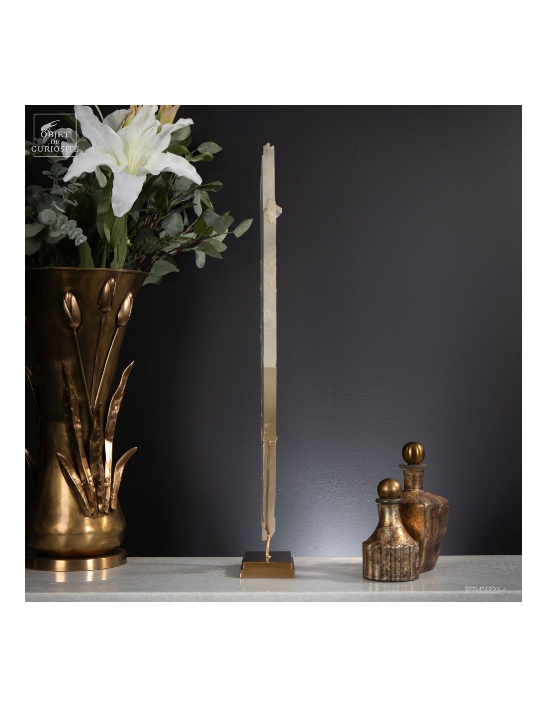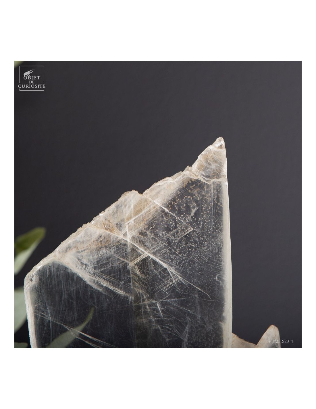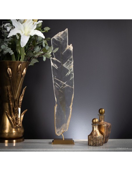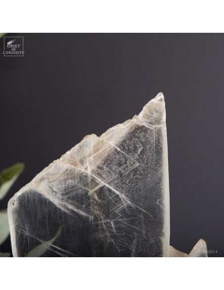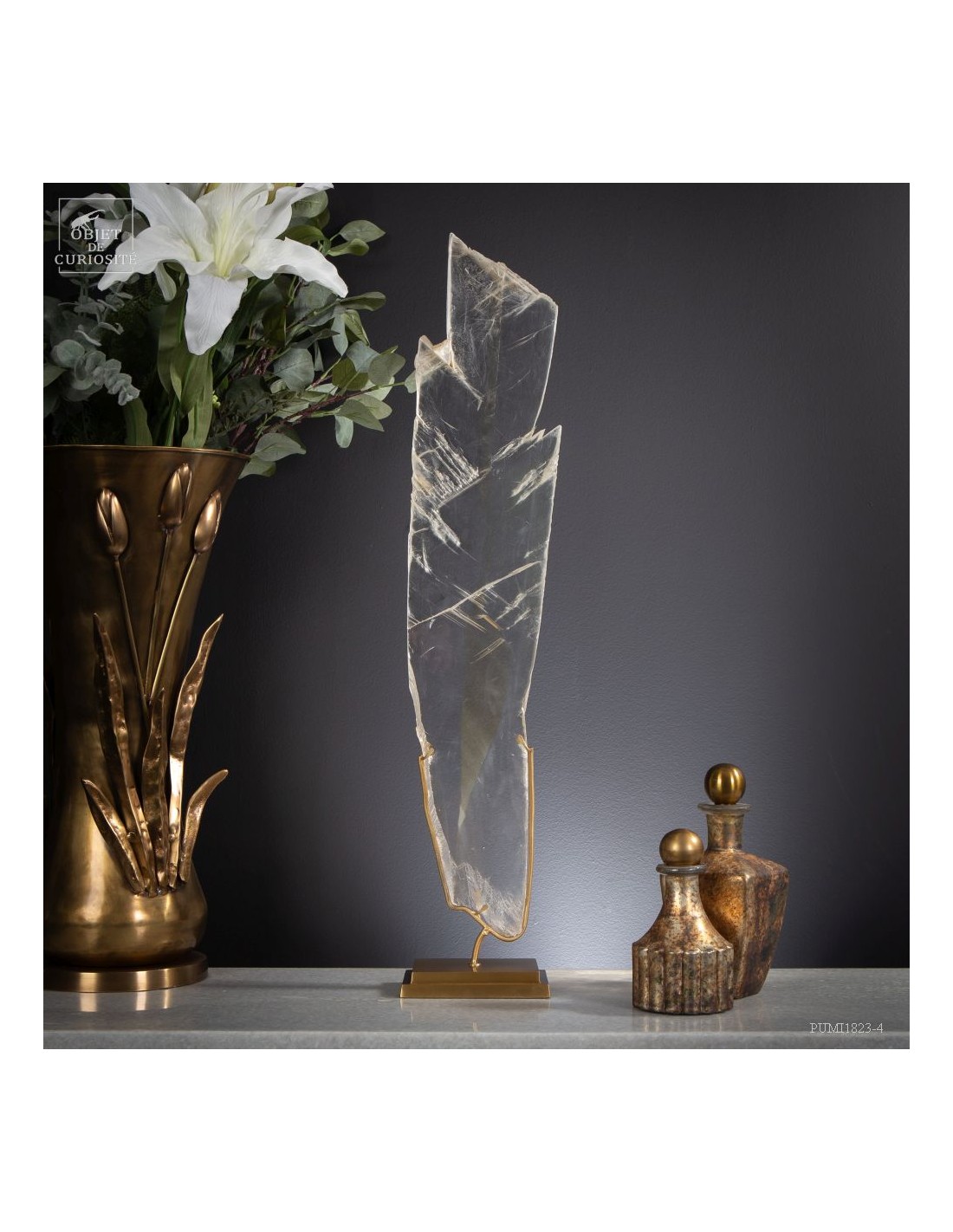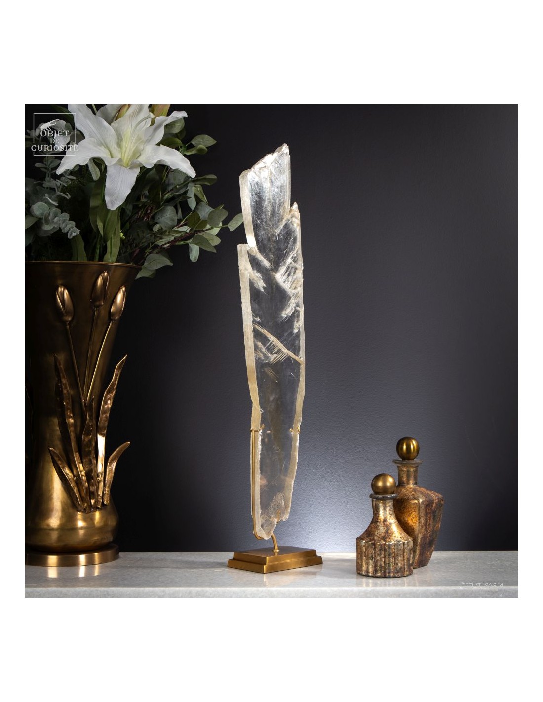 Ce cristal complet de Gypse est Français, et provient du village au nom évocateur de Caresse dans le sud Ouest. La très grande transparence de ce cristal ainsi que cette forme typique en queue de poisson, sont la signature des plus belles pièces trouvées dans cette mine. Sur base laiton.