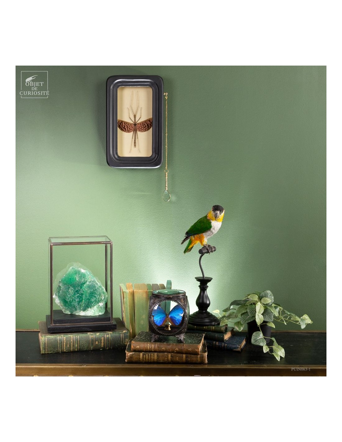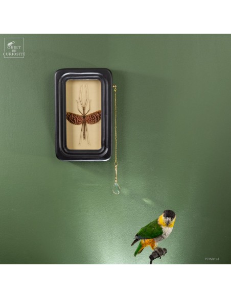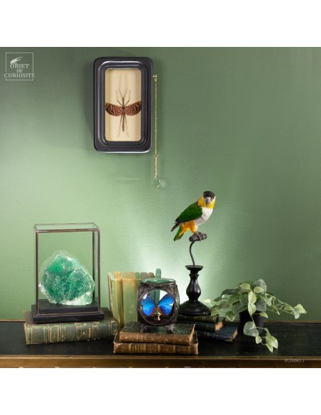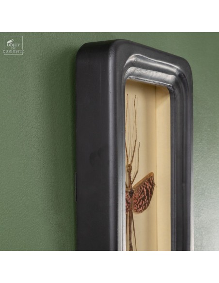 Une loupe est intégrée à ce cadre de collectionneur, permettant une observation détaillée des caractéristiques de cet insecte fascinant.