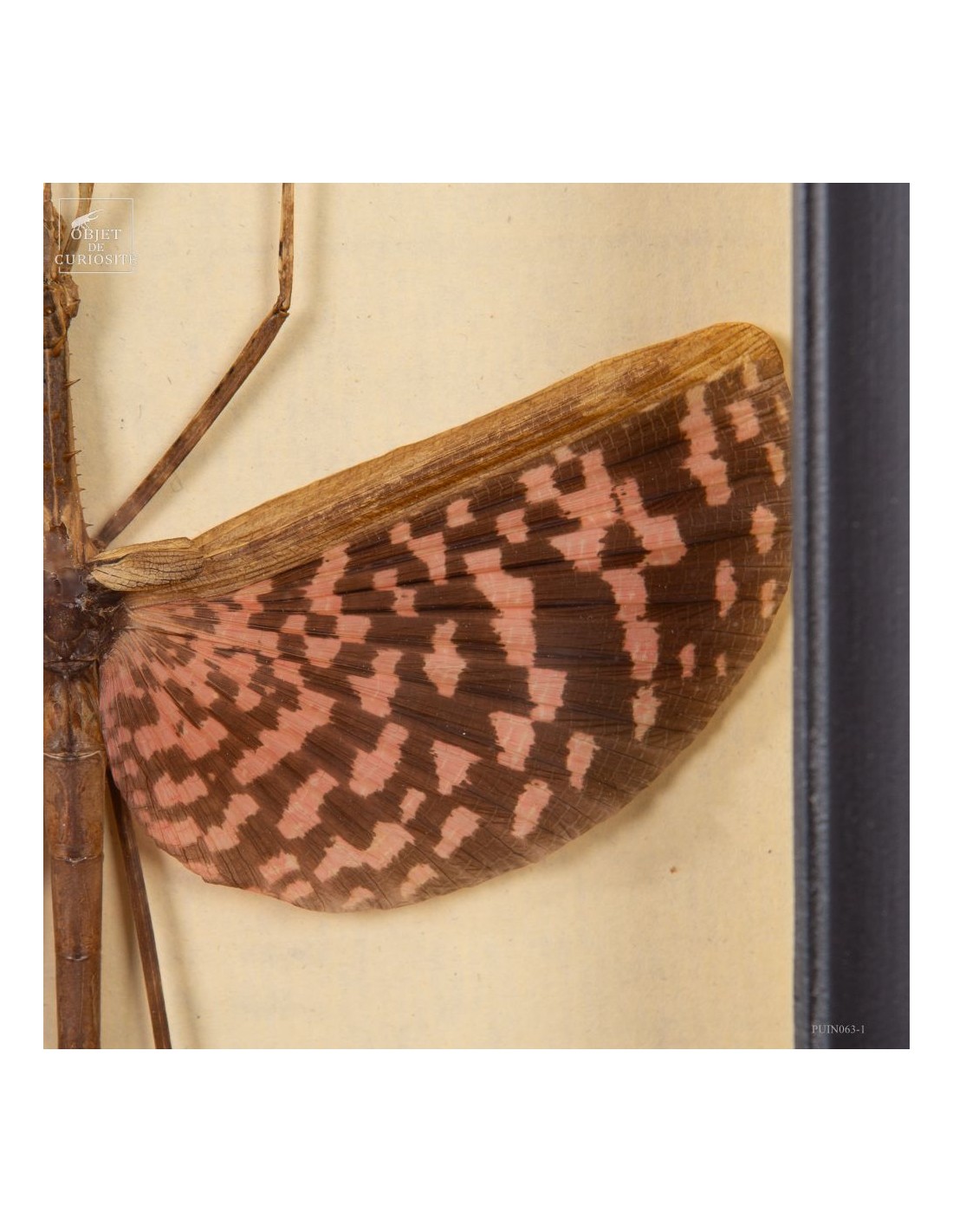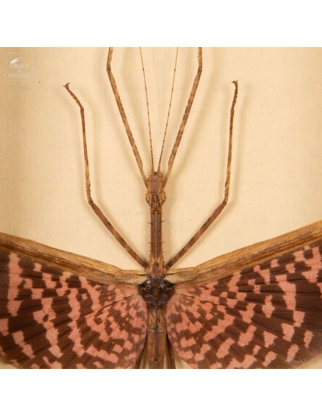Phasme tesselé - Diesbachia tamyris - femelle, ailes roses ouvertes