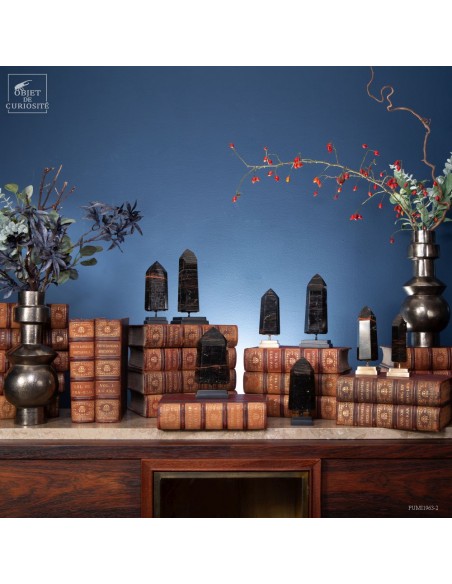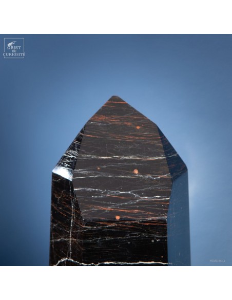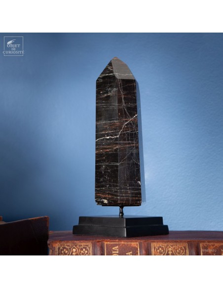 La Tourmaline noire Brésilienne est ici associée à des veines d'Hématite. Ces veines rouges dans le noir profond de la Tourmaline ont été la sensation du monde minéralogique en 2021. Ces cristaux sont polis à partir des pierres sorties des mines de Corinto au centre ouest du Brésil. Et en lithothérapie (les soins par les minéraux) La tourmaline est souvent recherchée pour ses vertus de protection et de bouclier contre les mauvaises ondes, et associée à l'hématite qui est une pierre d'enracinement et de circulation d'énergie... Ils ont été surnommés "ultimate generators", et ils ont très vite disparus des stocks des grossistes Brésiliens... en tout cas, ils ont un pouvoir esthétique indiscutable!