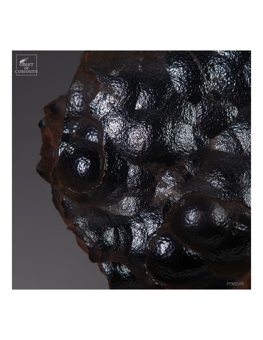L'action de l'eau et des sédiments peut arrondir les bords et lisser la surface des pierres, créant ainsi des spécimens d'hématite d'une forme particulièrement régulière et arrondie, comme celle-ci.