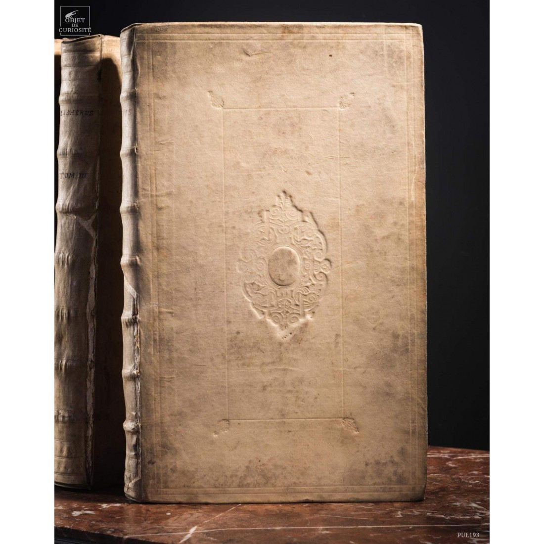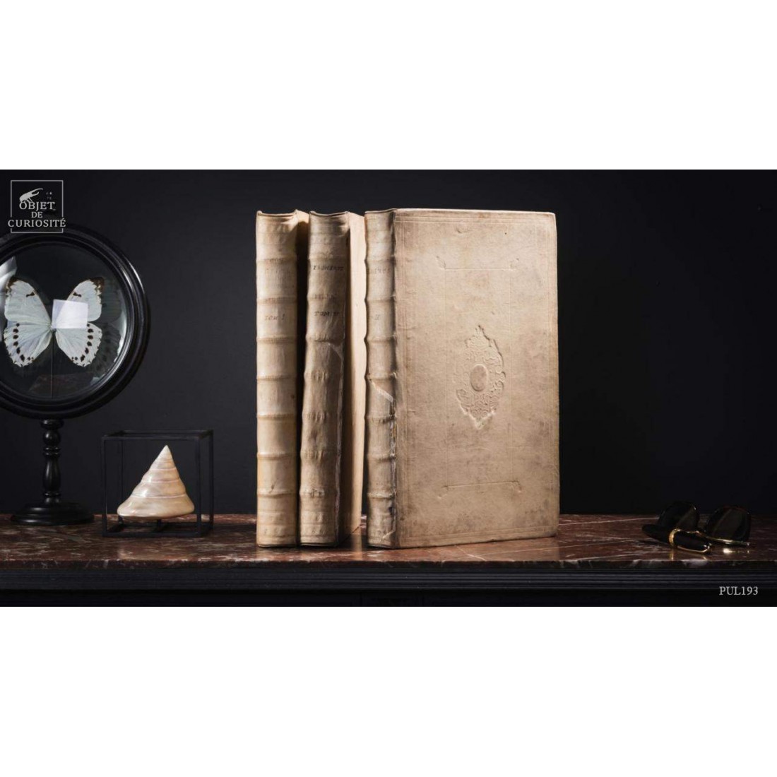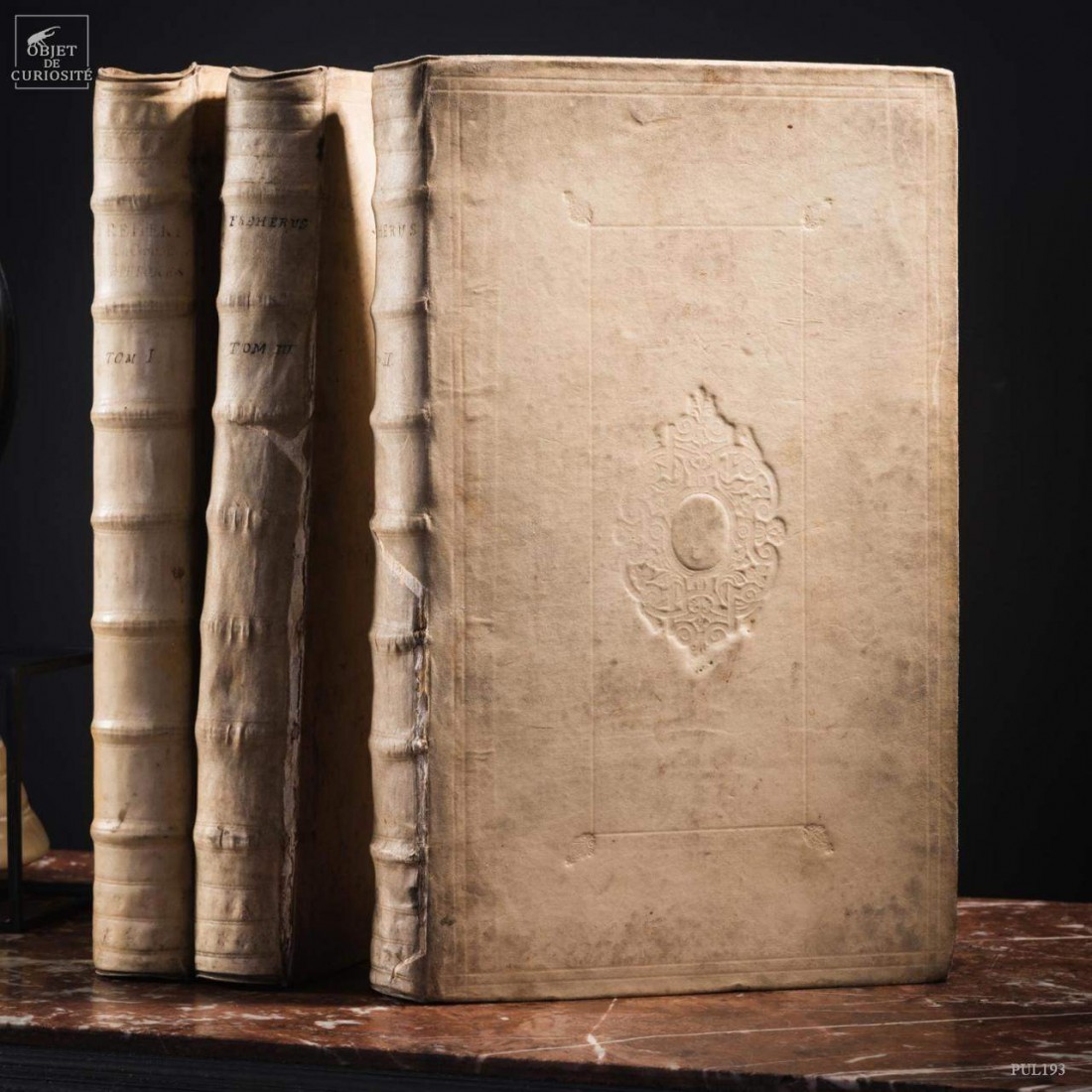 Ces 3 volumes imprimés en 1717 à Strasboug sont la deuxième édition de cette histoire de l'Empire Teutonique. Marquard Freher (1565-1614) avait publié la première version en 1600. L'auteur est un juriste Allemand, mais qui exerça aussi en tant que journaliste, historien et diplomate. Ces ouvrages sont recouverts de vélin: une peau de veau très fine -traditionnellement de veau mort-né-. Le volume deux présente quelques fentes de retrait dans le vélin du dos. Les ouvrages sont en latin.
