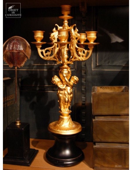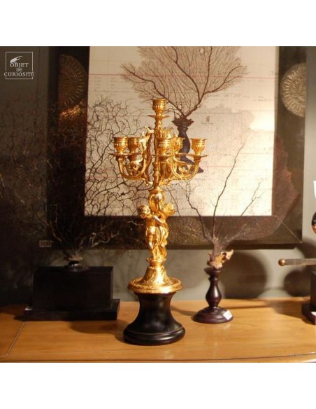 Classique, Baroque, Riche... mais très élégant avec le mélange de la base en bois noir. Une pièce ultra classique qui peut faire briller un grand nombre de décors. Ce candélabre aux angelots est en laiton massif, plaqué d'or mat. Une fabrication Italienne pour ODC. 1 seule paire disponible