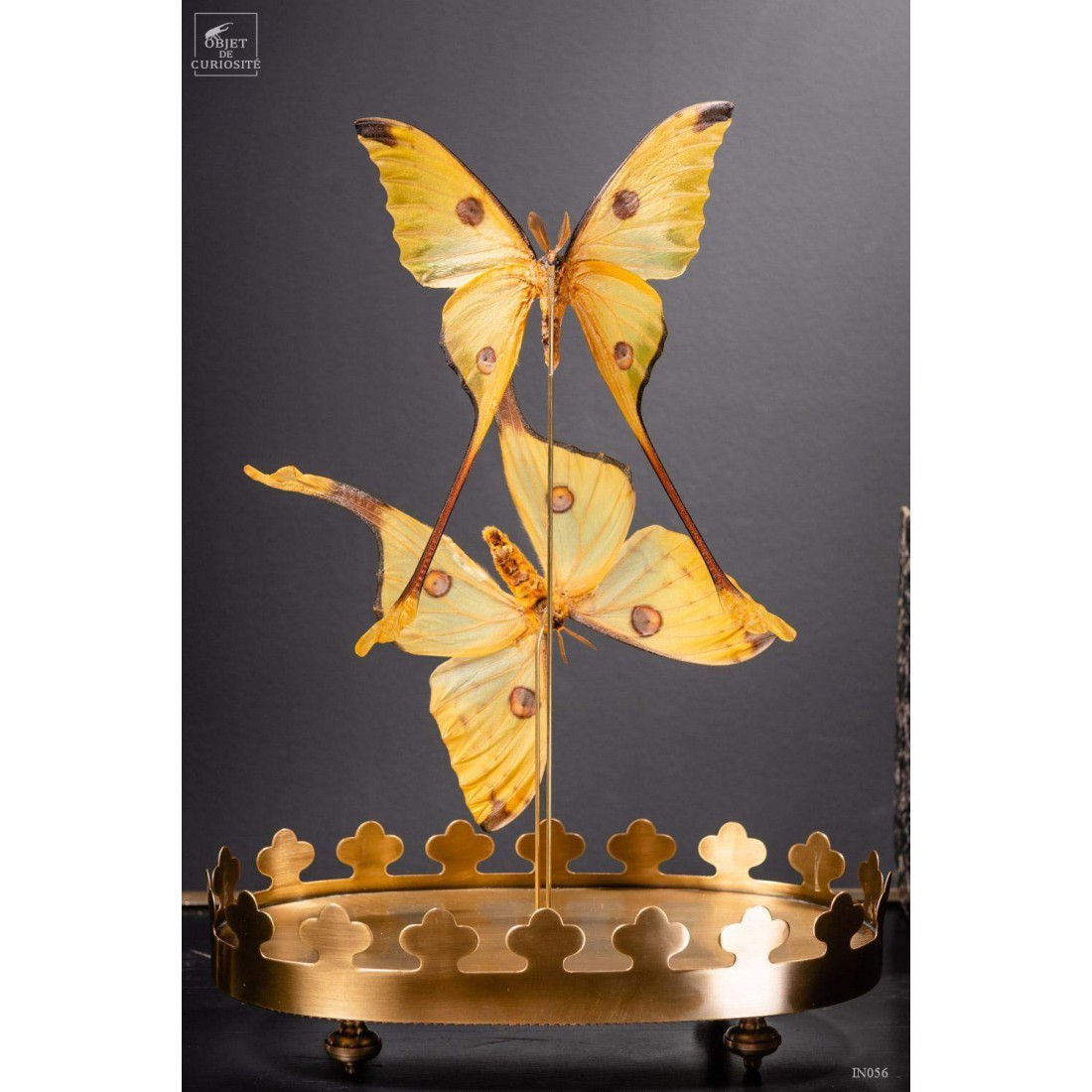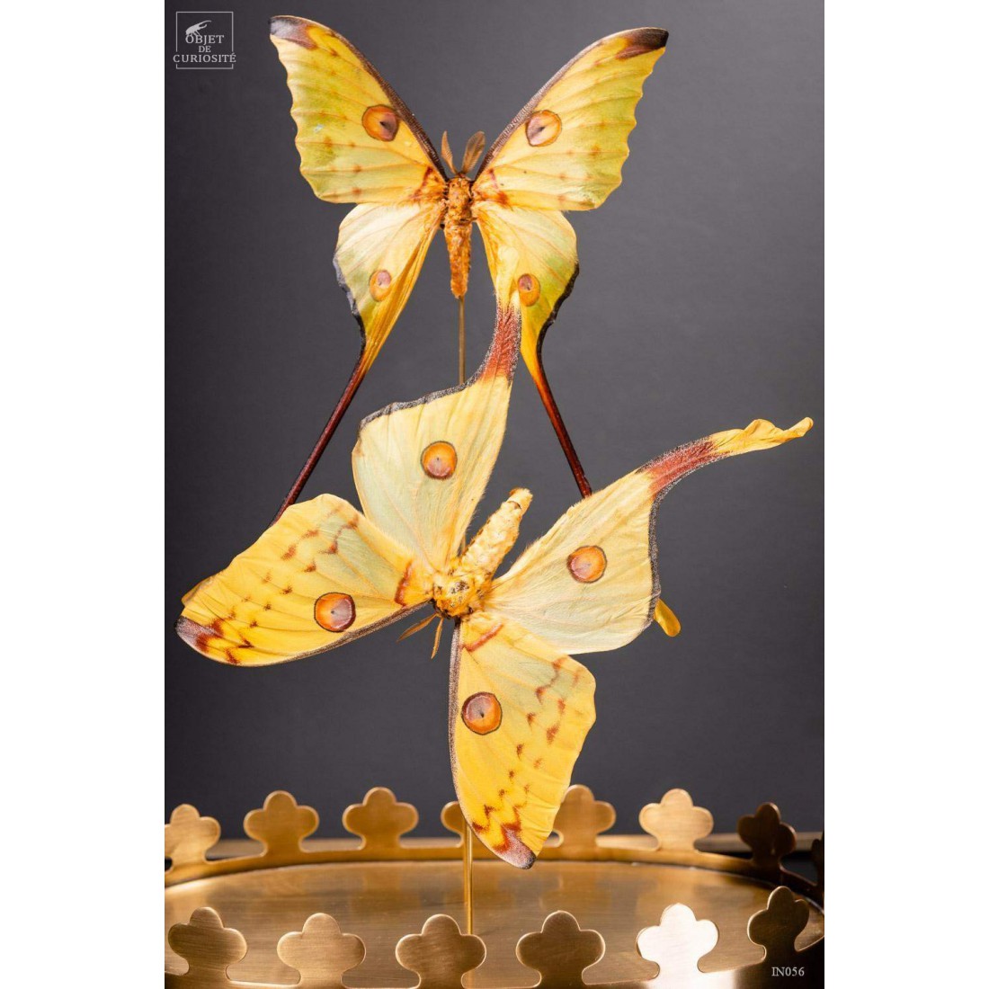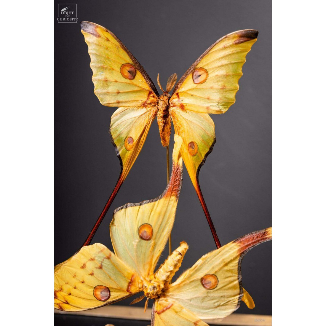 Ensemble pour toujours! Le papillon comète de Madagascar (Argema mittrei) est un papillon de nuit originaire des forêts humides de Madagascar. Le mâle possède une queue d'environ 20 cm de long à l'arrière de chaque aile, ce qui en fait le papillon avec la plus longue queue au monde! Le mâle est à l'arrière et la femelle au premier plan.