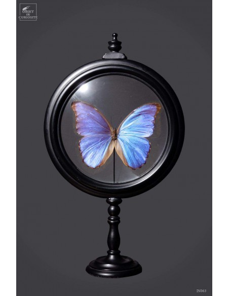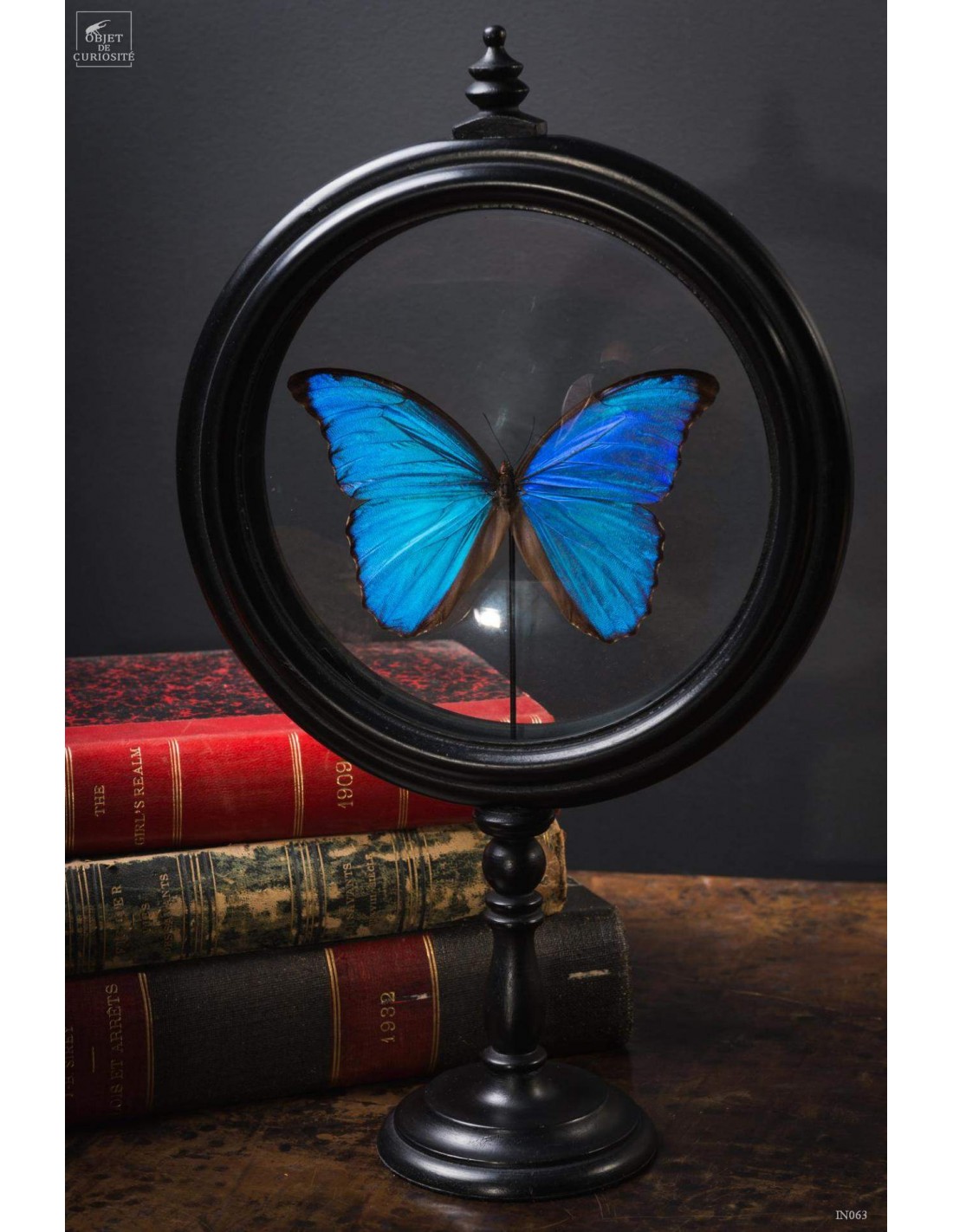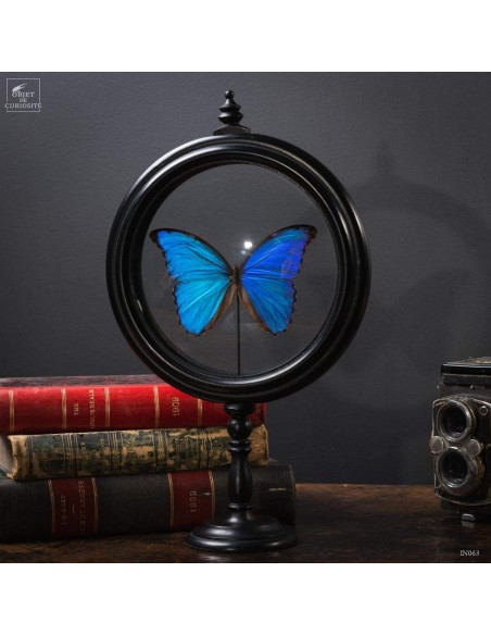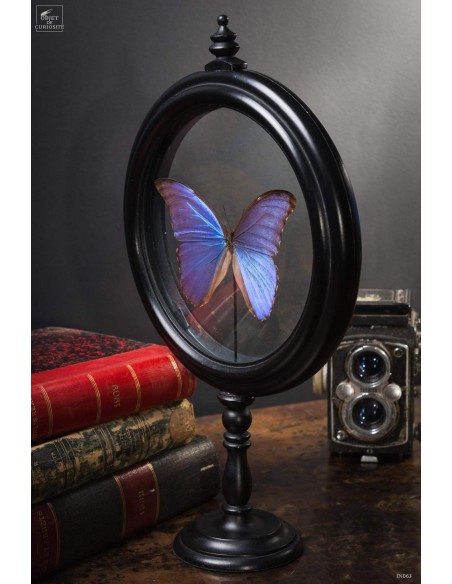 Papillon bleu électrique Morpho Didius d' Amérique du Sud dans un reliquaire en verre bombé GM.