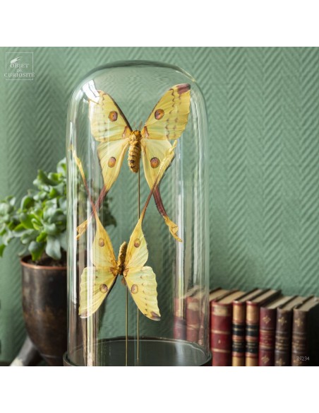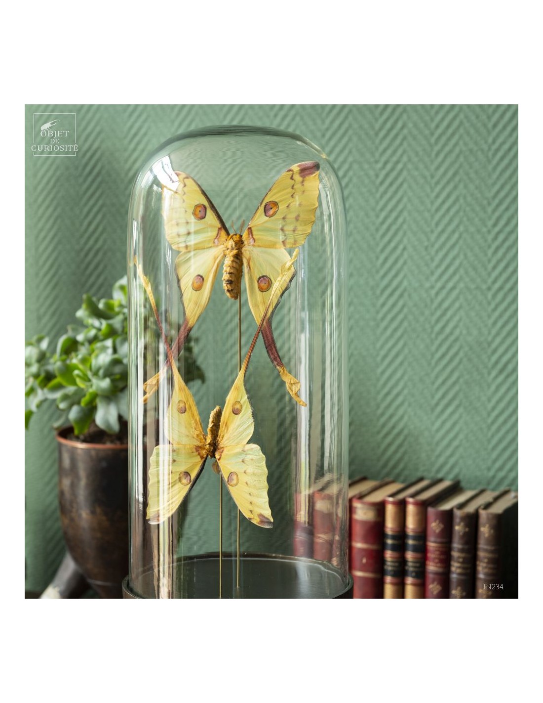 Ensemble pour toujours! Le papillon comète de Madagascar (Argema mittrei) est un papillon de nuit originaire des forêts humides de Madagascar. Le mâle possède une queue d'environ 20 cm de long à l'arrière de chaque aile, ce qui en fait le papillon avec la plus longue queue au monde! Le mâle est à l'arrière et la femelle au premier plan.
