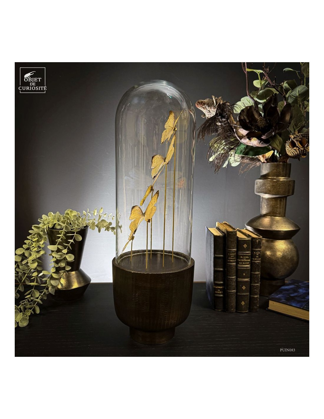 L’ensemble est présenté dans un globe gélule au design exclusif Objet de Curiosité, dont le socle en métal brossé évoquent les instruments scientifiques anciens. Une mise en scène sobre et élégante, dans l’esprit des curiosités contemporaines.