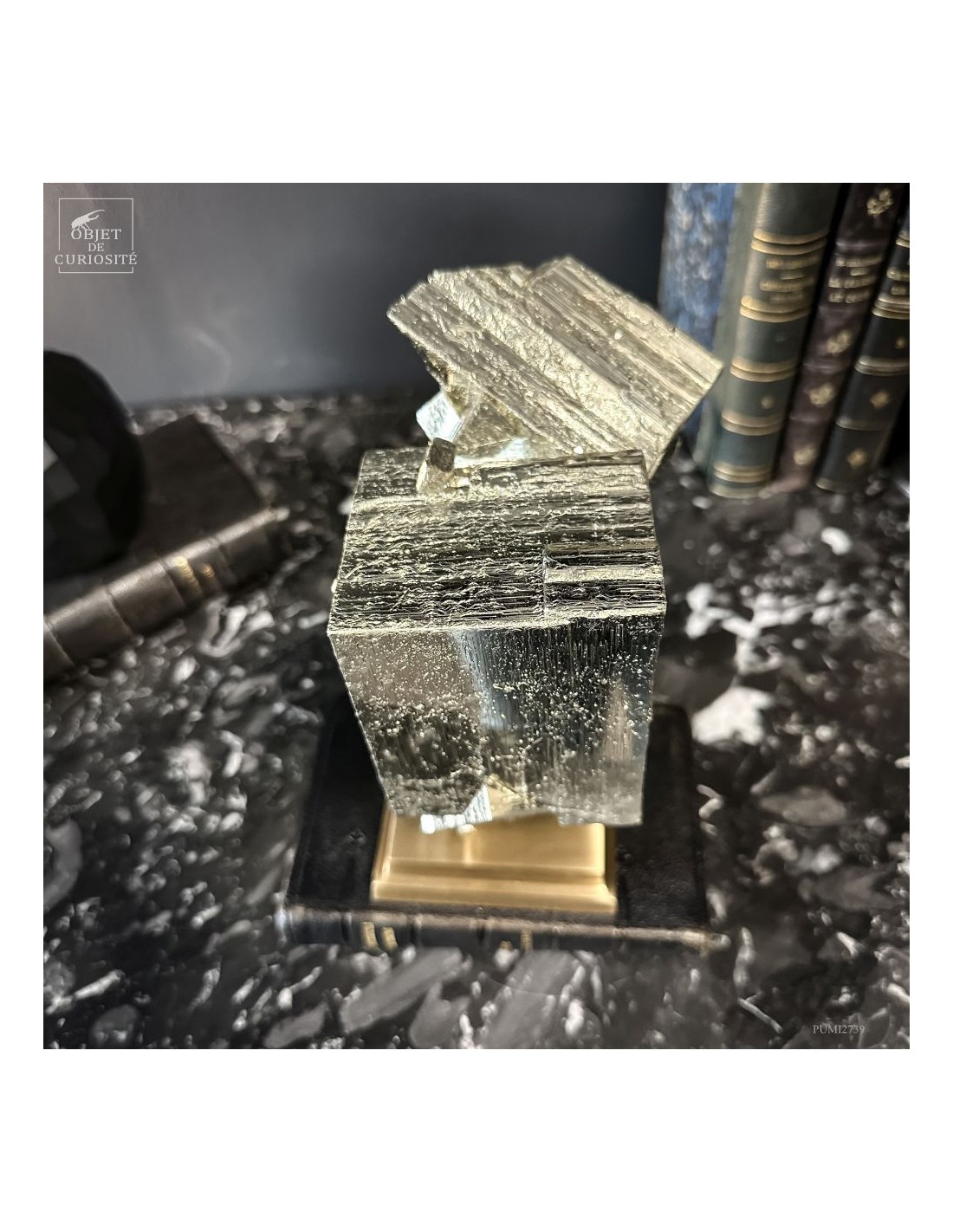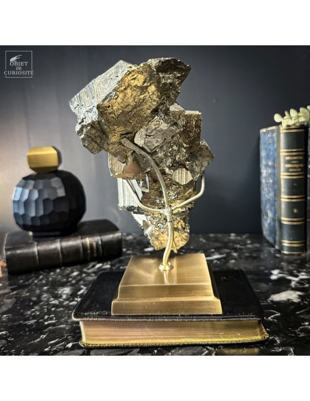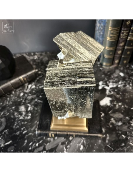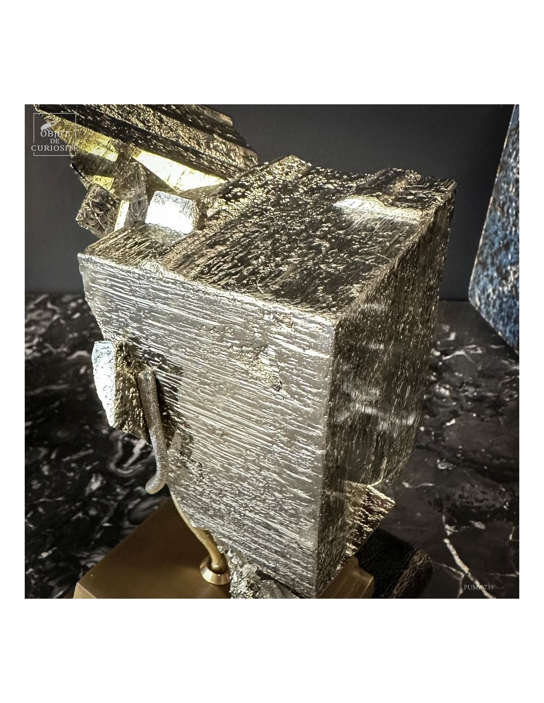 Issue des gisements hydrothermaux de Huanzala, cette variété de pyrite combine rigueur géométrique et éclat doré.