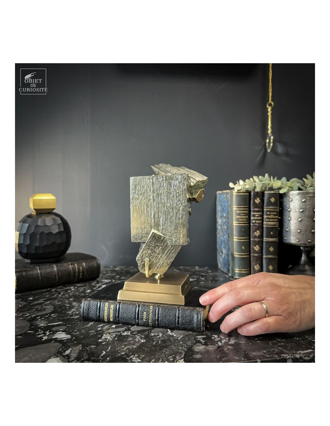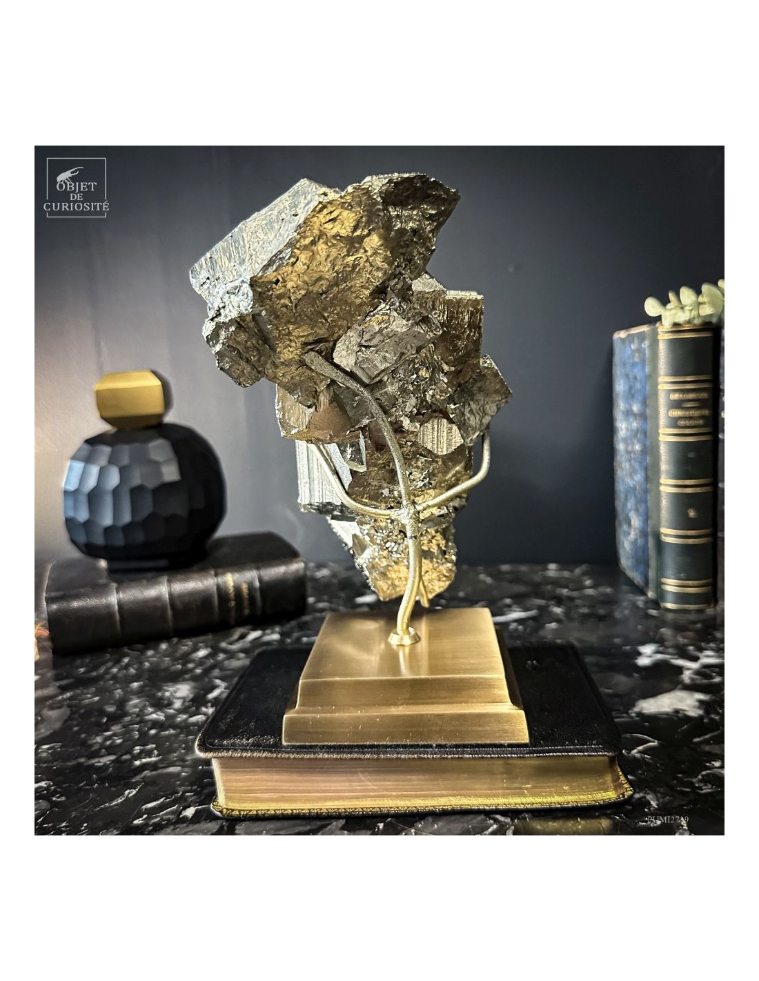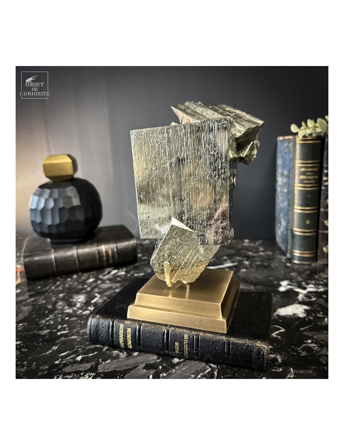 Issue des gisements hydrothermaux de Huanzala, cette variété de pyrite combine rigueur géométrique et éclat doré.