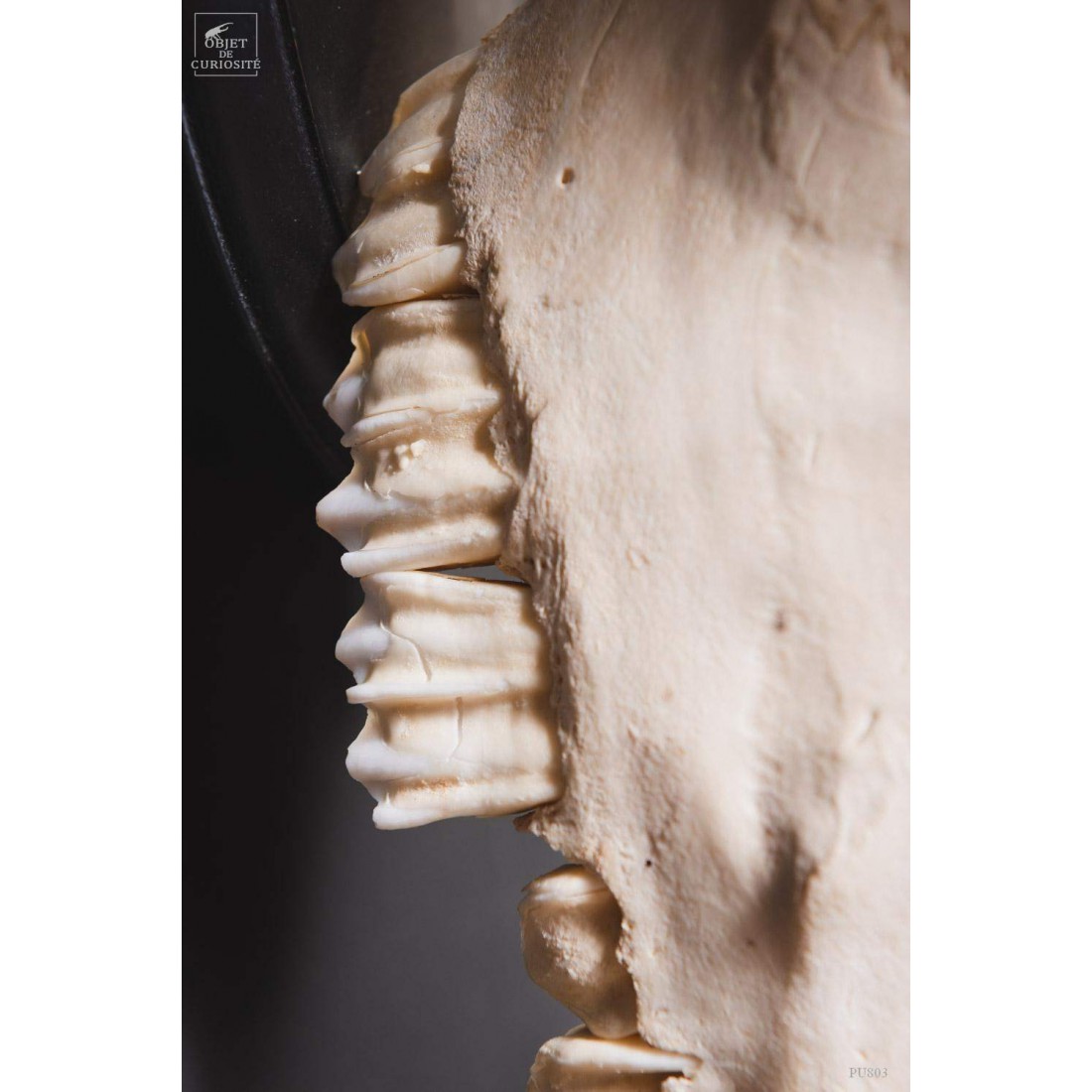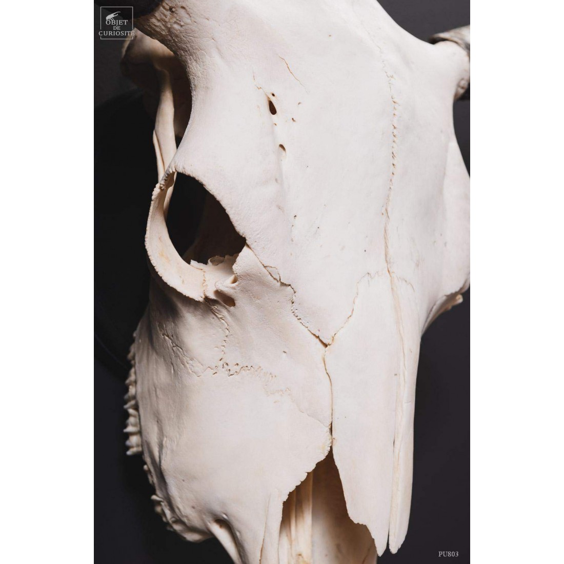 En voyant son crâne, on reconnaît l'animal au front large qu'il a été. Une très grosse tête avec des cornes plus petites. Ce bison d'Europe vient de Pologne. Pays qui compte 1/3 des bisons en liberté dans le monde. Même si l'homme a bien failli exterminer cette espèce puisqu'il n'en restait qu'une 40aine dans des zoos en 1927. Depuis la population est remontée à 3000 individus, entre la Pologne, La Biélorussie et même la Roumanie. Par contre il semble que les bisons aiment moins la fameuse "herbe aux bisons" que les hommes! La Hierochloe odorata se retrouve en effet dans la Vodka aux herbes de bison...