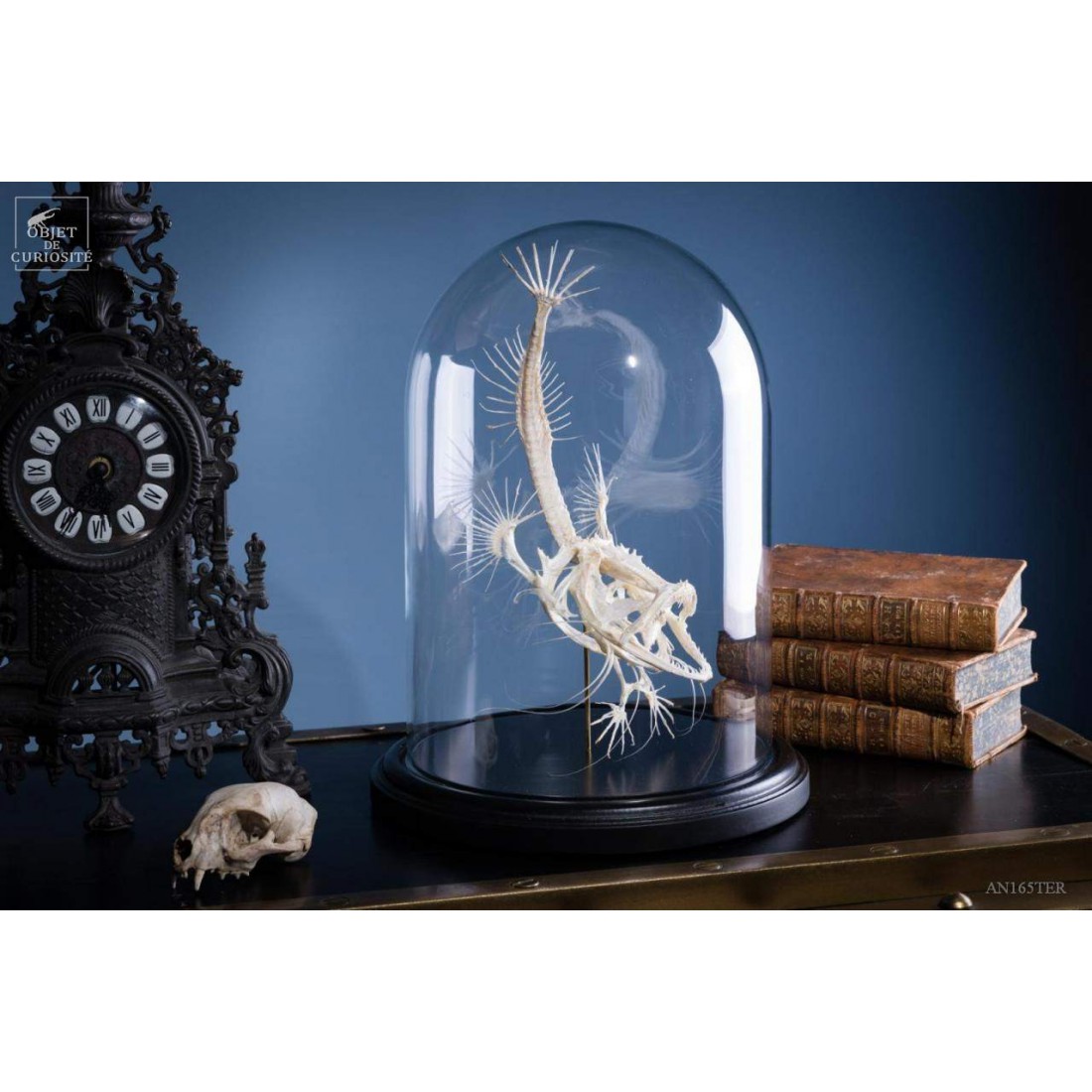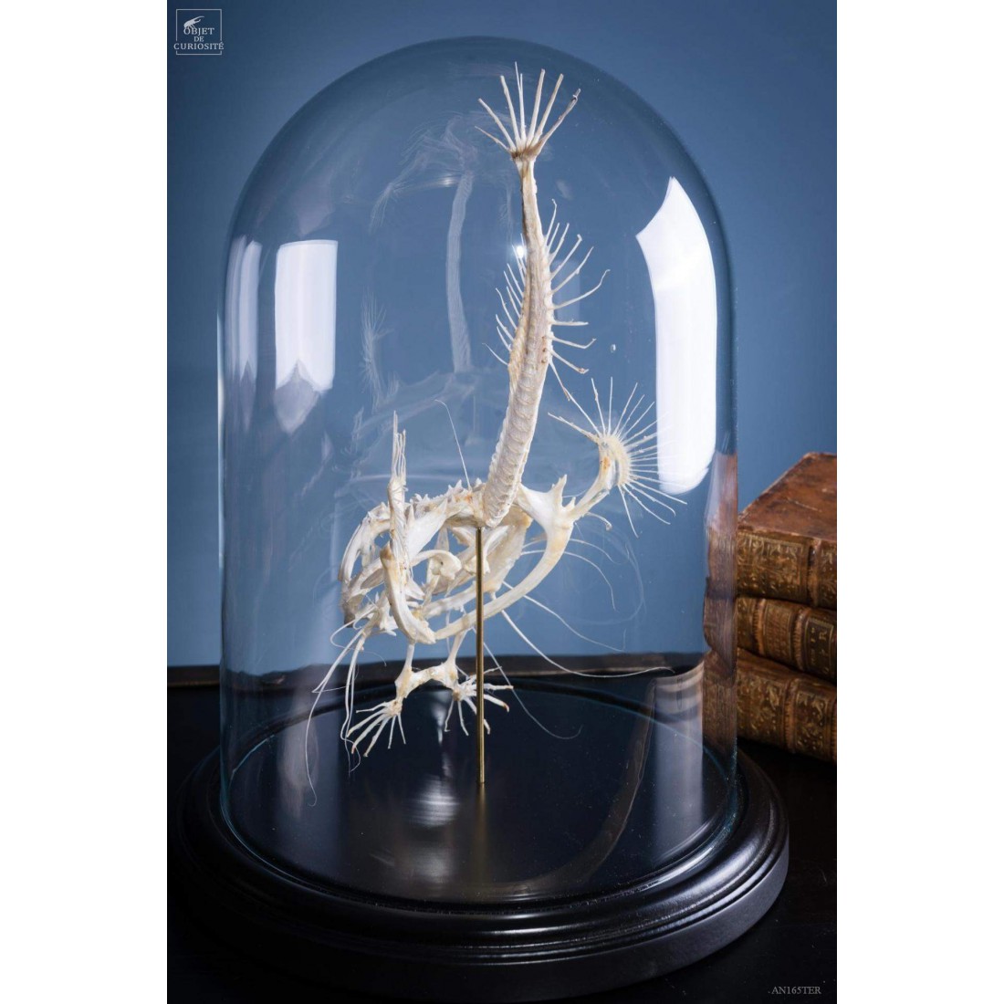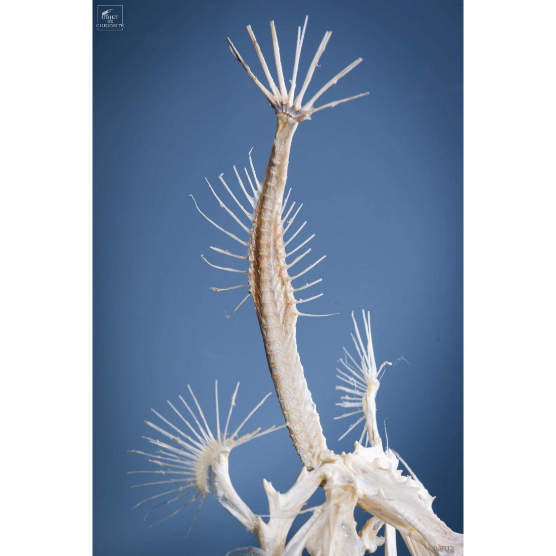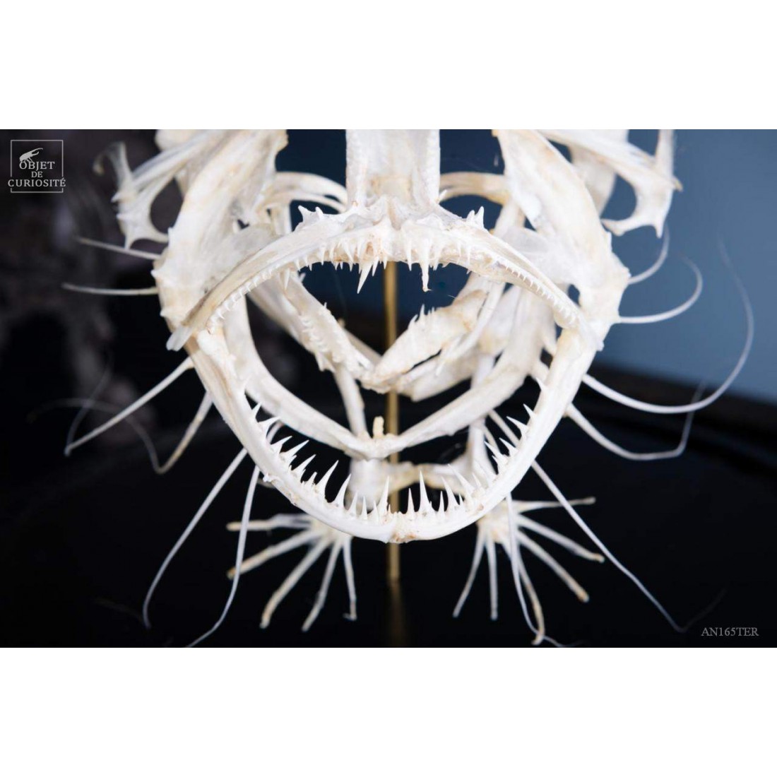 Cette baudroie au squelette vraiment surprenant est plus connue sous le nom de lotte. Un travail d'ostéologie remarquable, pour mettre en évidence l'incroyable mâchoire avec une double rangée de dents.