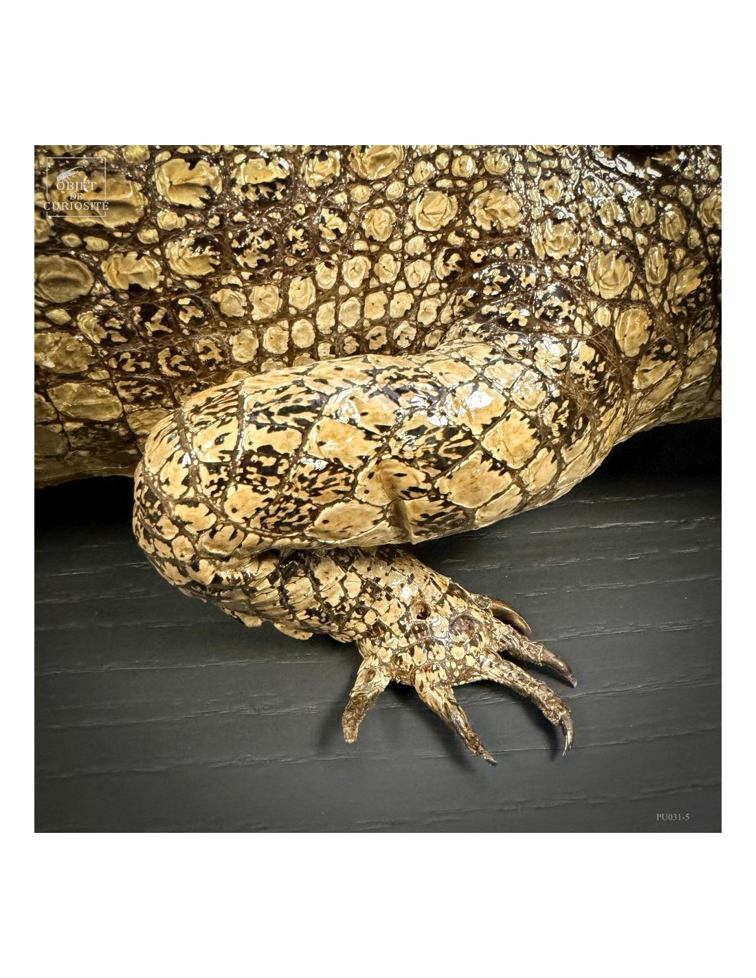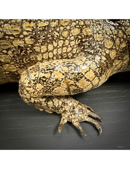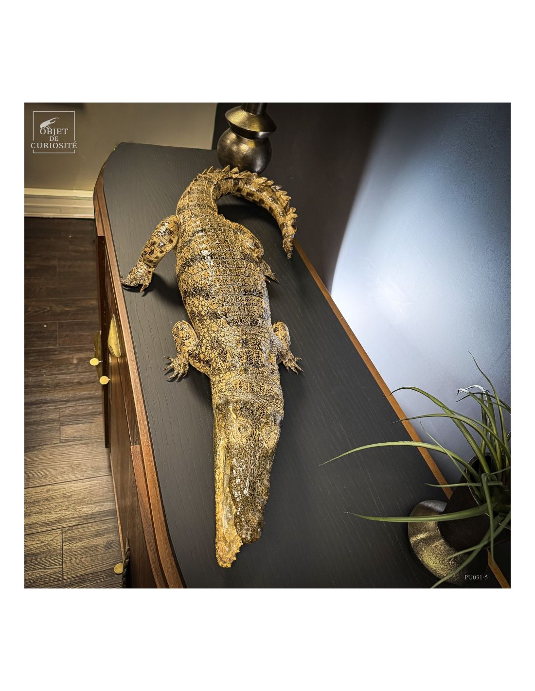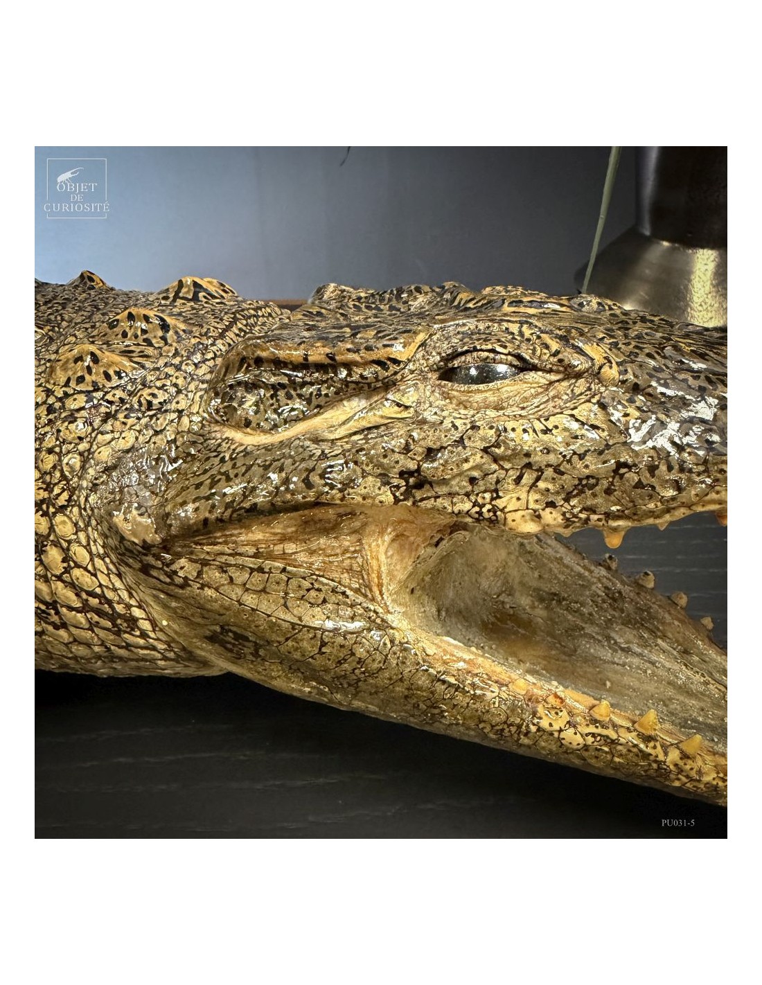 Sa longueur réelle, déployé, est de 145cm. Cette espèce est protégée par la convention de Washington, ce crocodile est donc accompagné d'un certificat CITES.