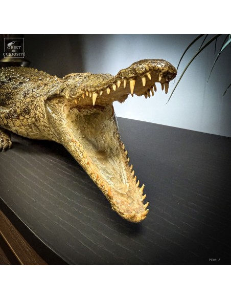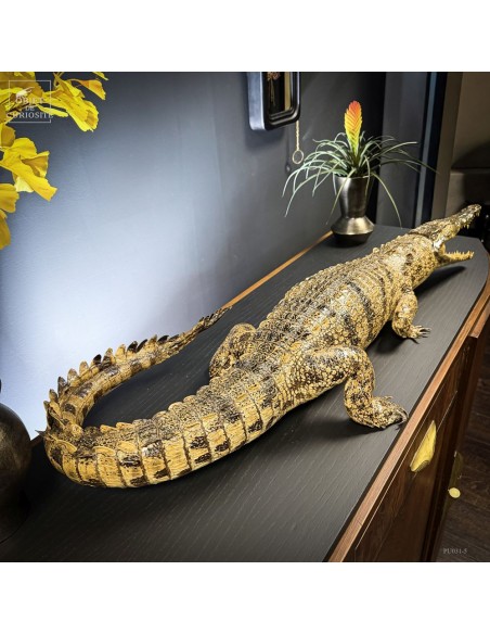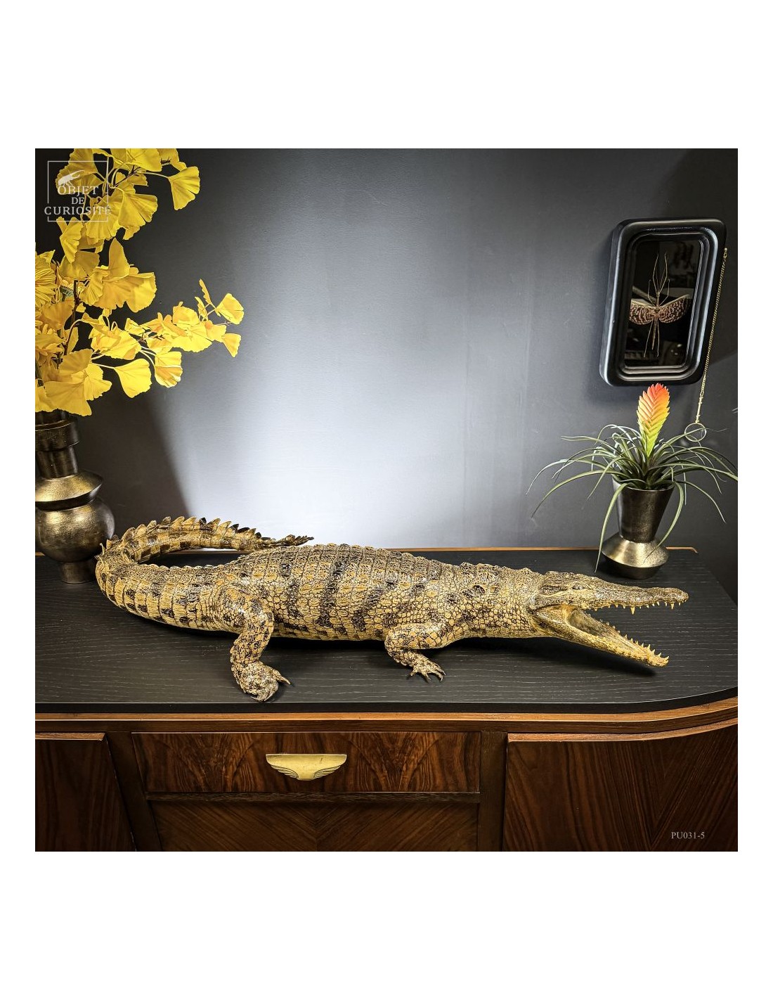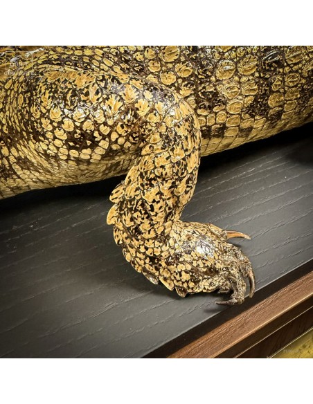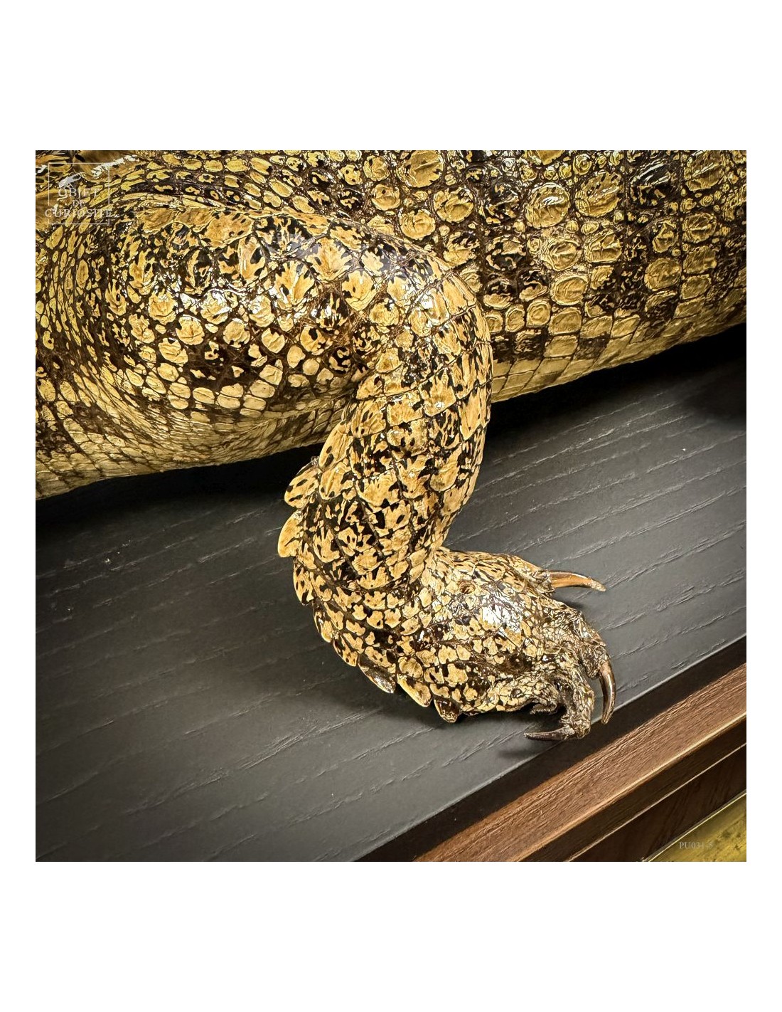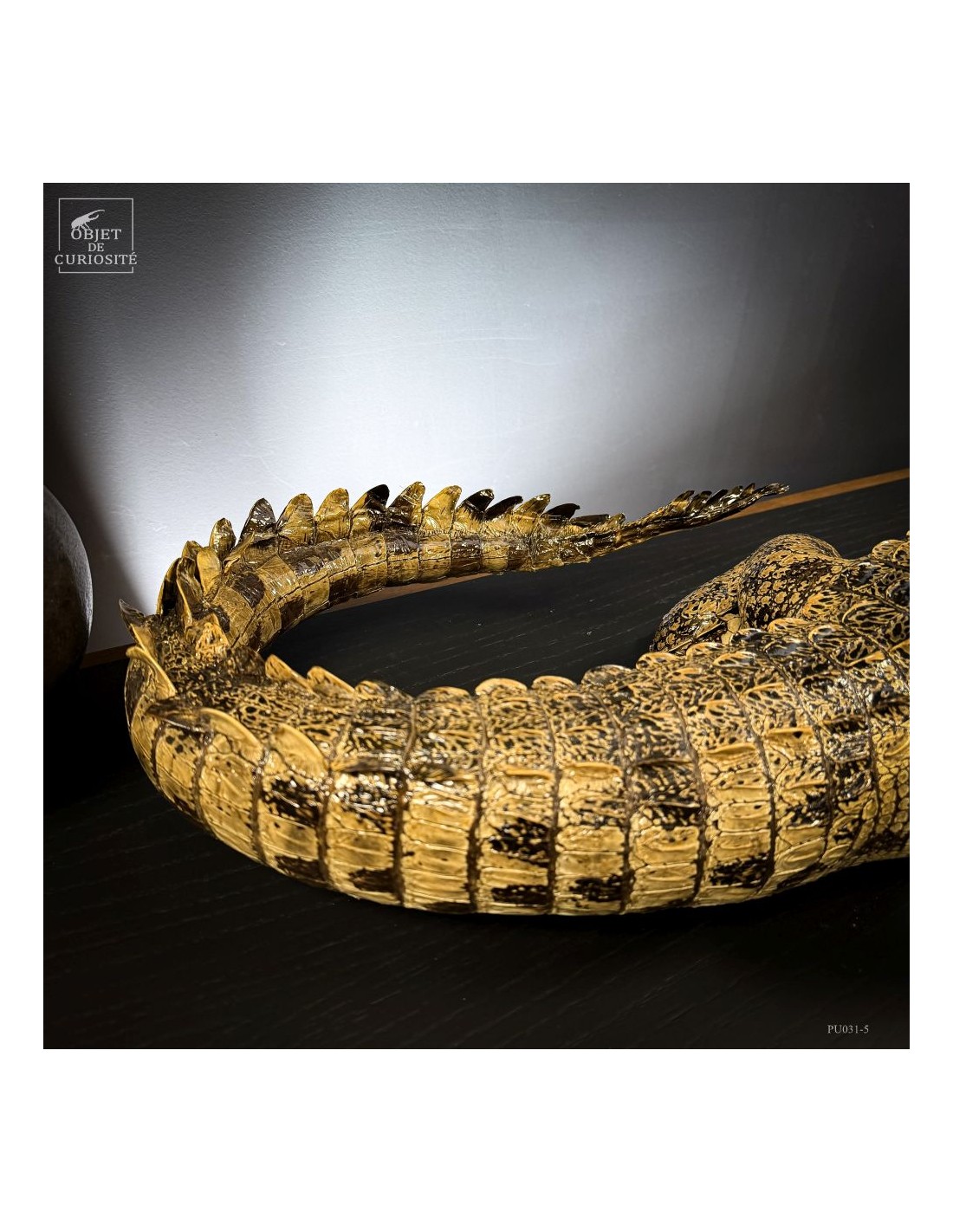Sa longueur réelle, déployé, est de 145cm. Cette espèce est protégée par la convention de Washington, ce crocodile est donc accompagné d'un certificat CITES.