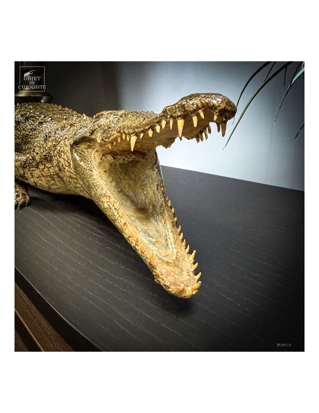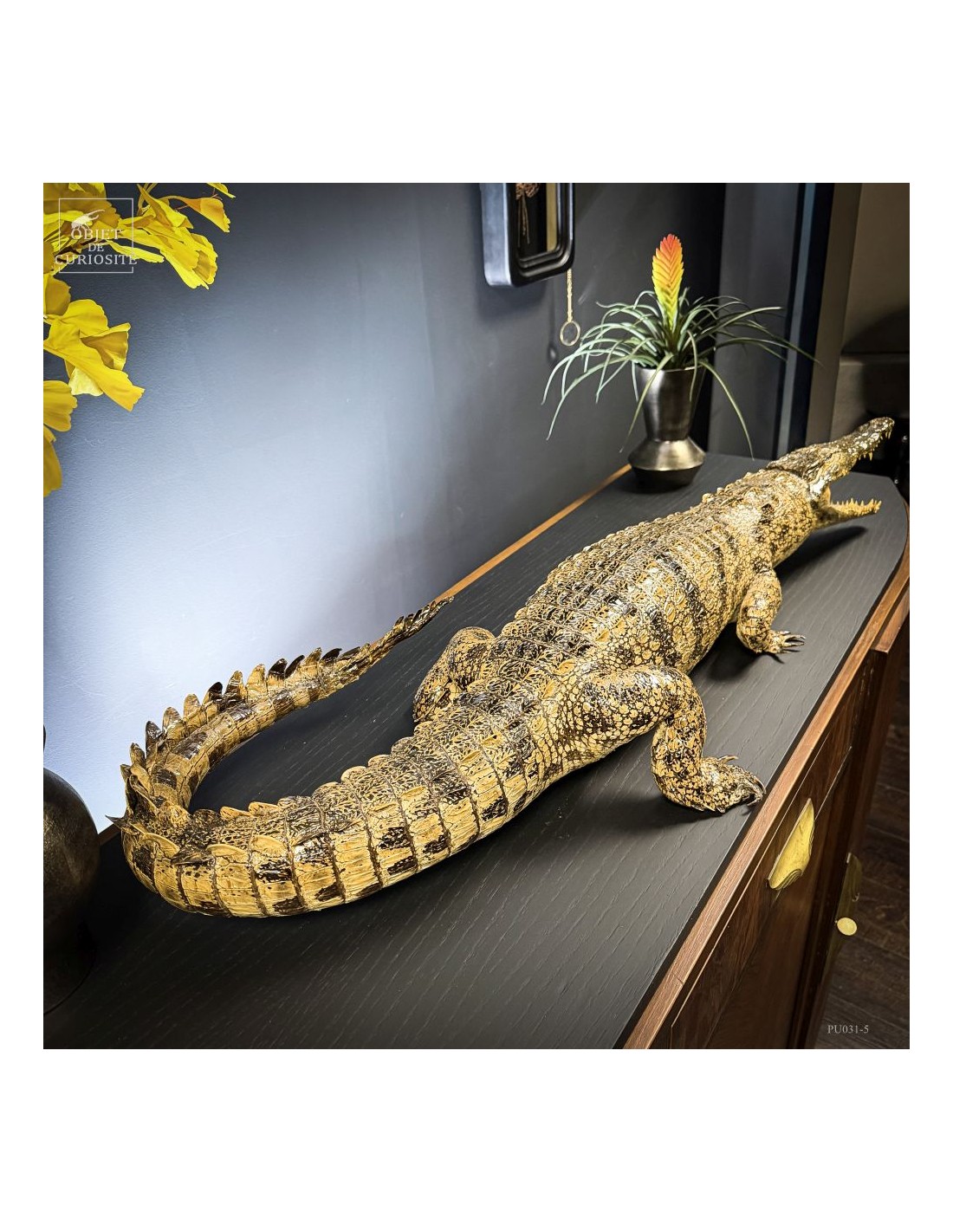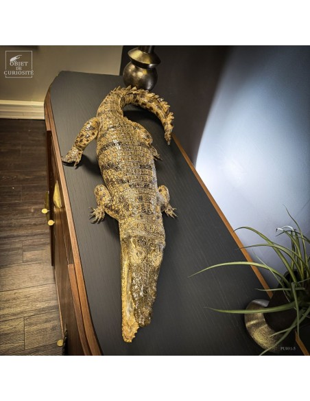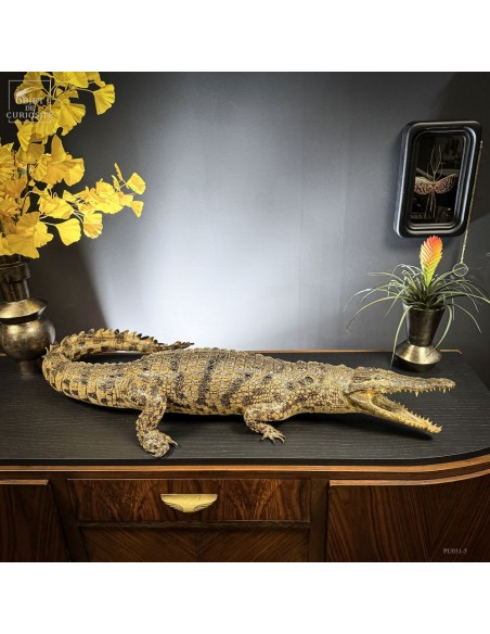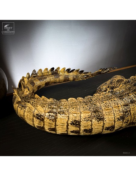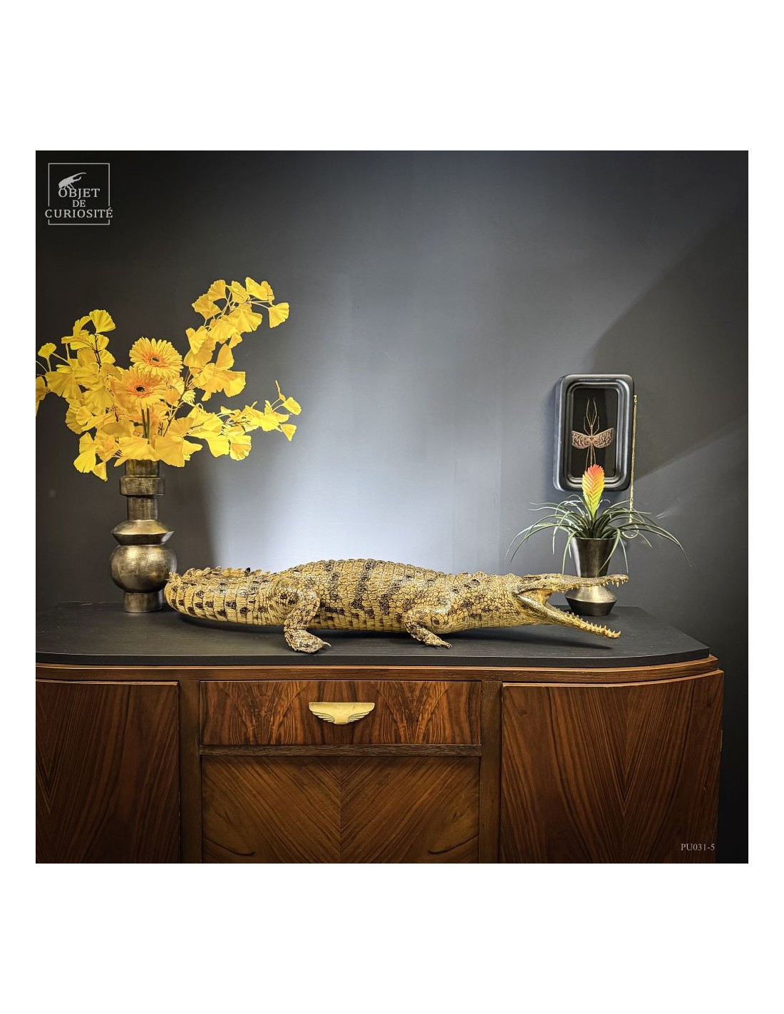 Sa longueur réelle, déployé, est de 145cm. Cette espèce est protégée par la convention de Washington, ce crocodile est donc accompagné d'un certificat CITES.