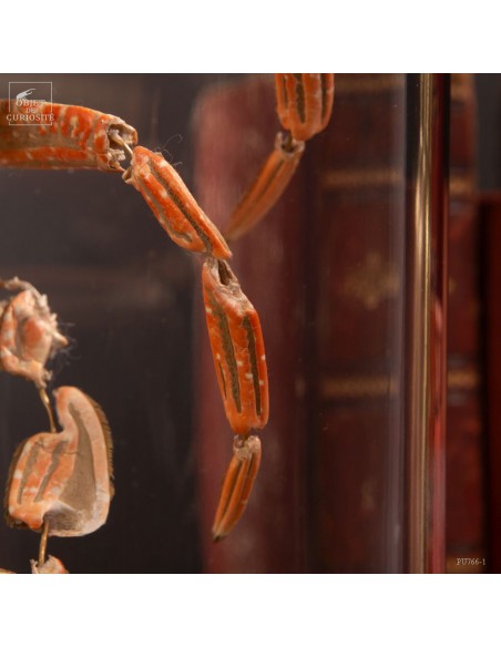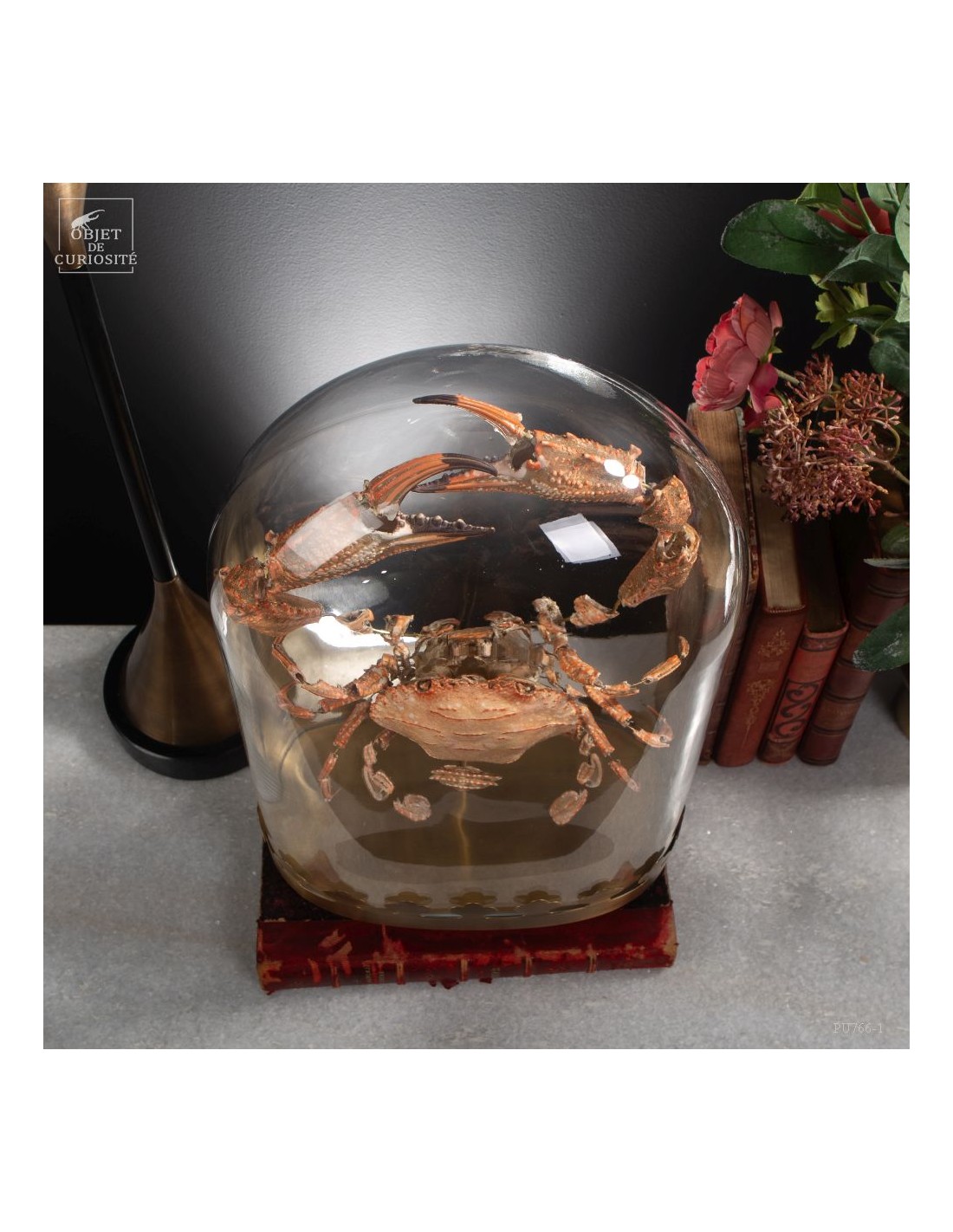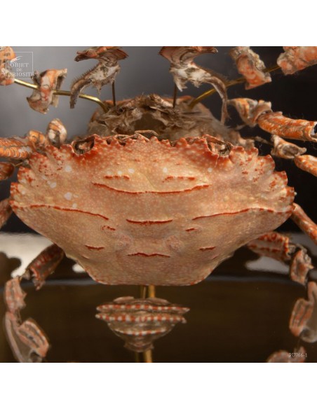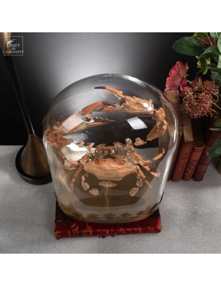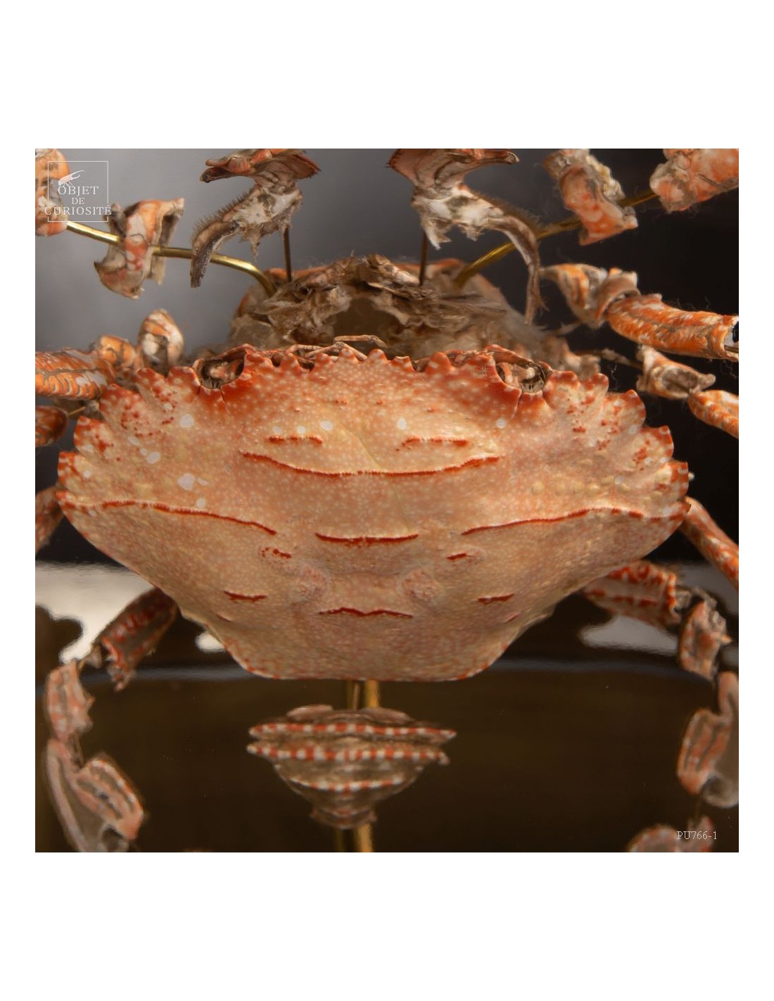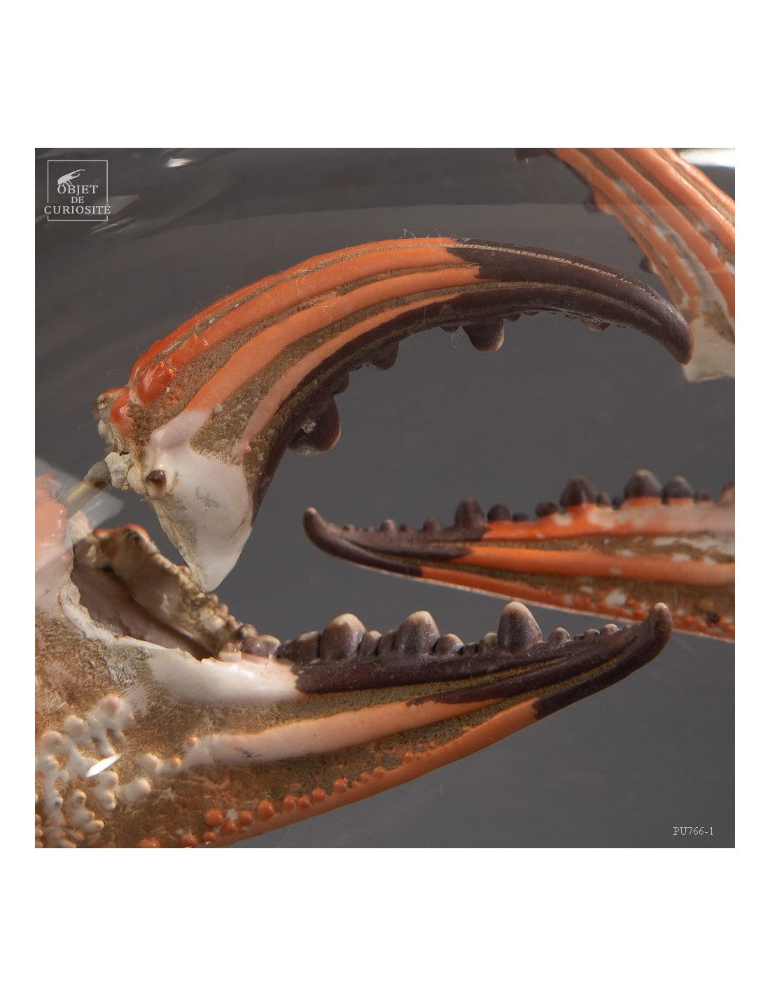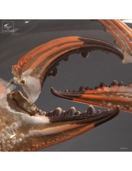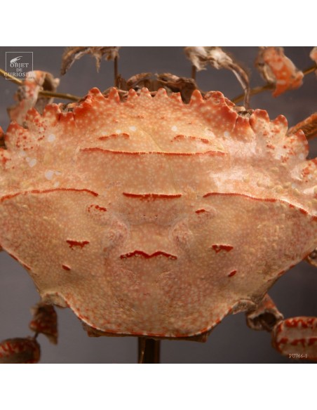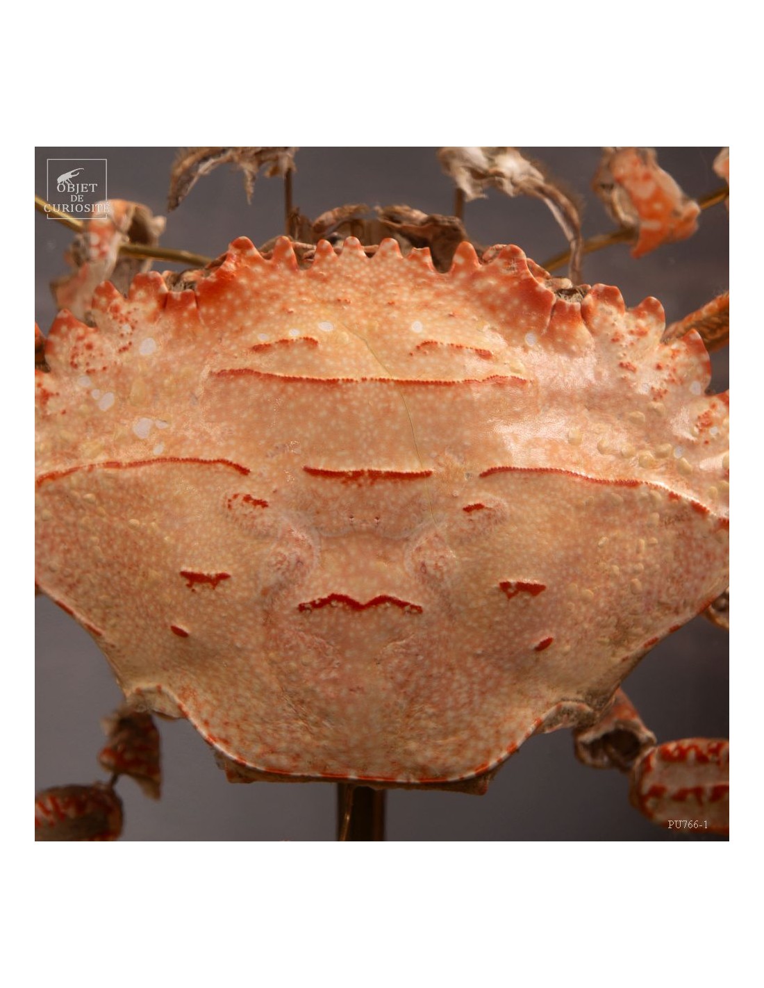 Ce crabe nageur rouge vient de la mer de Flores en Indonésie. C'est un Charybdis Paucidentatus. Ses pattes arrières sont aplaties, se terminant en palettes natatoire et fouisseuses. Il vit sur des récifs coraliens, dans la limite des 20 mètres.
