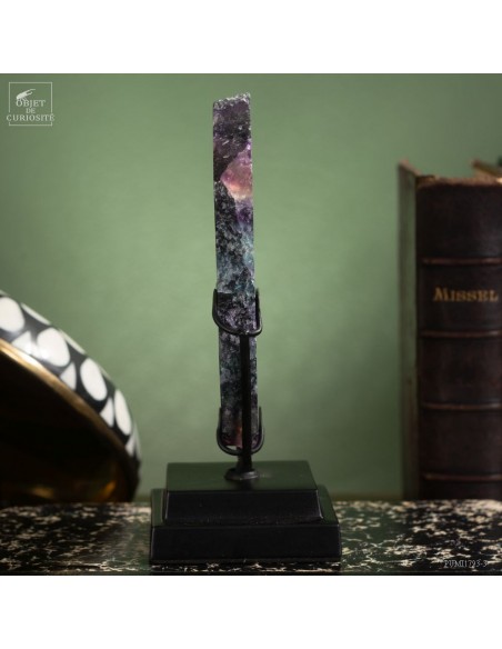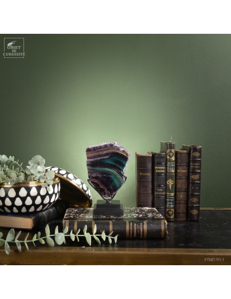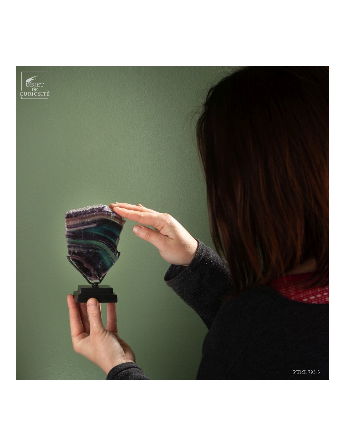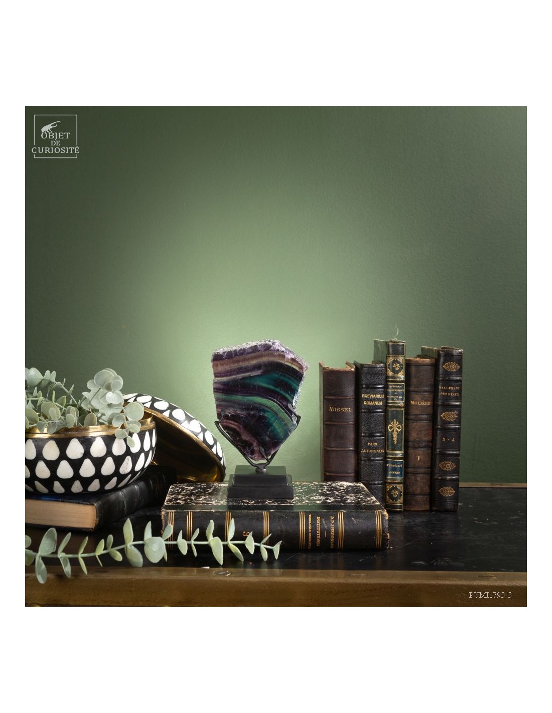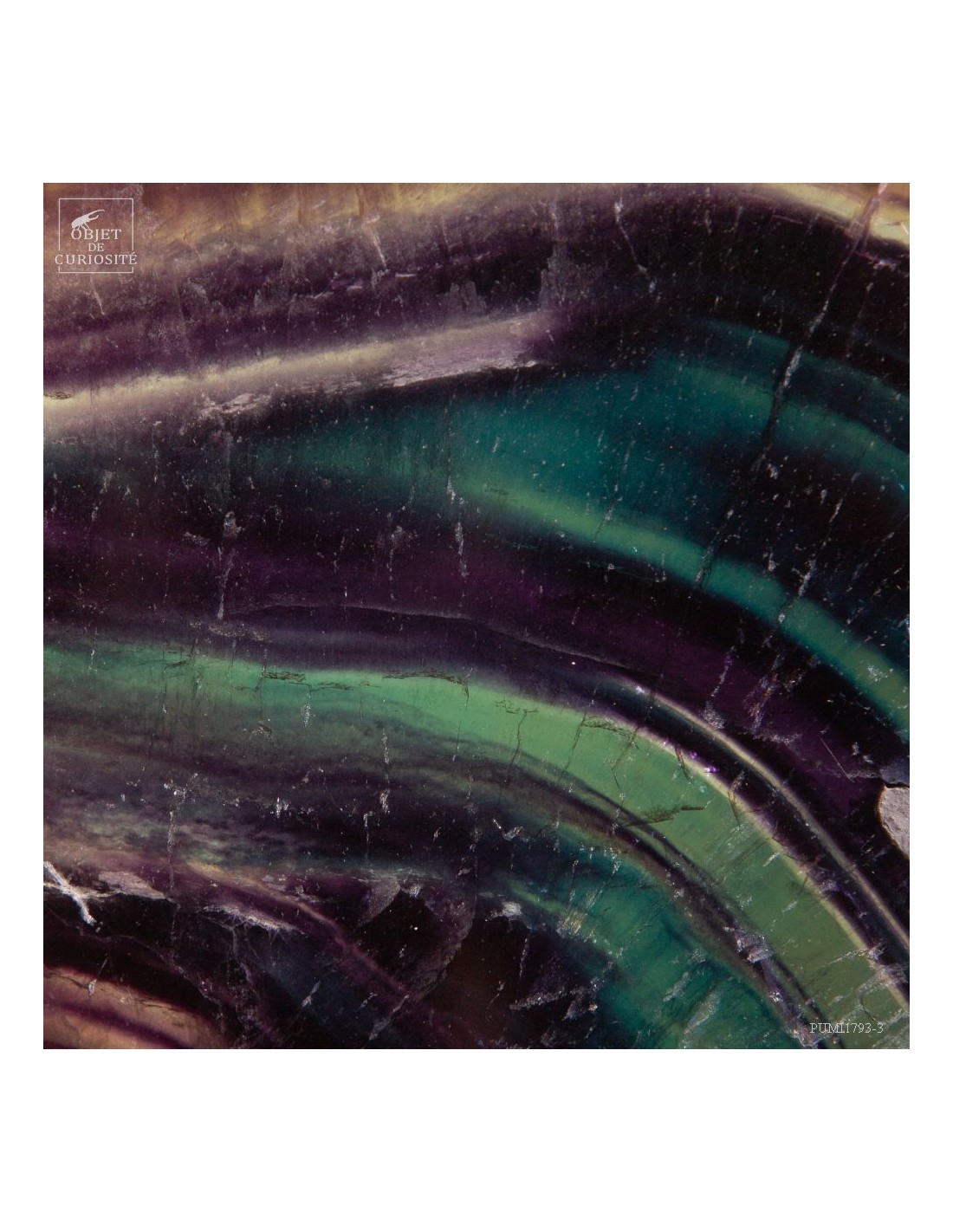 La Fluorite à bandes la plus célèbre au monde a été exploitée au 19ème siècle dans le Derbyshire en Angleterre: Blue John. Elle était récoltée pour sa valeur ornementale et les artisans arrivaient à creuser des saladiers et coupes que l'on trouve aujourd'hui dans les plus beaux châteaux Anglais. Mais une découverte récente a surclassé Blue John: La Fluorite Arc en Ciel de la mine Deqing fluorite, dans la province du Zhejiang en Chine. Cette pièce a des bandes parfaites de violet, vert, transparent... et très peu de pierres, y compris dans cette mine, ont un tel intérêt graphique.0.6Kg