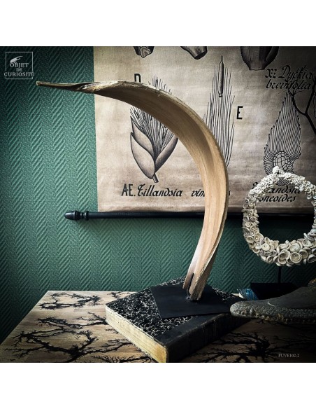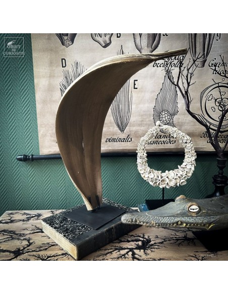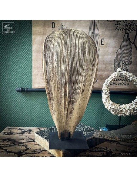 Cette feuille épaisse, surnommée « cobra » pour sa silhouette enroulée évoquant ce serpent dressé, provient du BACTRIS GASIPAES, le palmier pêche, originaire d’Amérique centrale. Elle n’est pas une curiosité pour sa rareté, mais pour sa forme inattendue, sculptée par les contraintes naturelles: elle protège la floraison de la pluie.