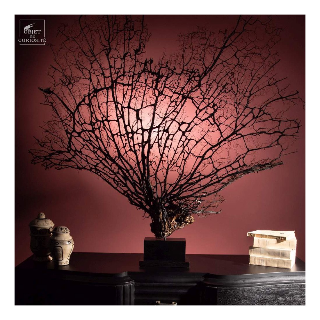 Bien qu'elle appartienne au monde marin, cette gorgone ressemble à un arbuste. Il semble qu'elle ait grandi dans un milieu avec de forts courants. Les mouvements permanents de la mer ont forcé cet animal (une colonie de polypes, en fait) à avoir une croissance lente et donc à développer un squelette large et puissant pour résister aux mouvements. Provenant de Micronésie.