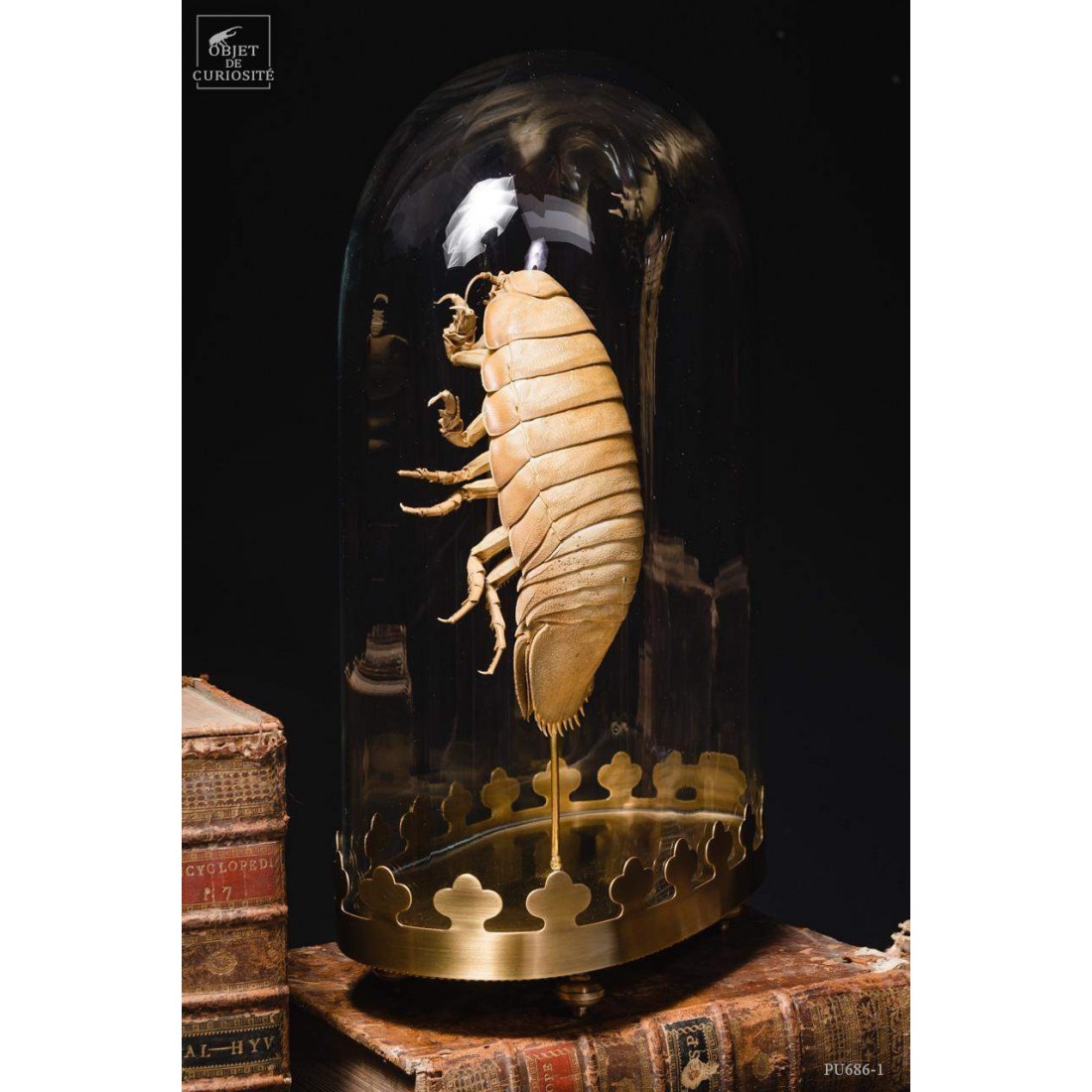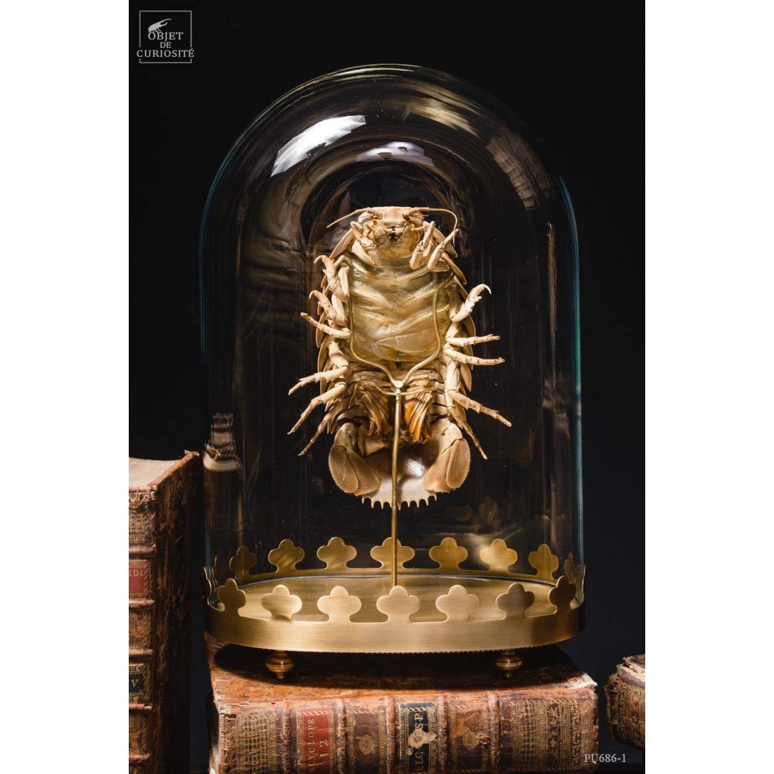 Le Bathynomus est un géant des très grandes profondeurs. Il parcours les fonds marins du golf du mexique et des antilles à la recherche de poissons morts (y compris baleine, calamar...) entre 500 et 2000 mètres de fond, là où l'eau est à 4°C. Ses grands yeux à 4000 facettes lui permettent de voir dans l'obscurité. Sa vie au ralenti est solitaire et comme il ne trouve pas toujours de nourriture, il est capable de jeuner pendant plus de 5 ans! Mais quand il trouve de quoi manger, il se gave au point de ne plus pouvoir marcher! Celui-ci, de 850Gr. a été attiré par les appats placés dans un casier pour pêcher des langoustes à Basse Terre en Guadeloupe, où la raréfaction entraine les pêcheurs à aller pêcher de plus en plus profond.