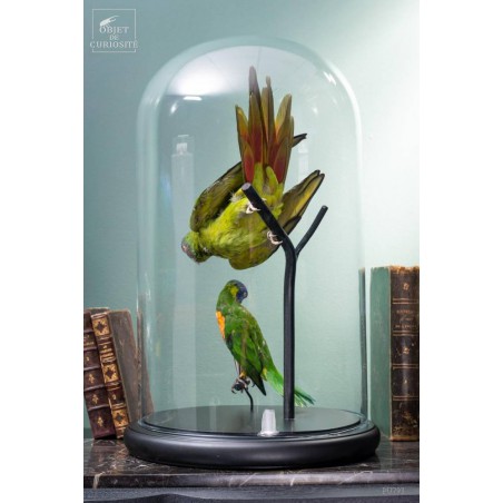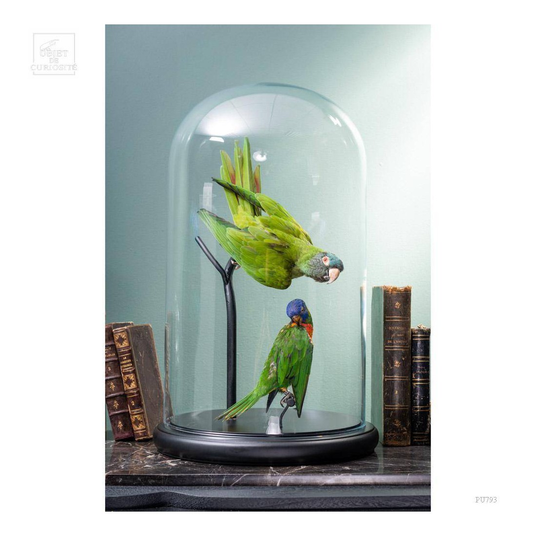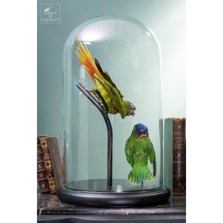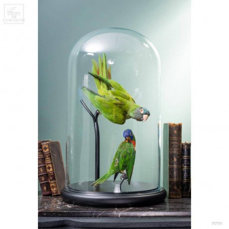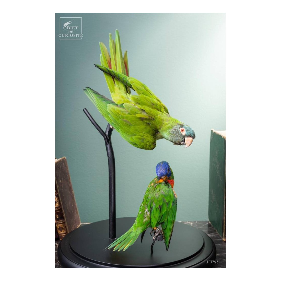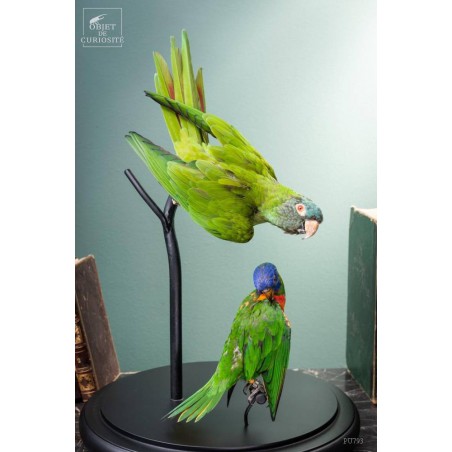 Bien que n'étant pas originaires du même continent, la Conure à tête bleue d'Amérique du Sud et le Loriquet à tête bleue d'Australie auraient pu s'entendre! Ces animaux sociaux et bruyants vivent en bande, cherchant une anfractuosité dans un tronc d'arbre pour y faire leur nid.
