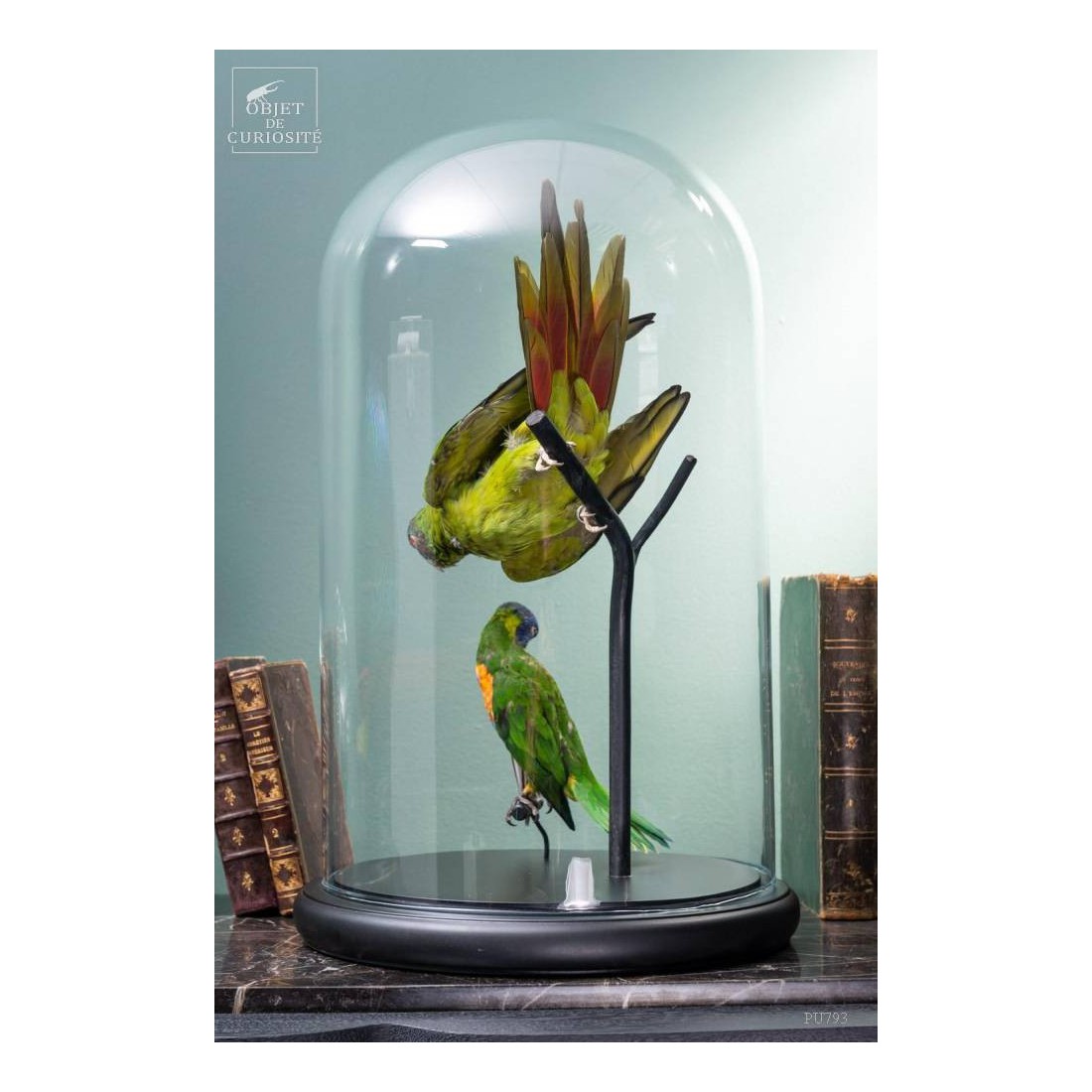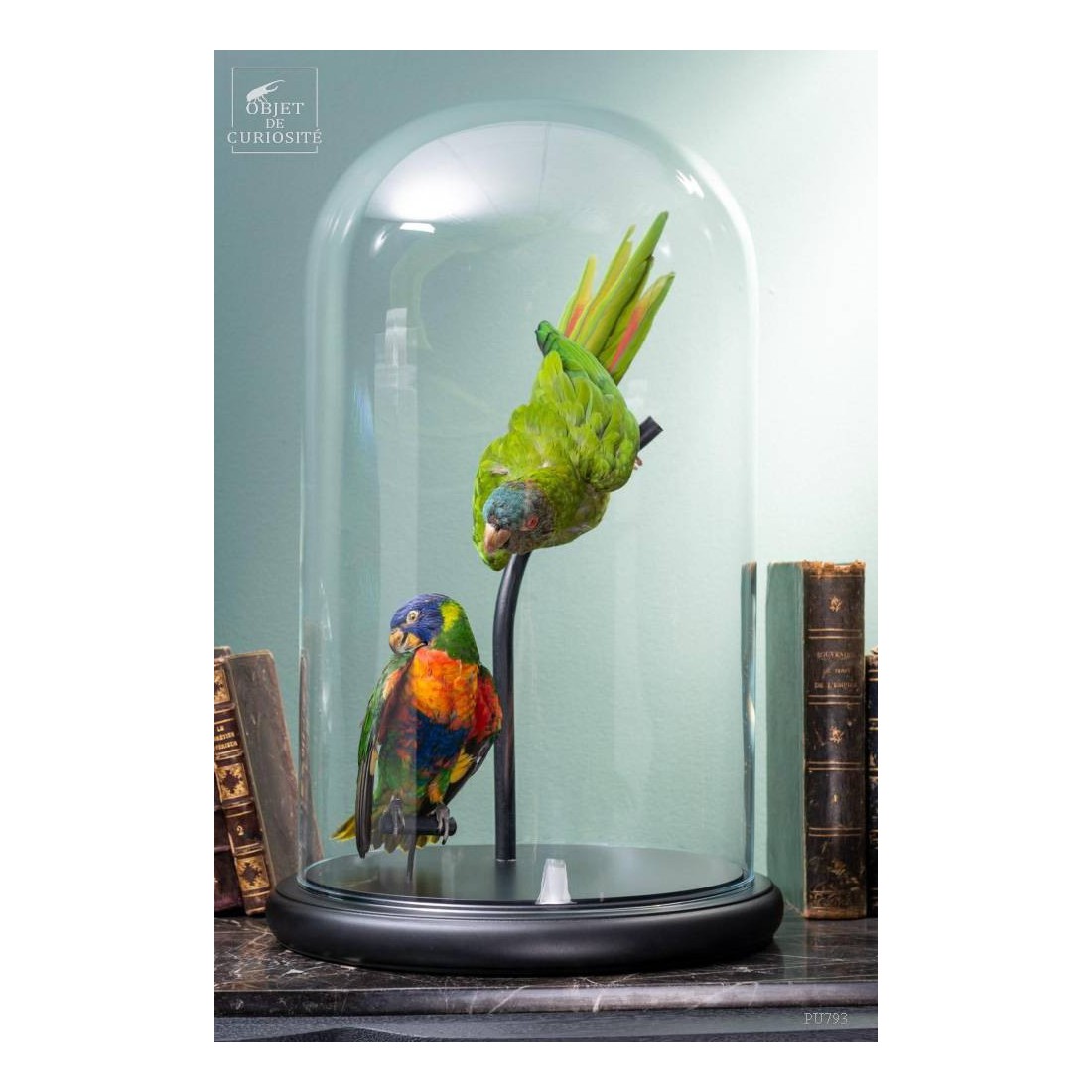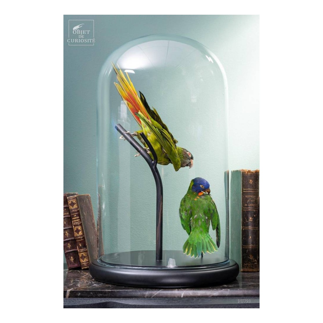 Bien que n'étant pas originaires du même continent, la Conure à tête bleue d'Amérique du Sud et le Loriquet à tête bleue d'Australie auraient pu s'entendre! Ces animaux sociaux et bruyants vivent en bande, cherchant une anfractuosité dans un tronc d'arbre pour y faire leur nid.