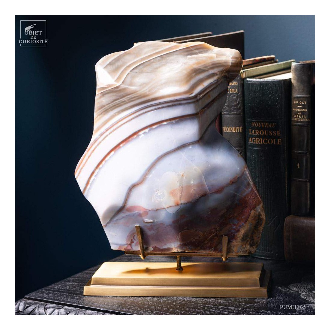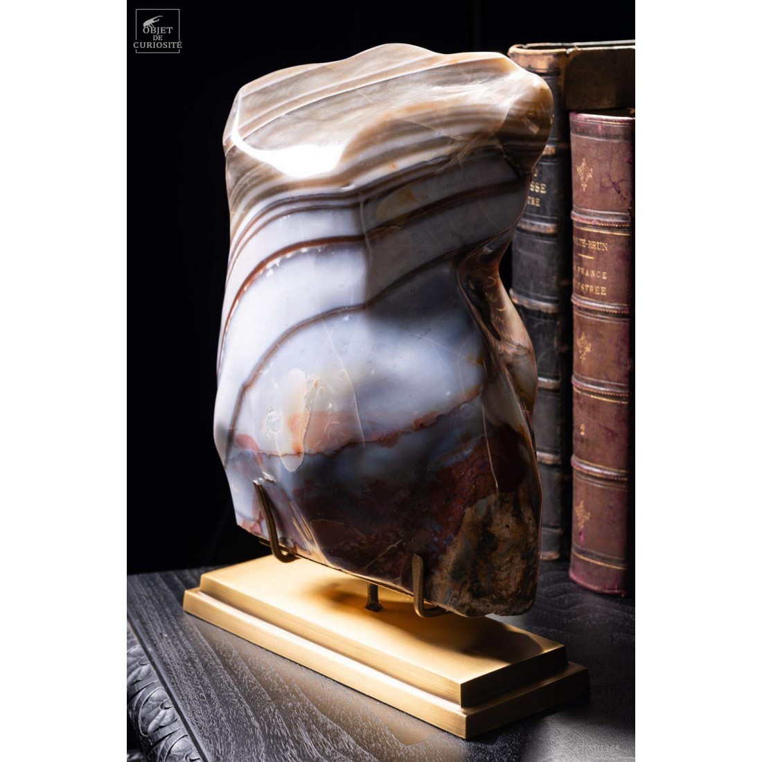 Bloc de jaspe zébré (11.4kg) Madagascar - socle laiton