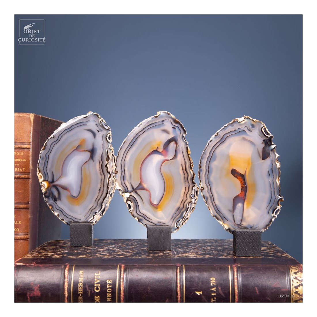 Série de 3 tranches d'agate -support cube noir- Brésil