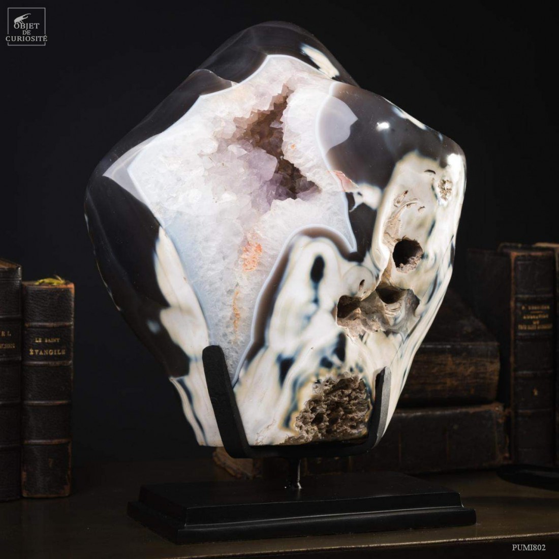 Géode d'améthyste dans gangue polie bleu/blanc  Madagascar 6.9kg- base noire