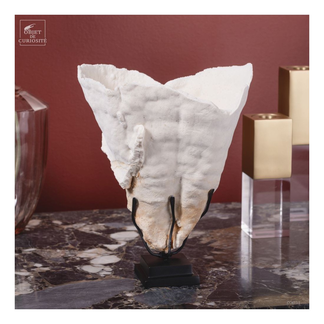 Corail Turbinaria Reniformis provenant des Îles Salomon. Le nom commun de ce corail est "cup coral". Son squelette forme de grandes vagues blanches enroulées sur les bords. Les polypes ne se déploient que la nuit pour se nourrir de plancton. Sous la mer, sa couleur est un beau nuancier de jaunes, parfois vert. Ce corail est livré avec son propre numéro de CITES (convention de Washington).