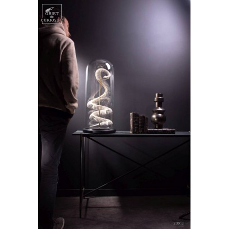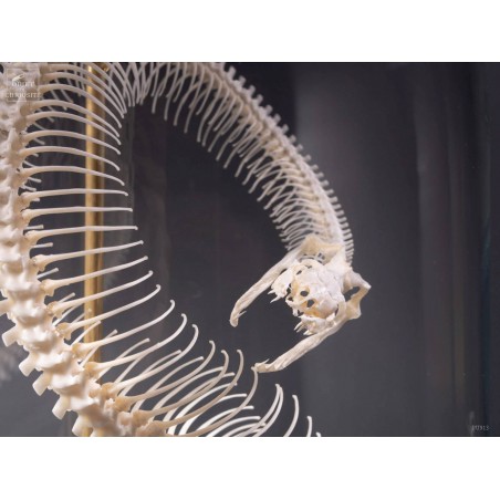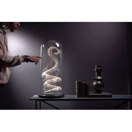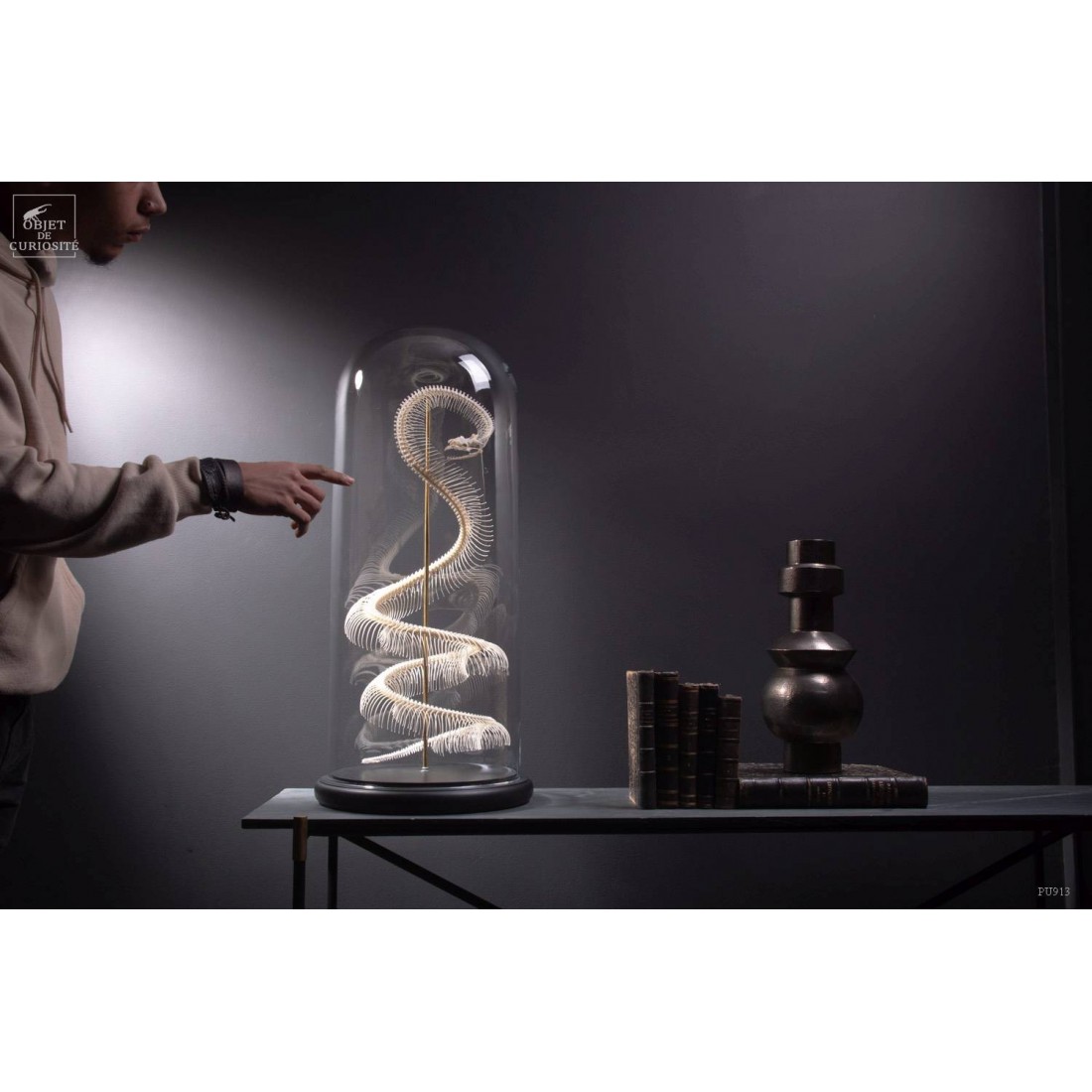 Cette sculpture blanche n'est pas l'oeuvre en 3D d'un étudiant en art. C'est bien le véritable squelette d'un Python molure birman. C'est l'un des plus gros serpents du monde (le plus grand spécimen mesurait 5.74m)