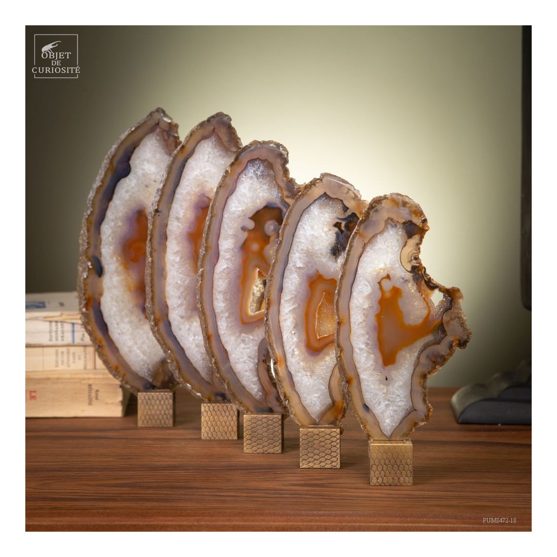 Série de 5 tranches d'agate support cube laiton - Brésil
