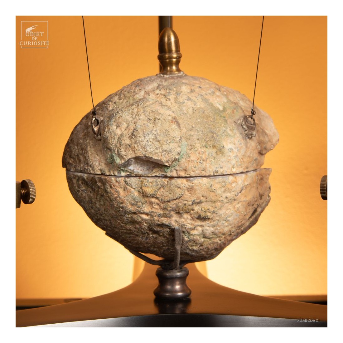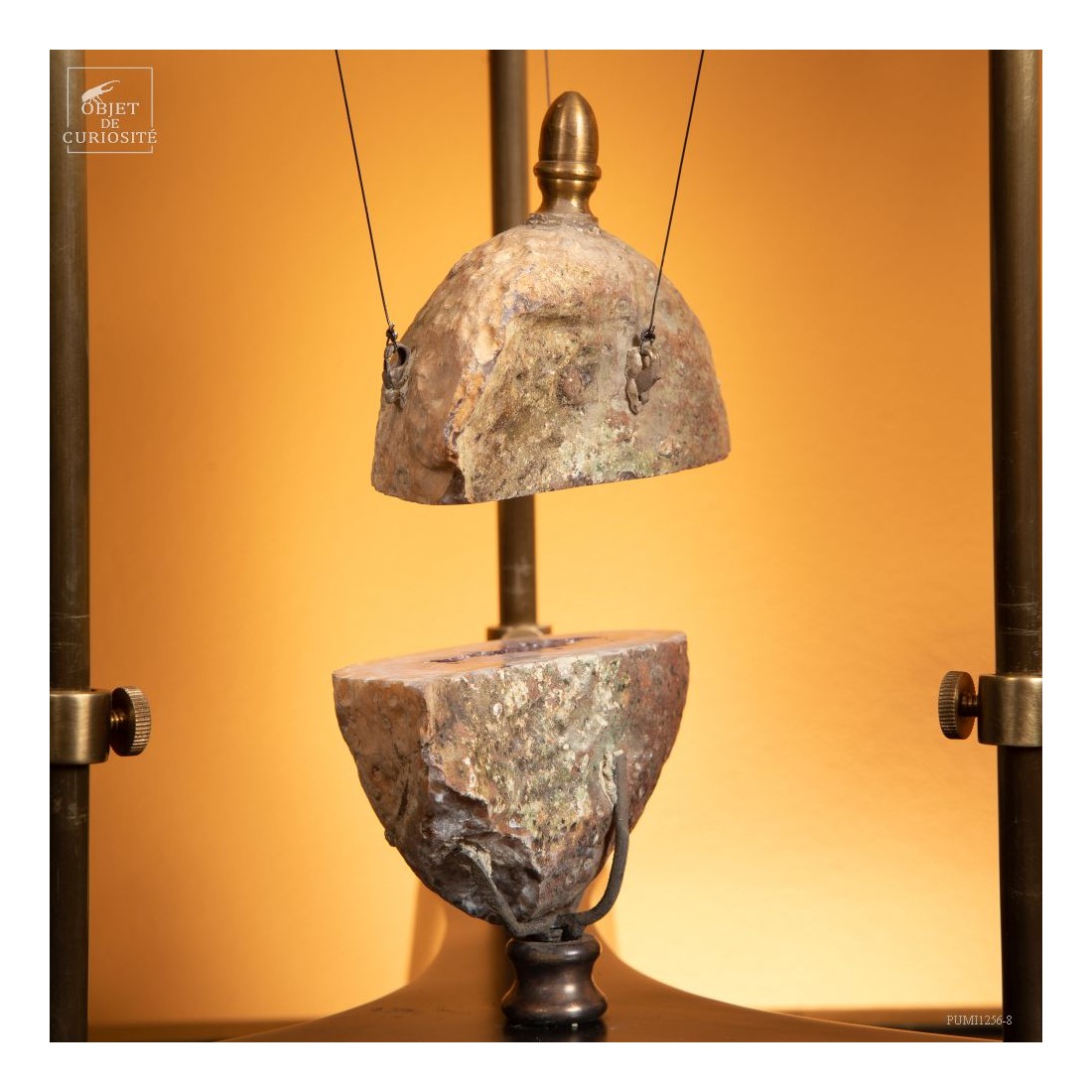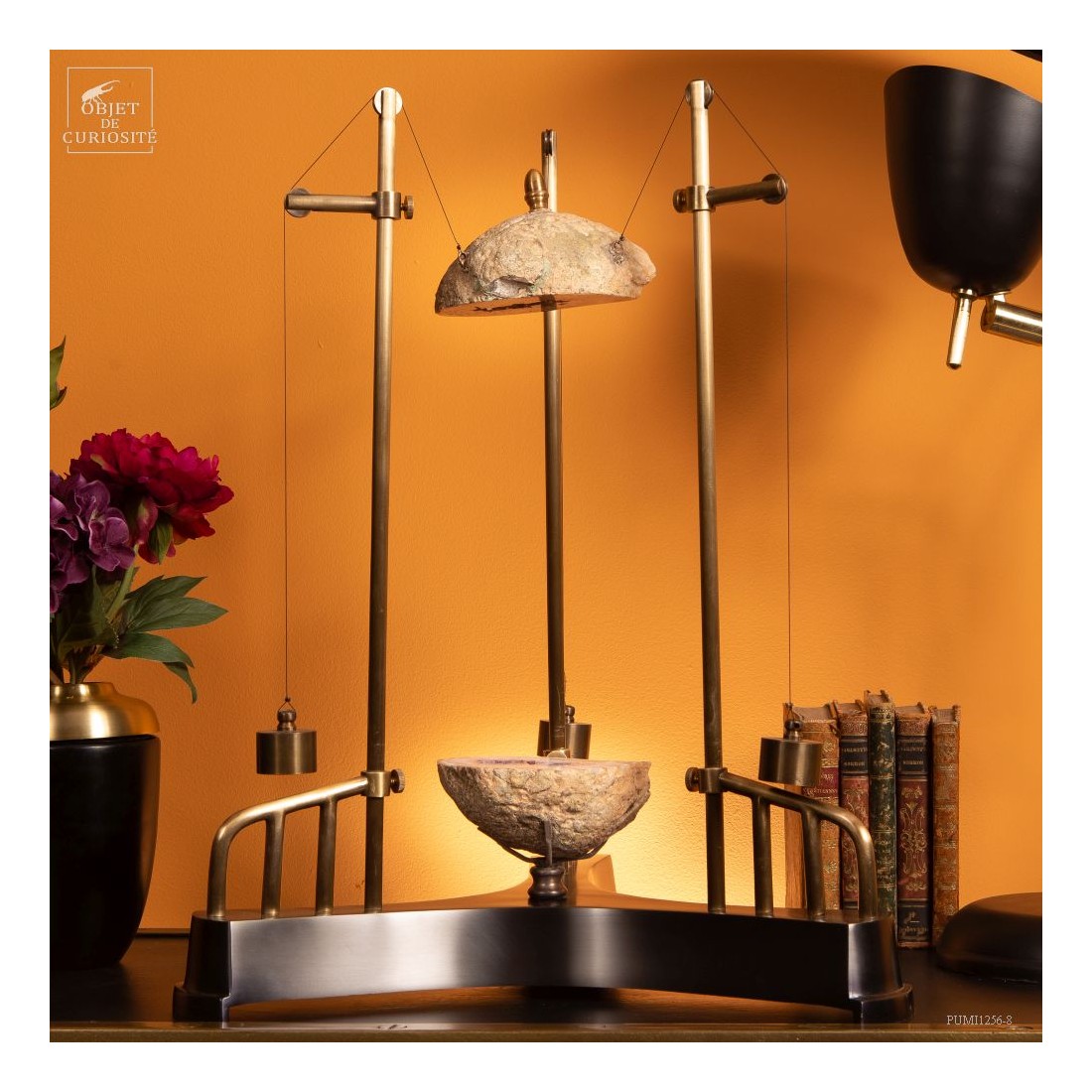 Mais dès que l'on soulève la partie supérieure, on découvre une cavité d'améthyste dans une géode de cristal de roche. Le mécanisme fonctionne grâce à 3 mâts et des contrepoids qui maintiennent le couvercle en équilibre. Et il fonctionne surtout sur l'effet de surprise!