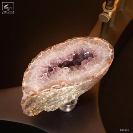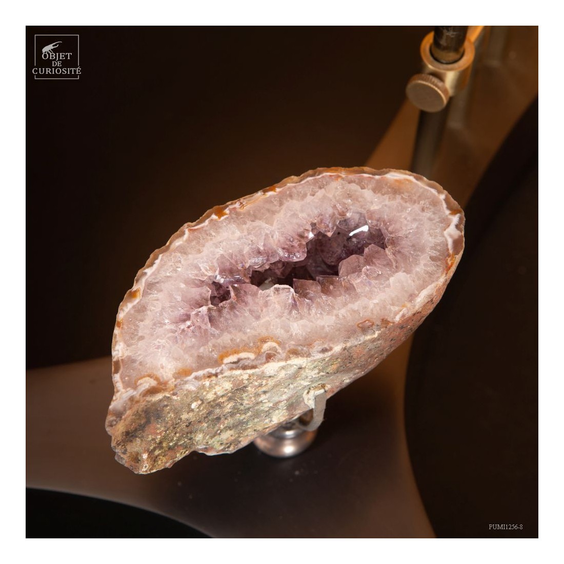 Géode d'améthyste du Brésil, dans mécanisme laiton.