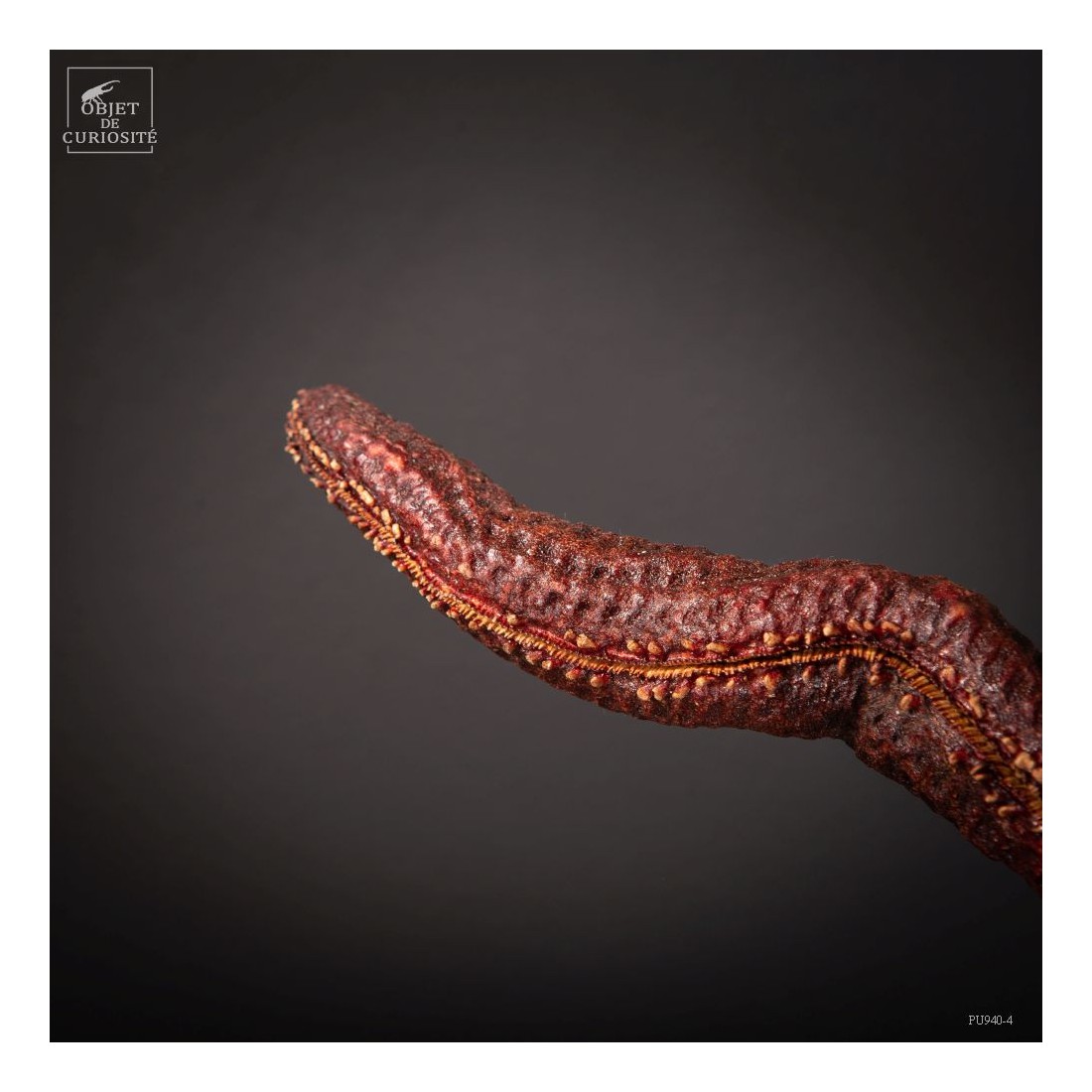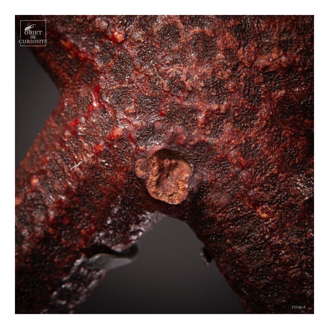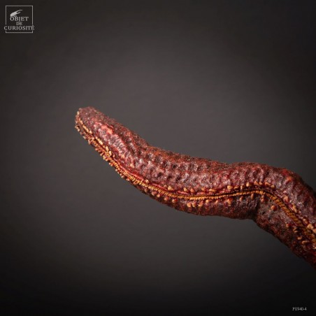 Cette géante est une étoile de mer qui approche la taille record! De la famille des Linckia, ses bras sont à peu près cylindriques et son dessin est réellement celui d'une étoile. Mais contrairement à Echinaster Sepositus qui est l'étoile de mer rouge que l'on rencontre en mer Méditerranée, celle-ci atteint ici une envergure de 50cm... A noter, légèrement excentrée, un cercle un peu plus gros que le reste des motifs de cette étoile: la plaque madréporique. C'est par cet organe que l'étoile de mer respire et filtre l'eau de mer.