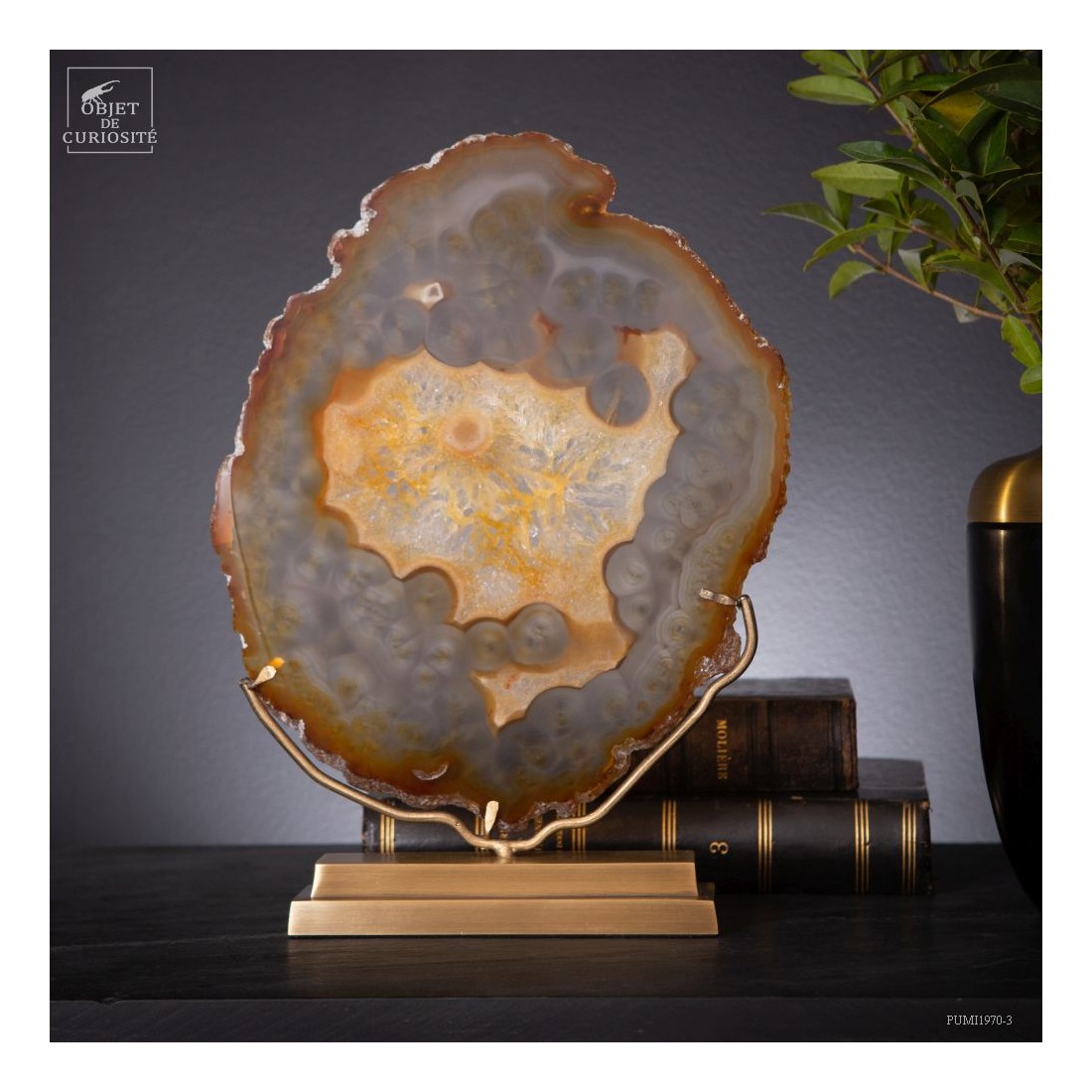 Tranche d'agate dorée sur base laiton