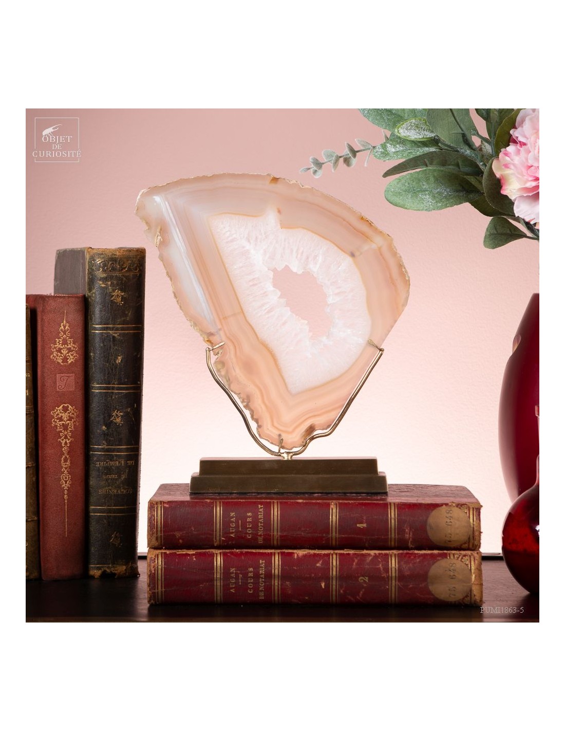 Agate en tranche sur socle laiton