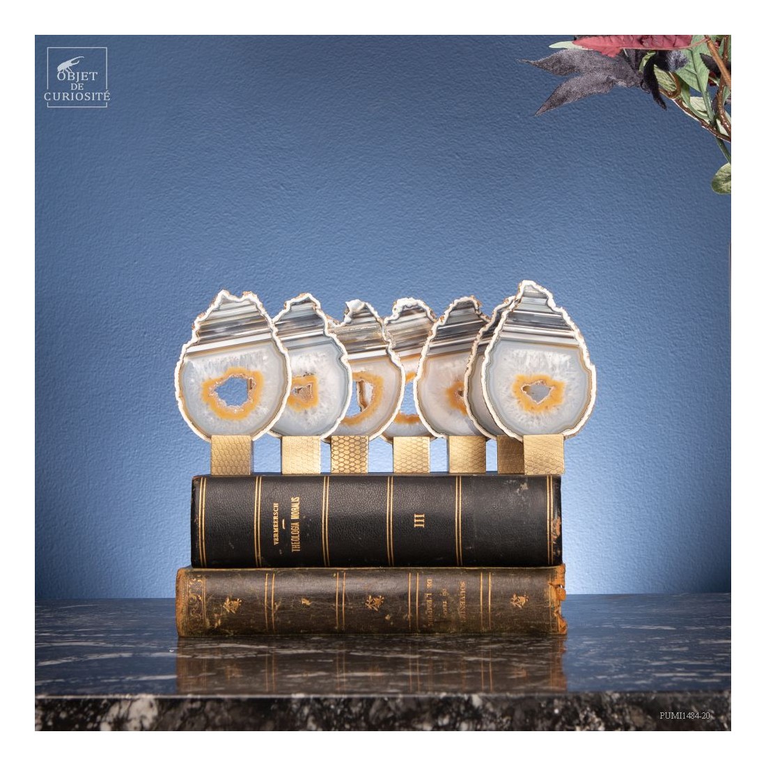 Série de 7 tranches d'agate support cube laiton - Brésil