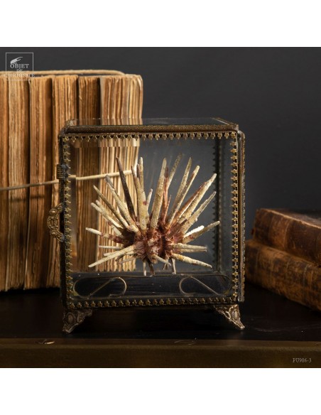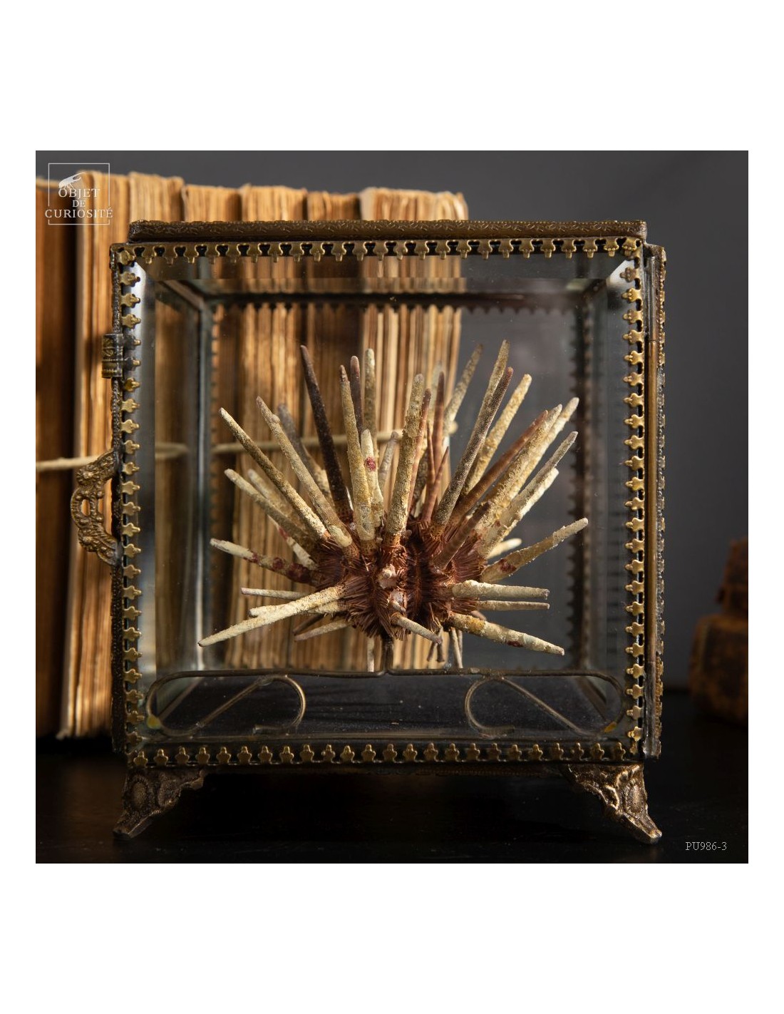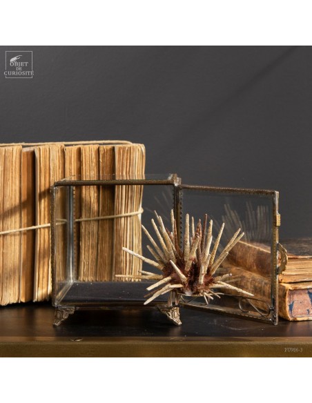 Chez les oursins-crayons du Pacifique, c'est comme dans une papeterie: il y a plusieurs sortes de crayons! Cette espèce, le Phyllacanthus Imperialis, a des "crayons" plutôt fins. Il s'agit bien-sûr de ses piques. Et on peut le rencontrer de 0 à -70 mètres dans la zone Indo-Pacifique et en Australie. c'est un animal plutôt nocturne qui essaie de se montrer discret dans la journée en restant caché sous les rochers. Celui-ci ne sera pas discret du tout, dans sa boite en verre... Mais c'est ce que l'on attend de lui quand on ouvre la porte: il suit le mouvement et se présente sans filtre à vous.