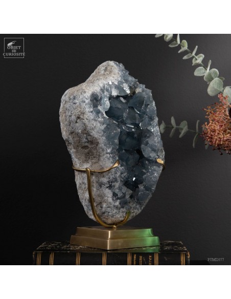Géode de célestite de 5.5kg (Madagascar) sur base en laiton
