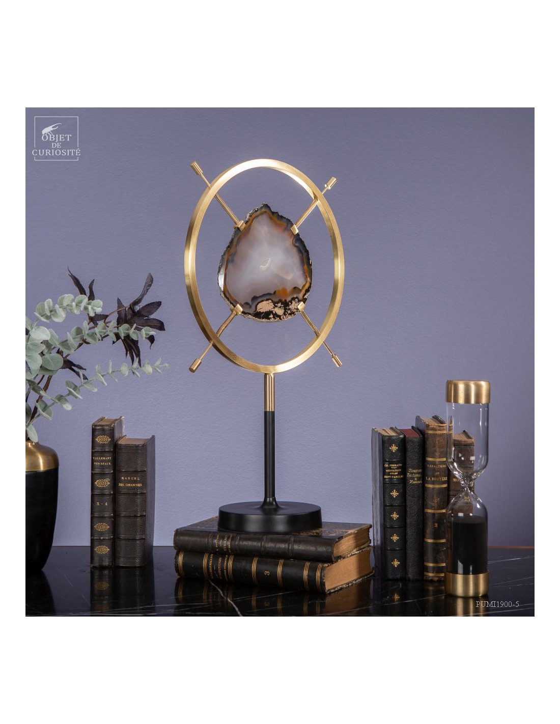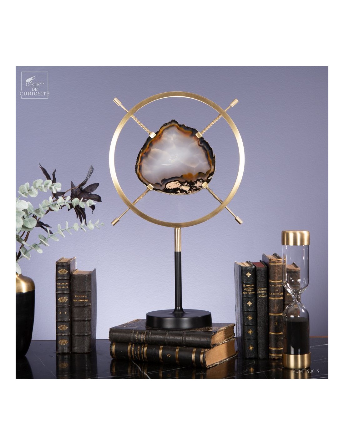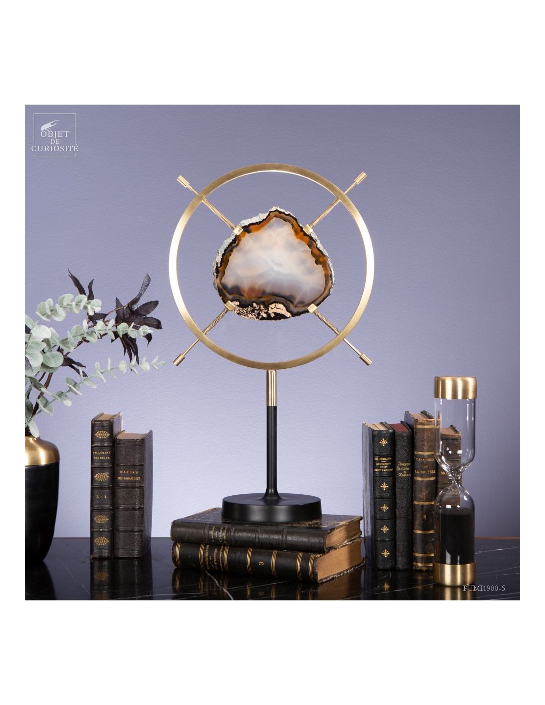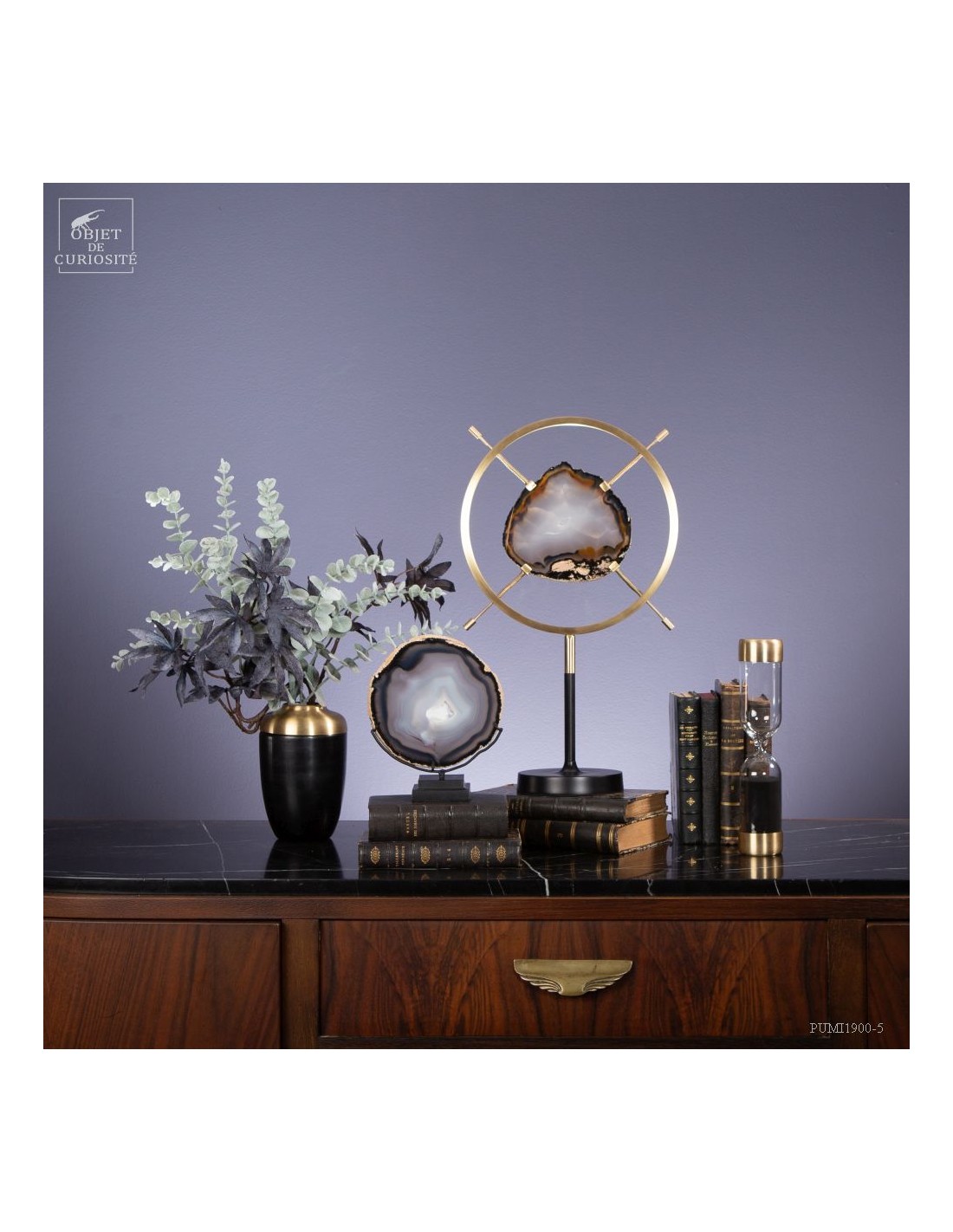 Tranche d'agate dans support vertical circulaire