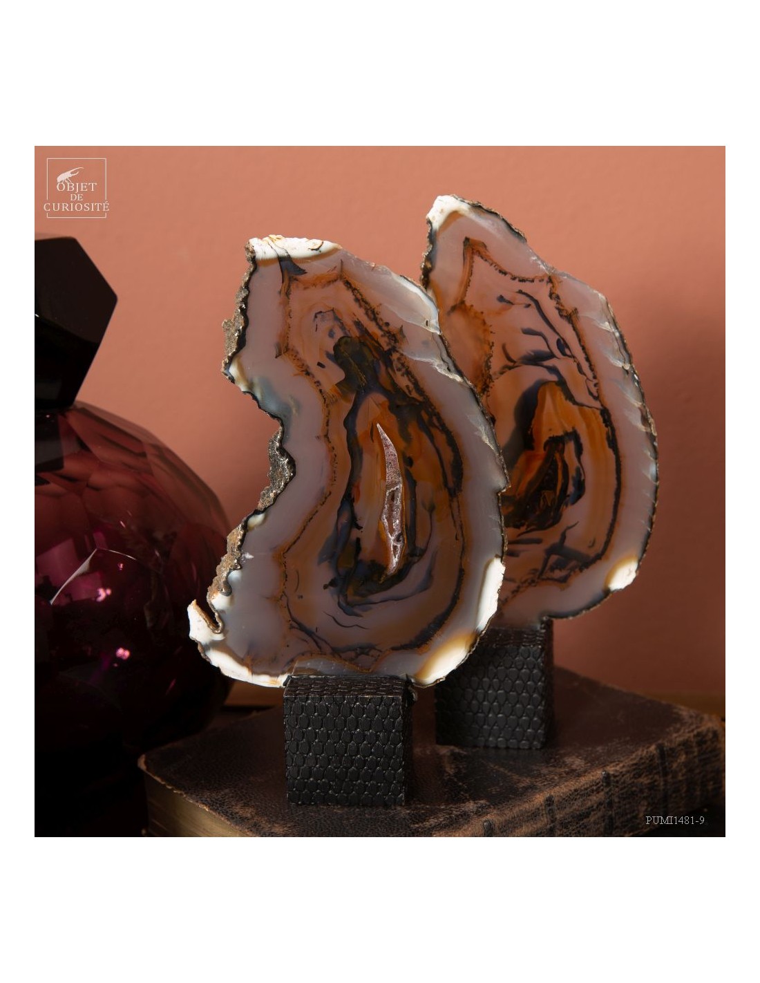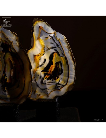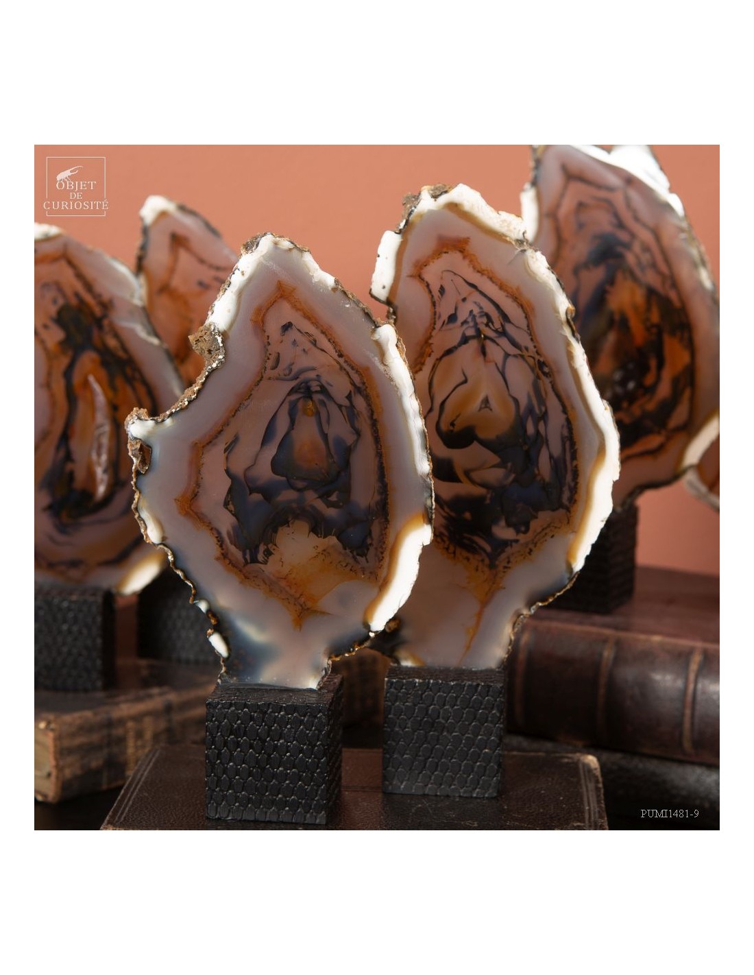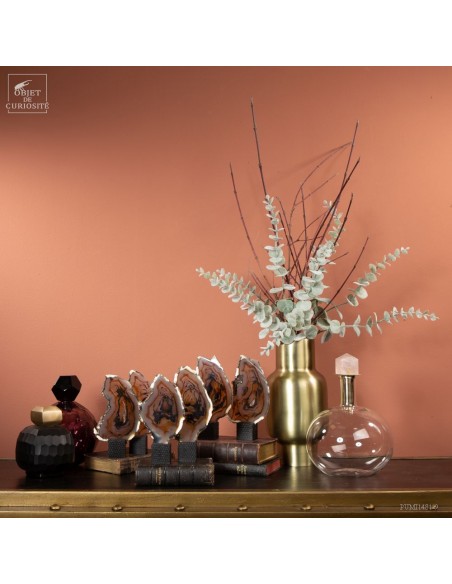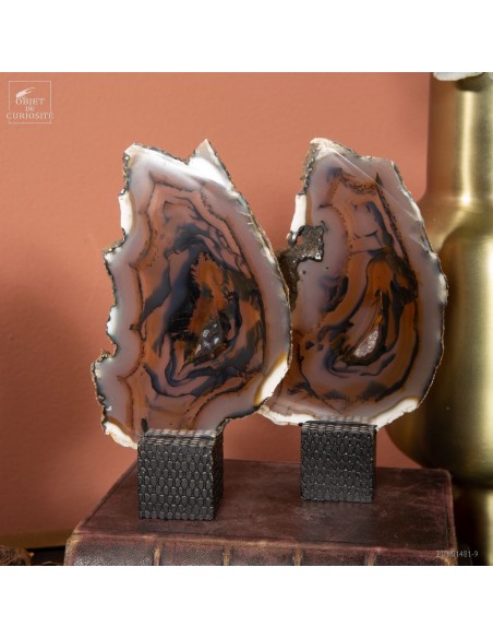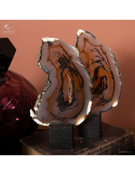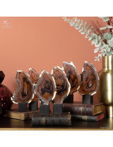 Série de 6 tranches d'agate support cube noir - Brésil
