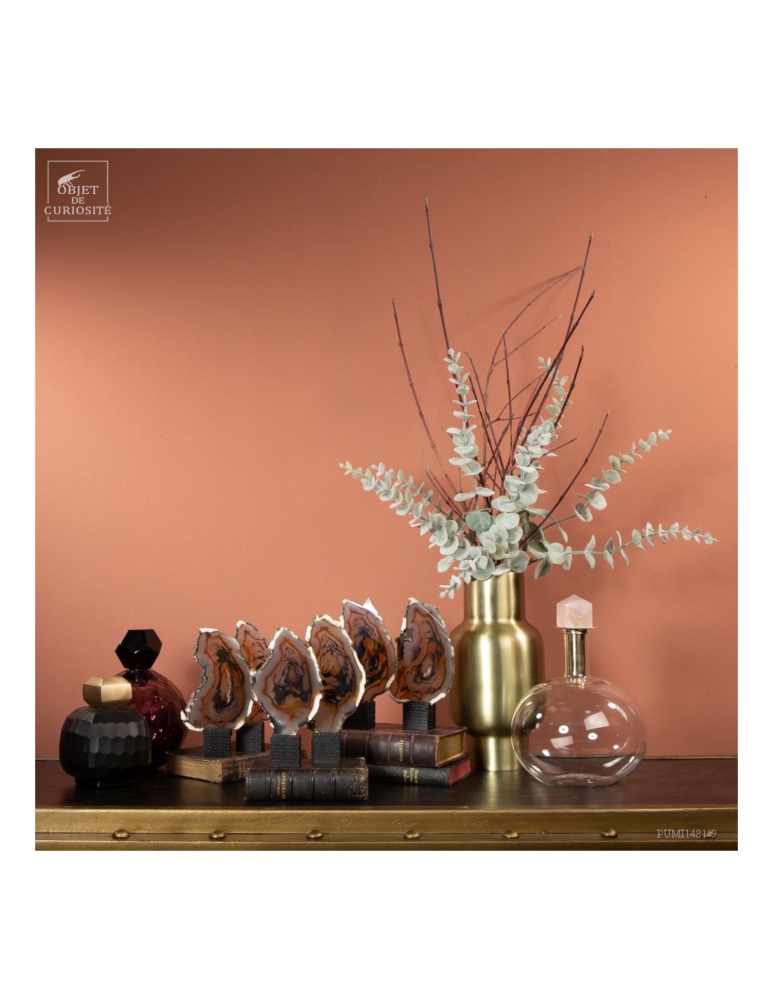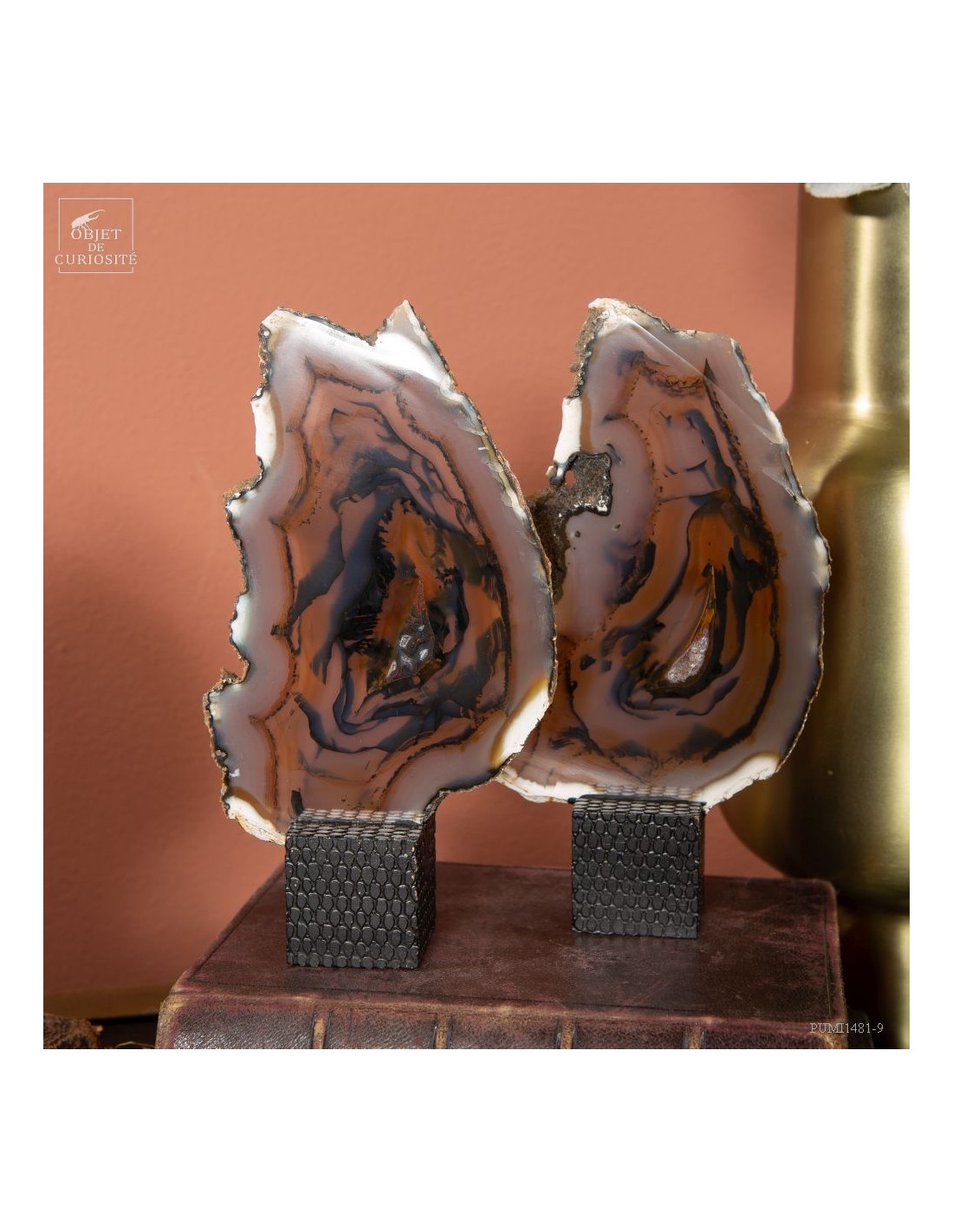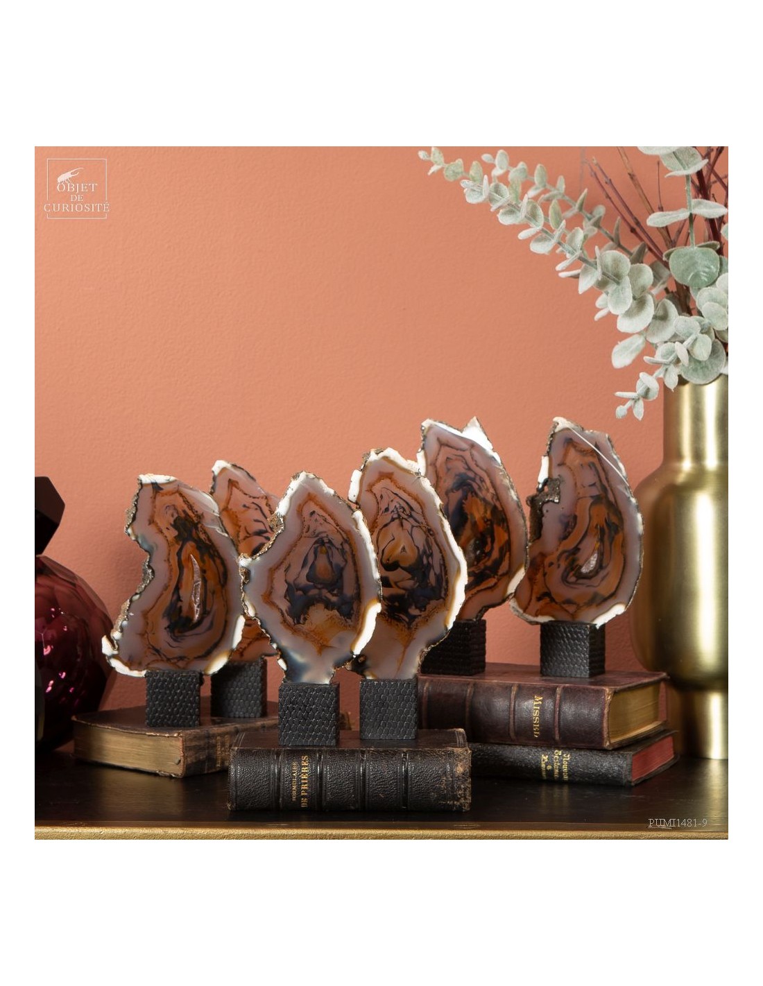 Série de 6 tranches d'agate support cube noir - Brésil
