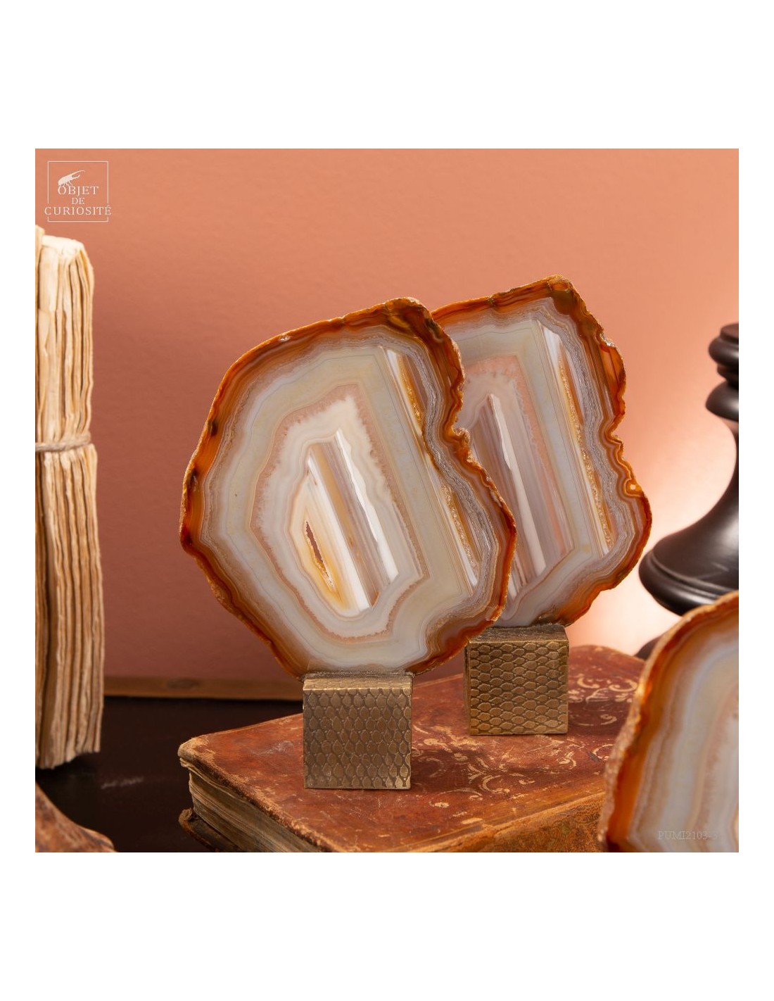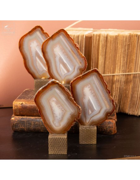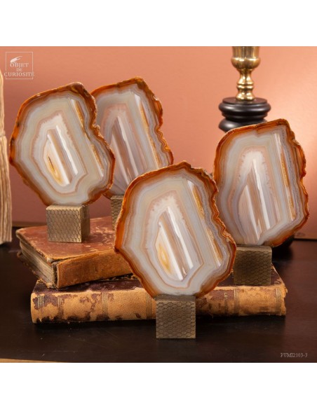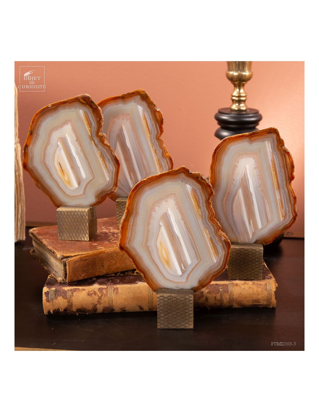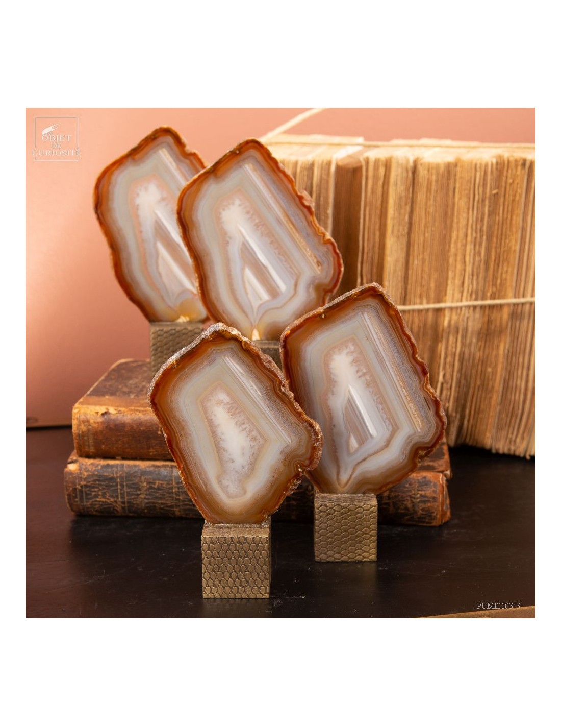 Série de 8 tranches d'agate support cube laiton - Brésil