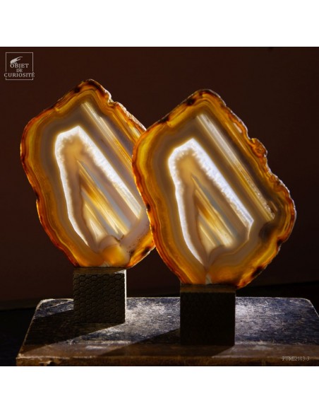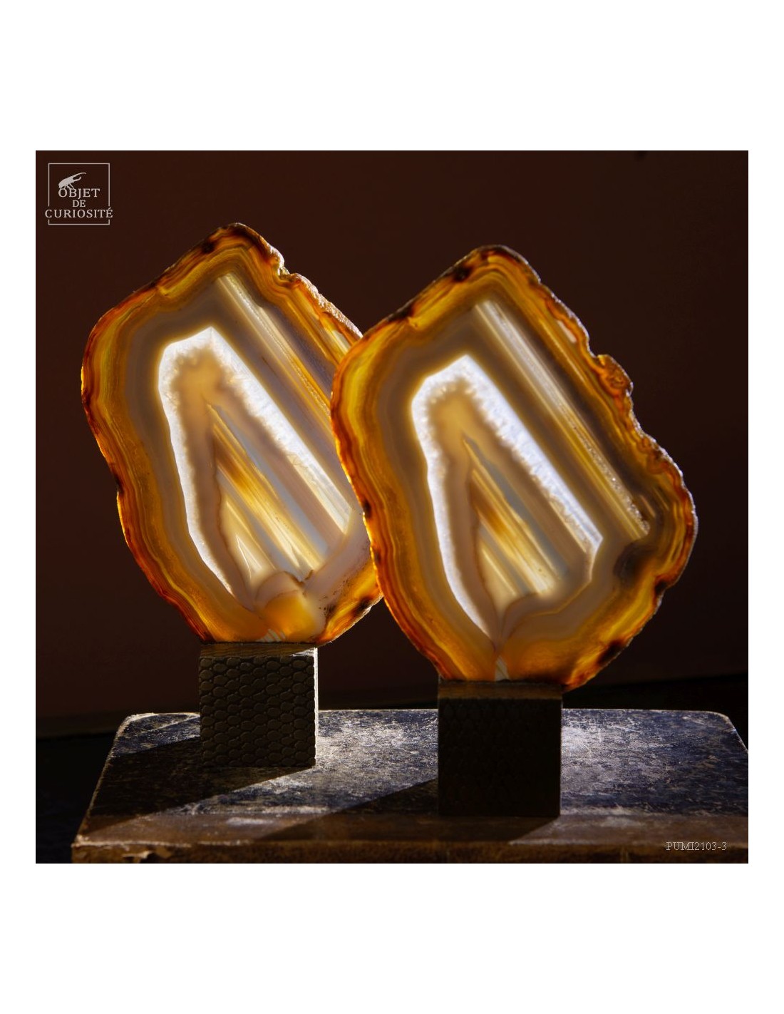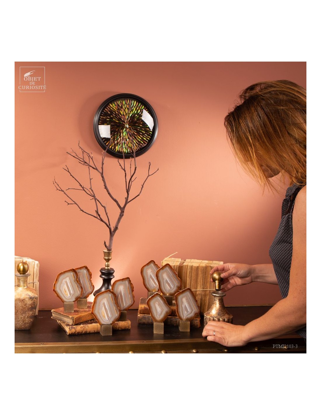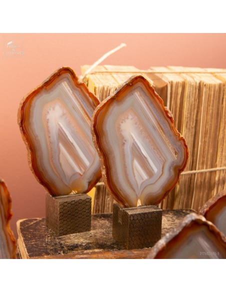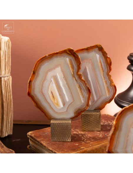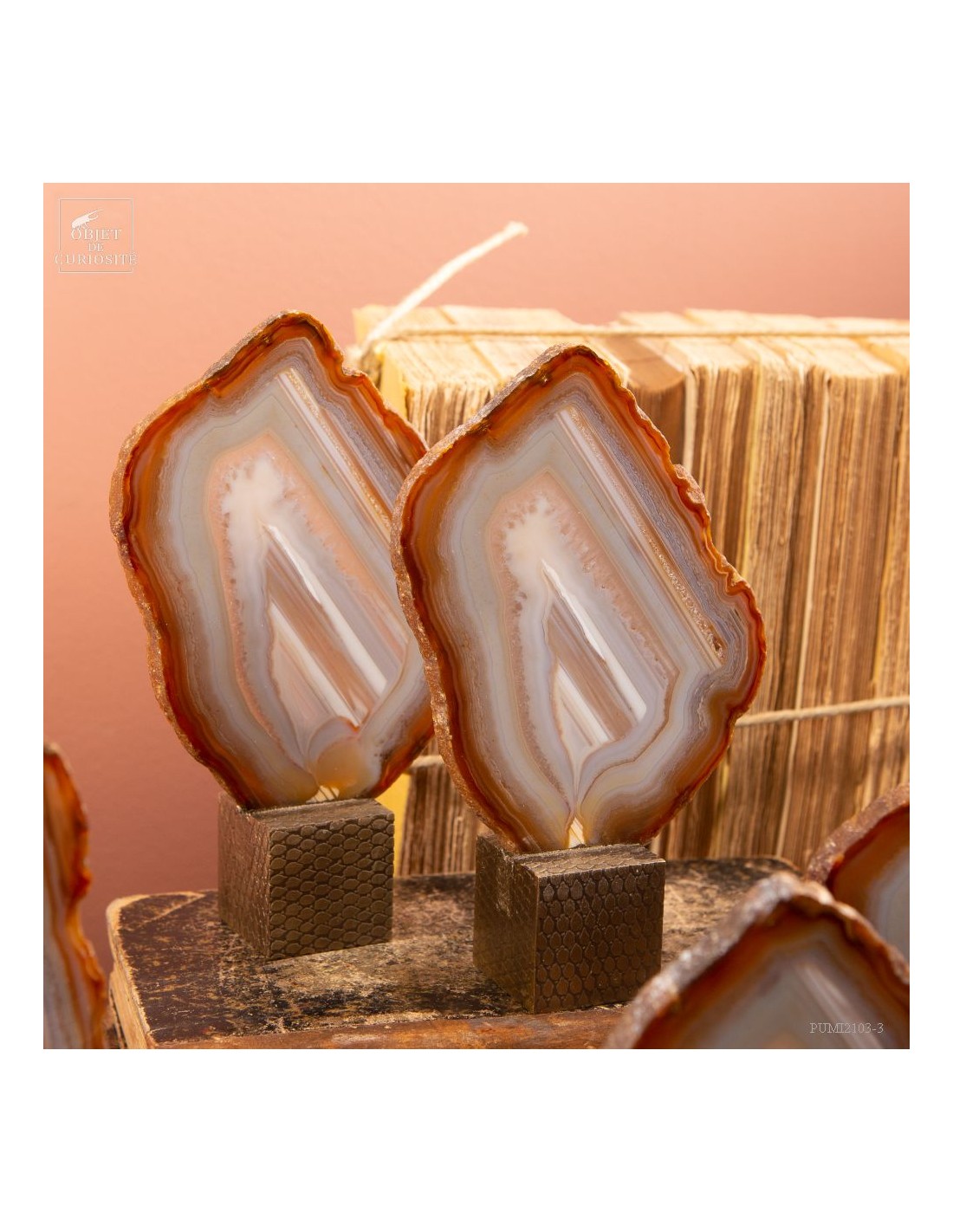 Série de 8 tranches d'agate support cube laiton - Brésil