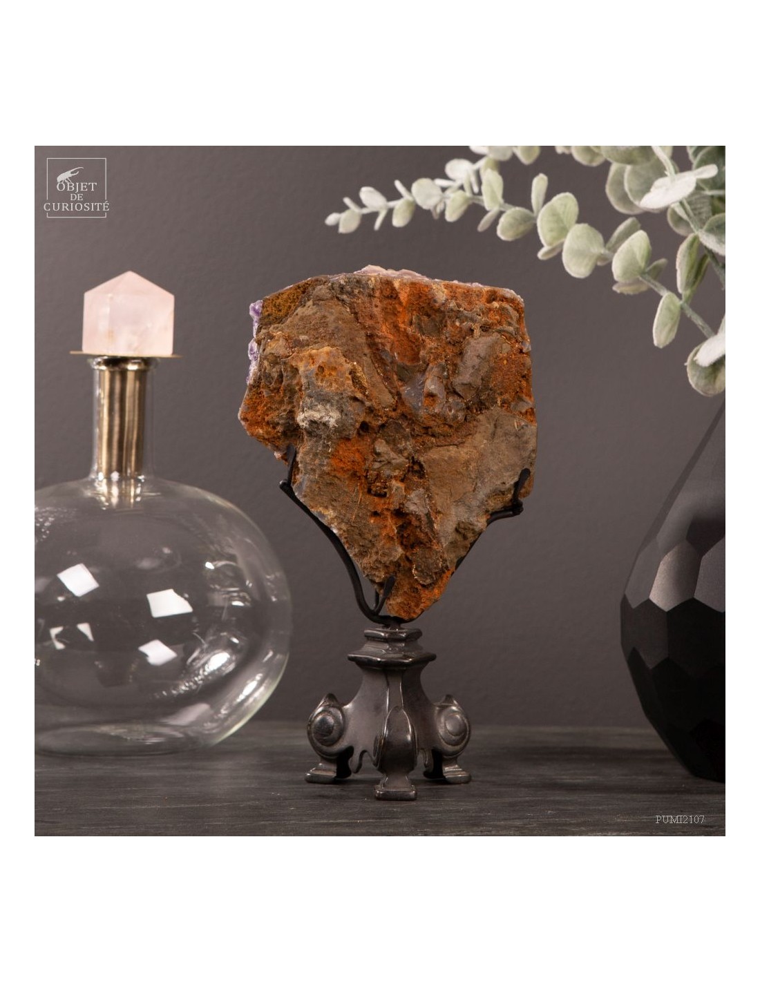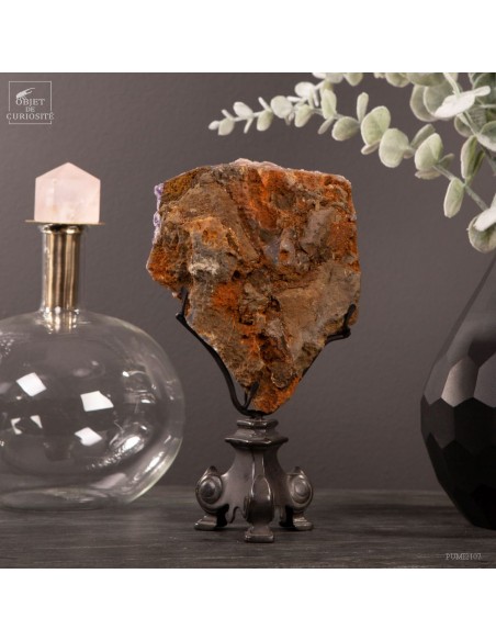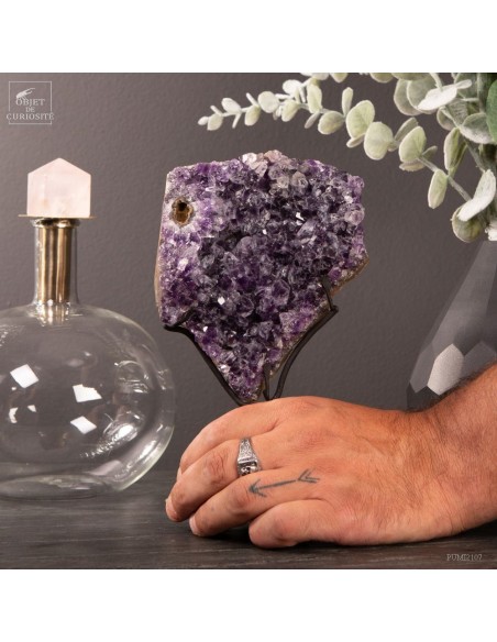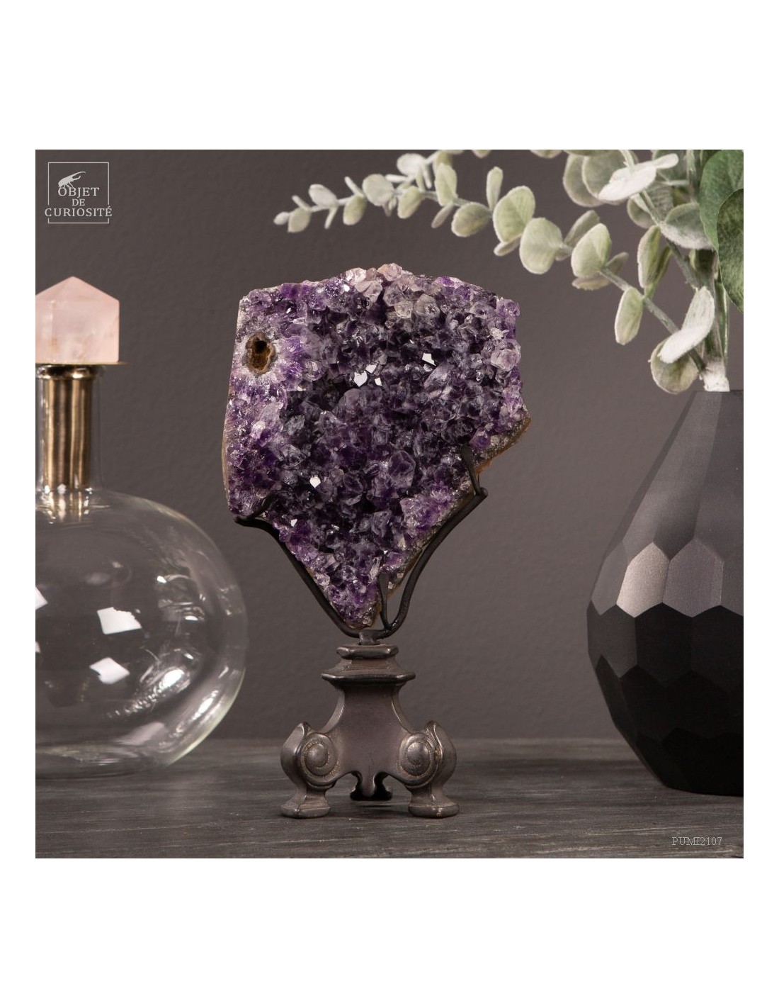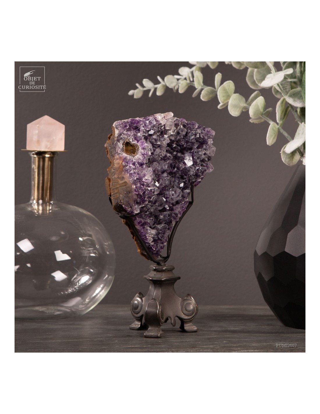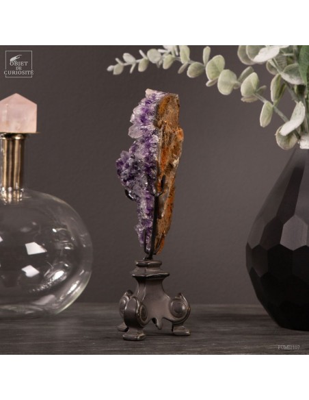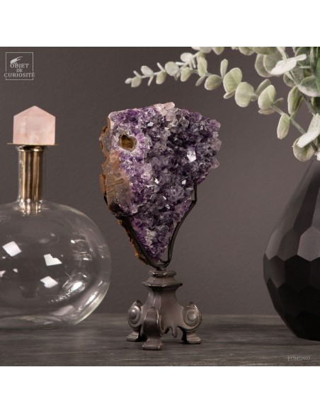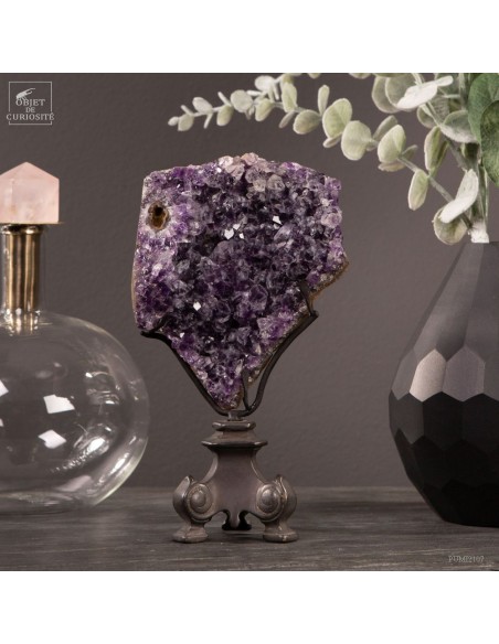 Plaque d'améthyste d'Uruguay soclée sur une base baroque.
